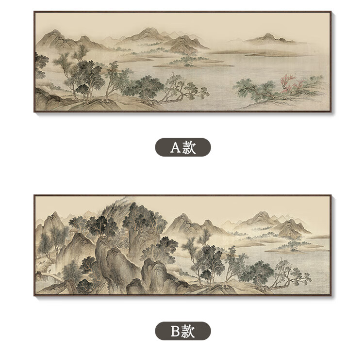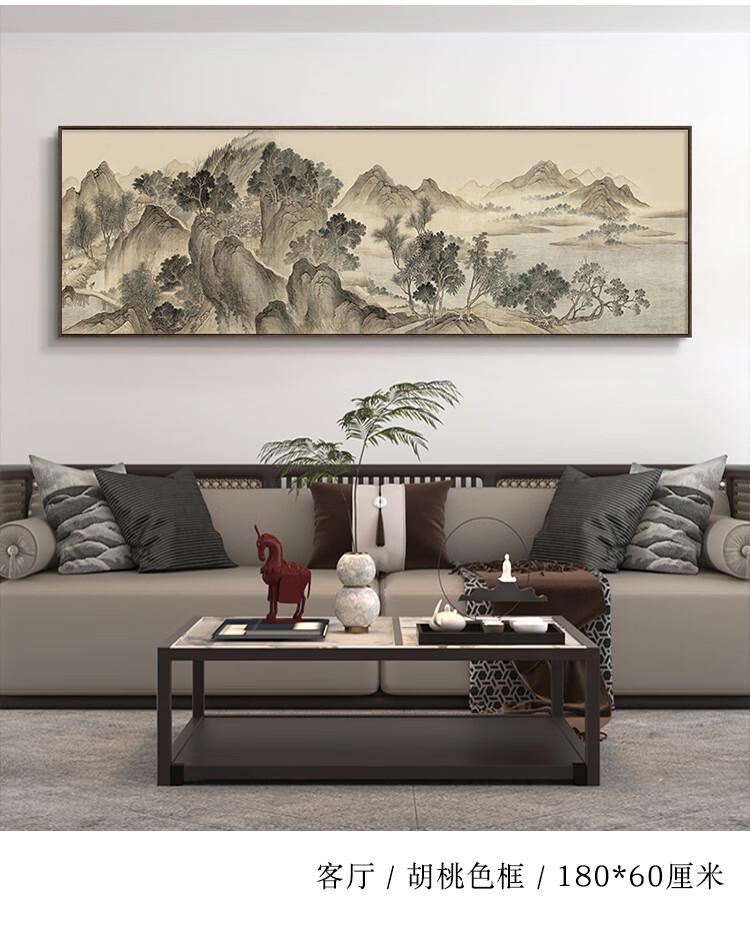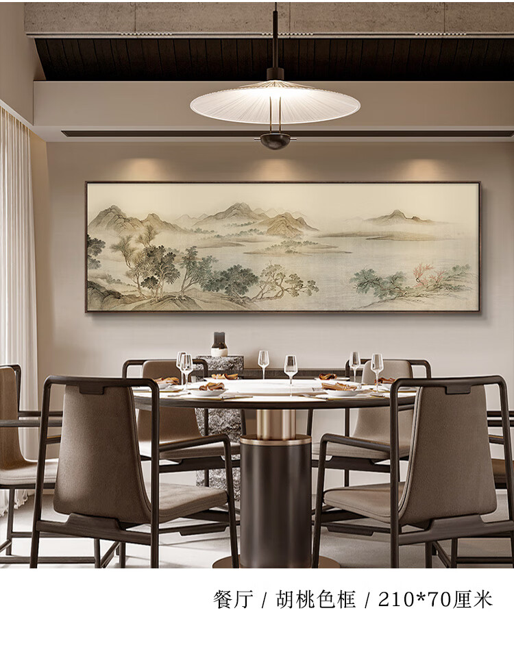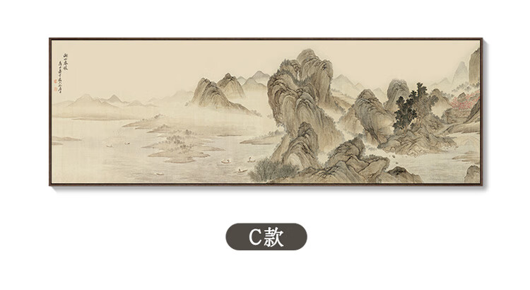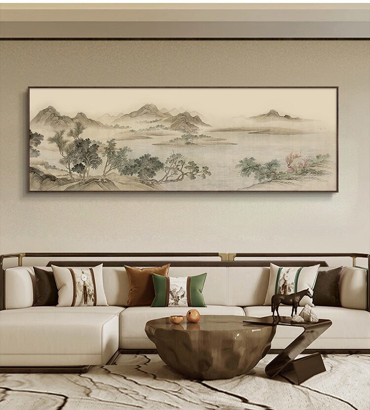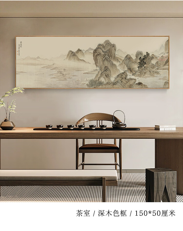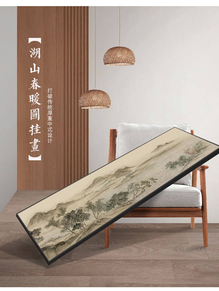 Renzhai Lake and Mountain Warmth in Spring picture hanging painting New Chinese style living room sofa backing mural tea room background wall banner ink Chinese painting frame A- Lake and Mountain Warmth in Spring picture 1 210x70cm (outer frame size) walnut color aluminum alloy frame + crystal porcelain surface