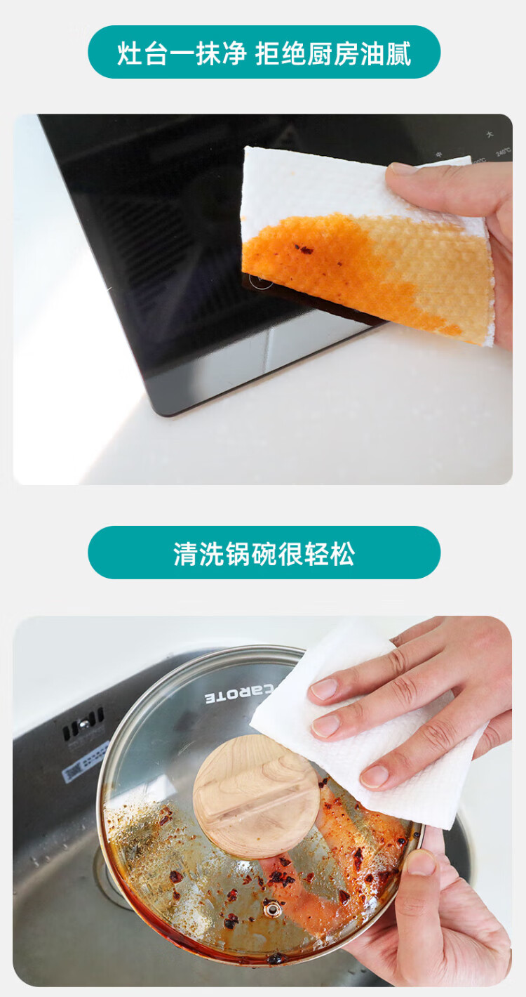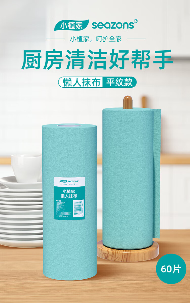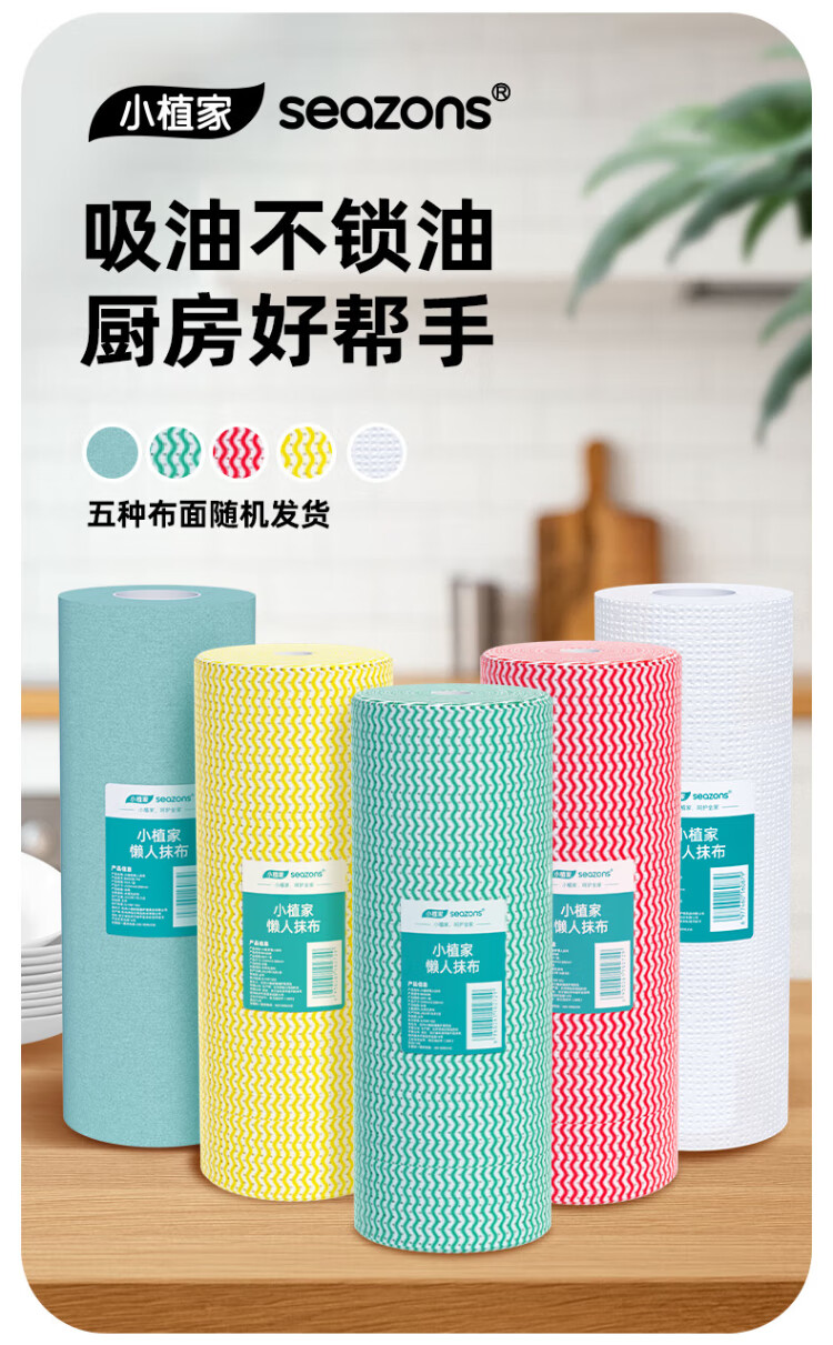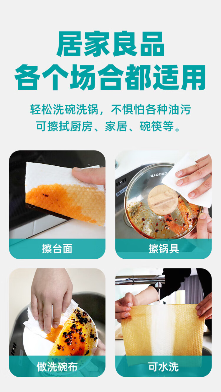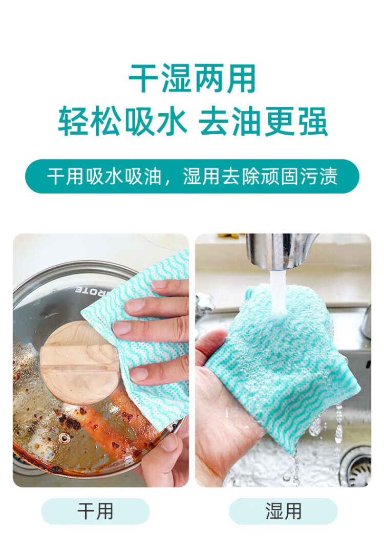 Xiaozhijia disposable lazy rags, dry and wet, oil-absorbing and water-absorbing dishwashing cloths, thickened and enlarged kitchen towels, washable rags 60 pieces * 1 roll, random cloth texture