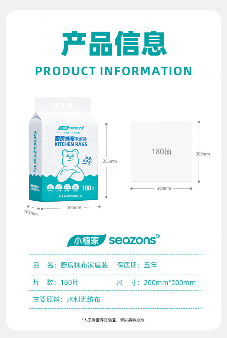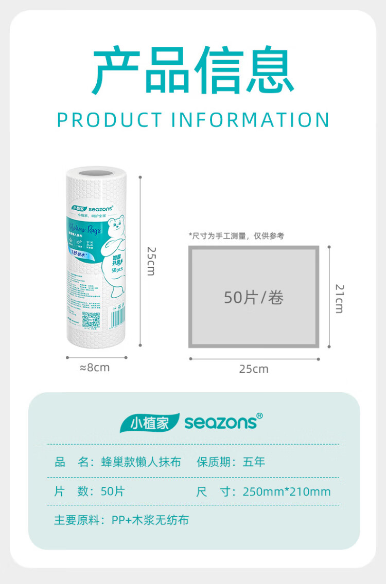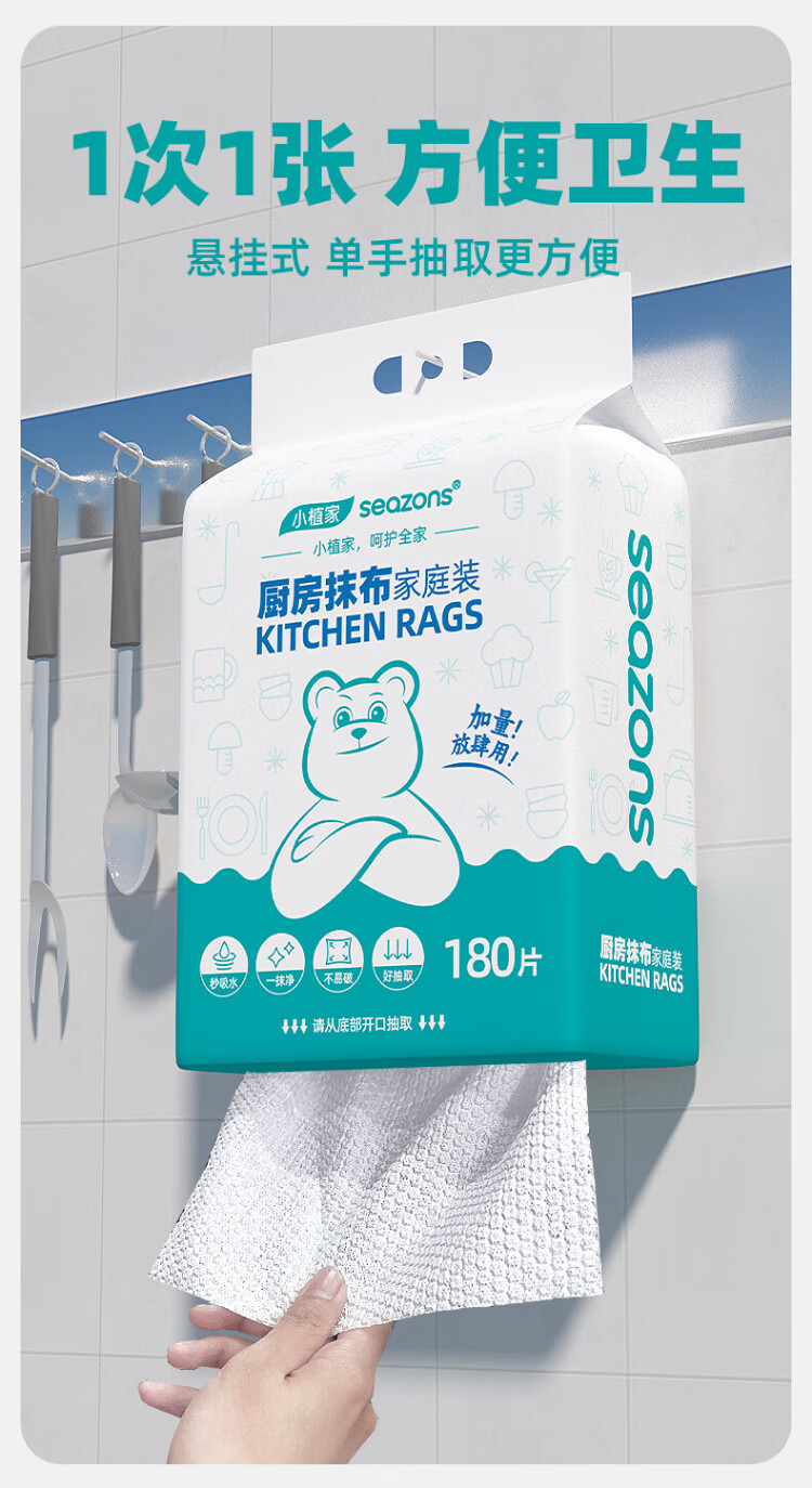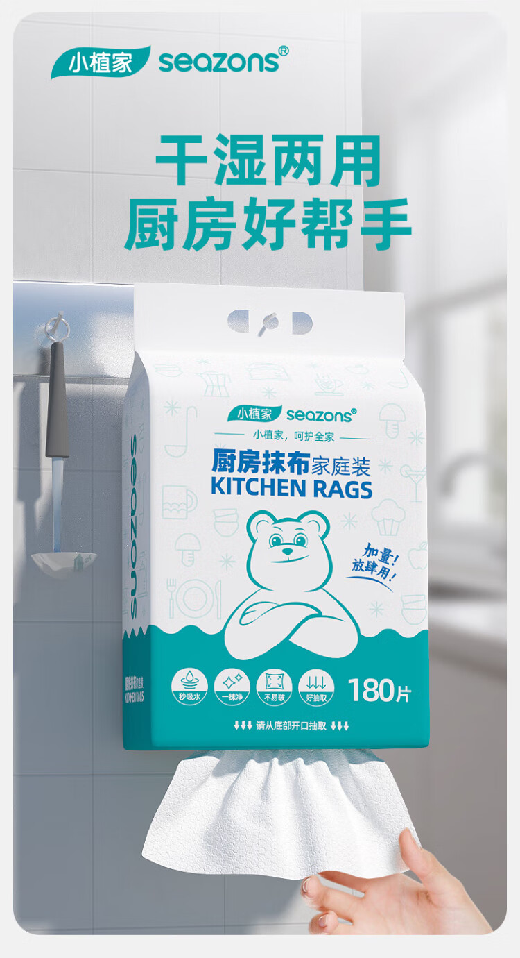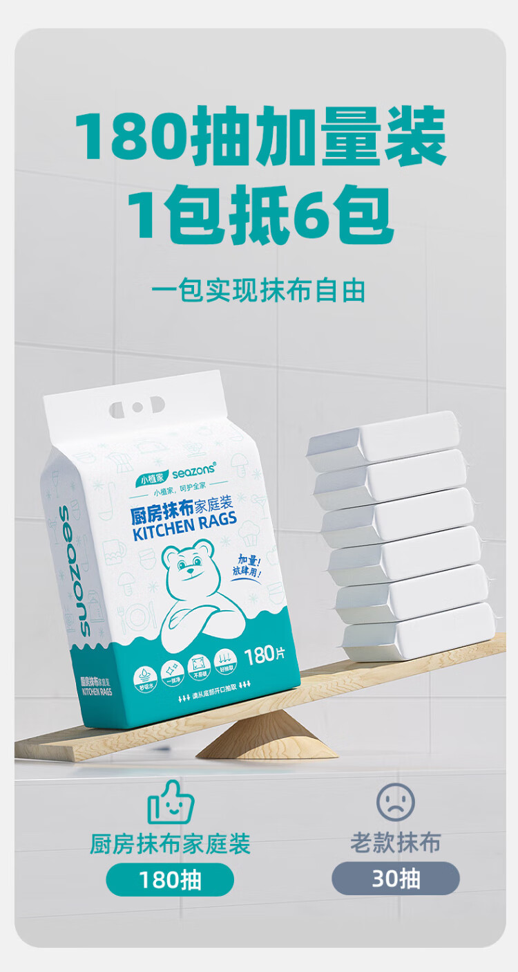 Xiaozhijia disposable lazy rags, dry and wet, oil-absorbing and water-absorbing dishwashing cloths, thickened and enlarged kitchen towels, washable rags 60 pieces * 1 roll, random cloth texture