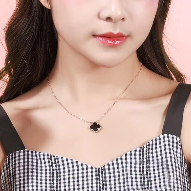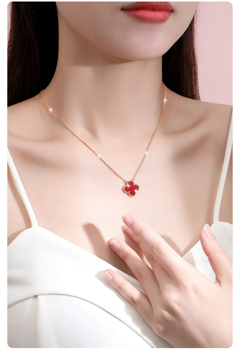 Fafanxi light luxury four-leaf clover necklace for women 18K rose gold practical heart-shaped Mother's Day 520 Valentine's Day gift for girlfriend Four-leaf clover necklace (red agate / diamond on the back)