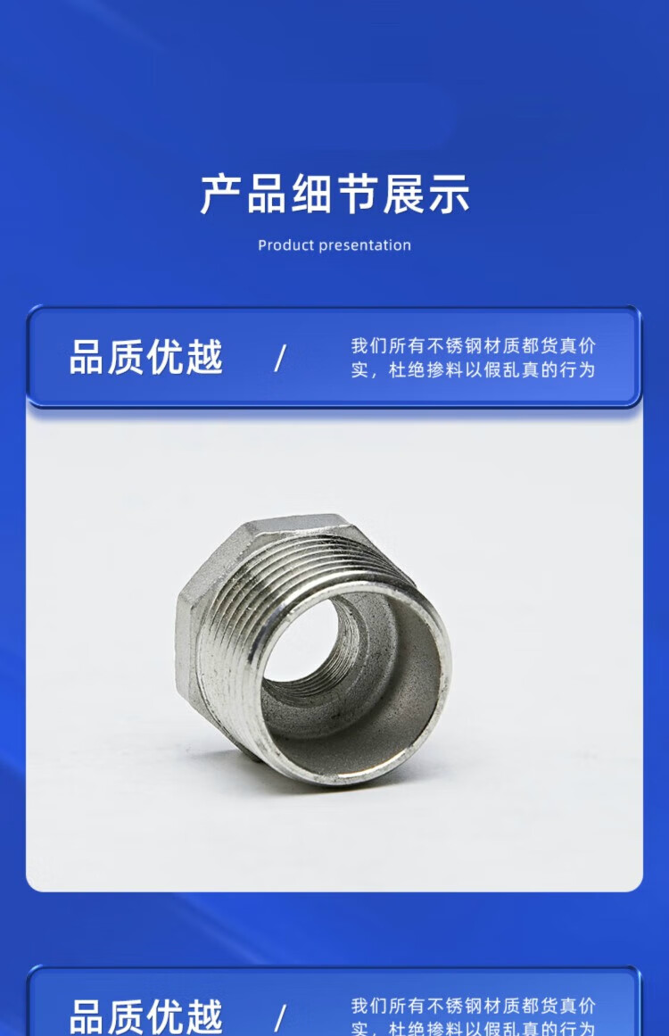 304 stainless steel core-filling reducing diameter internal and external wire conversion Bu Shen filling core-reducing diameter direct thread 234 minutes 6 minutes 1 inch 304 DN15*DN10 4 minutes to 3 minutes