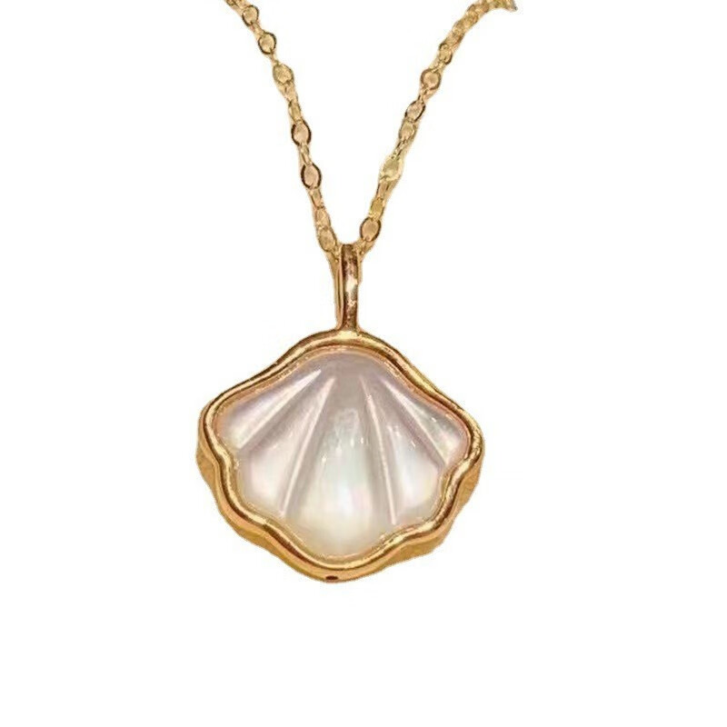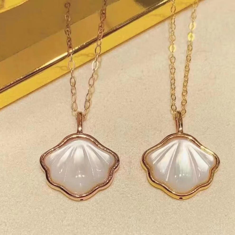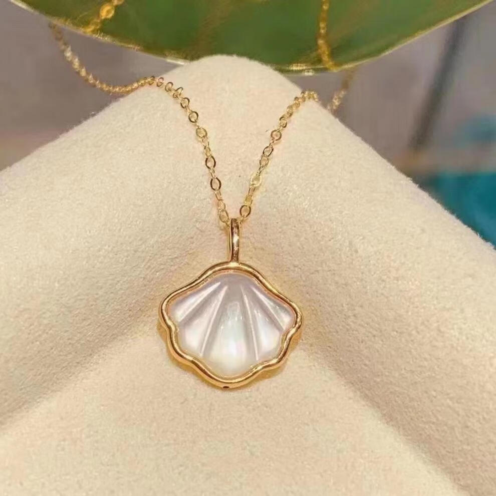 Miyan 18k gold shell pendant, white mother-of-pearl and one shell pendant, colored gold mother-of-pearl female pendant, rose gold necklace gift, gold single pendant (excluding chain), Valentine's Day gift