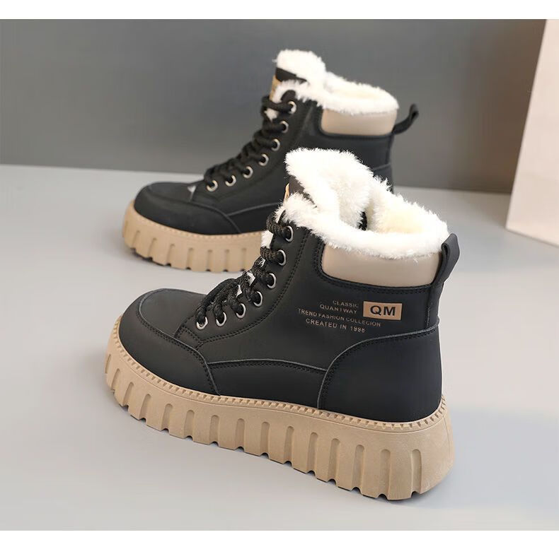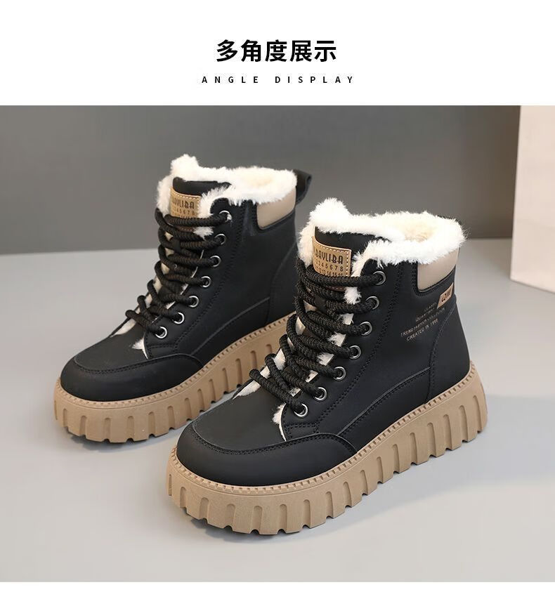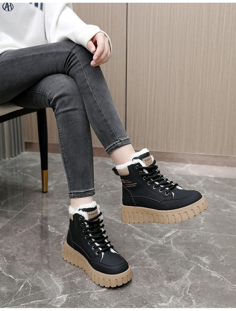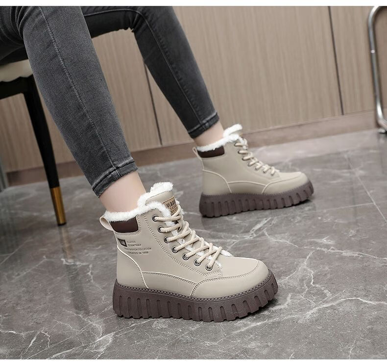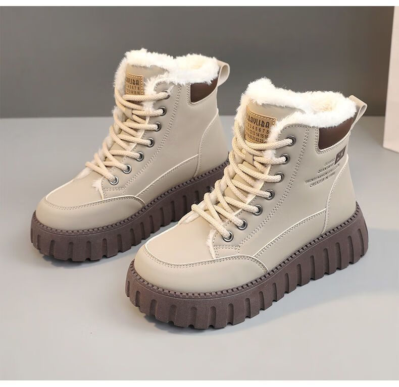 JAN ZIGULLA Winter Real Soft Leather Snow Boots for Women 2025 New Plus Velvet Warm High Top Casual Soft Bottom Anti-Slip Cotton Shoes Trendy Khaki-39