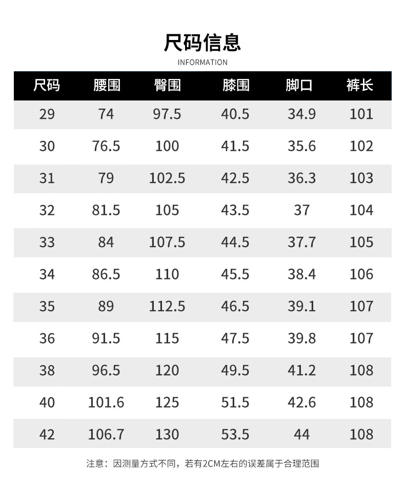 Outseam (cm) 99 cm 101.5 cm 104 cm 106.5 cm 109 cm