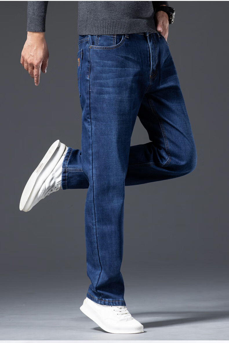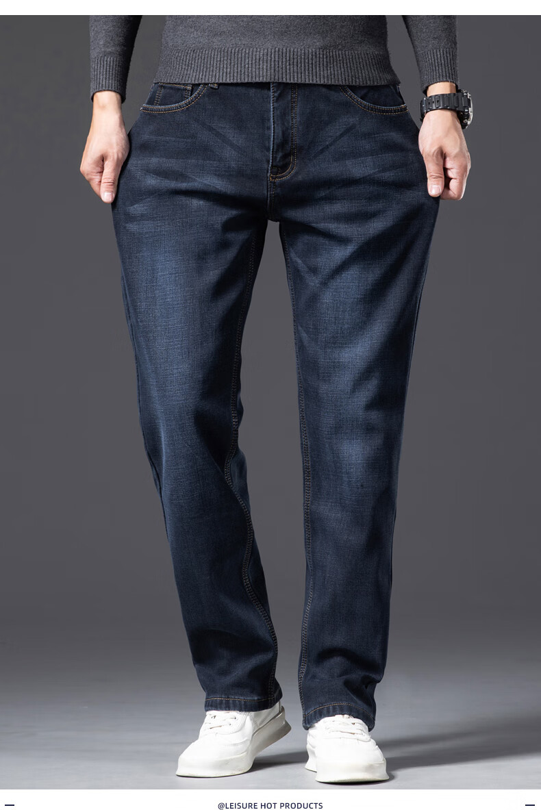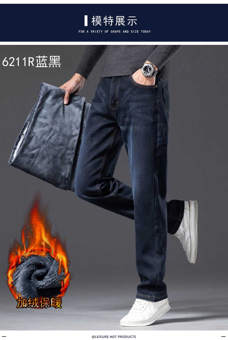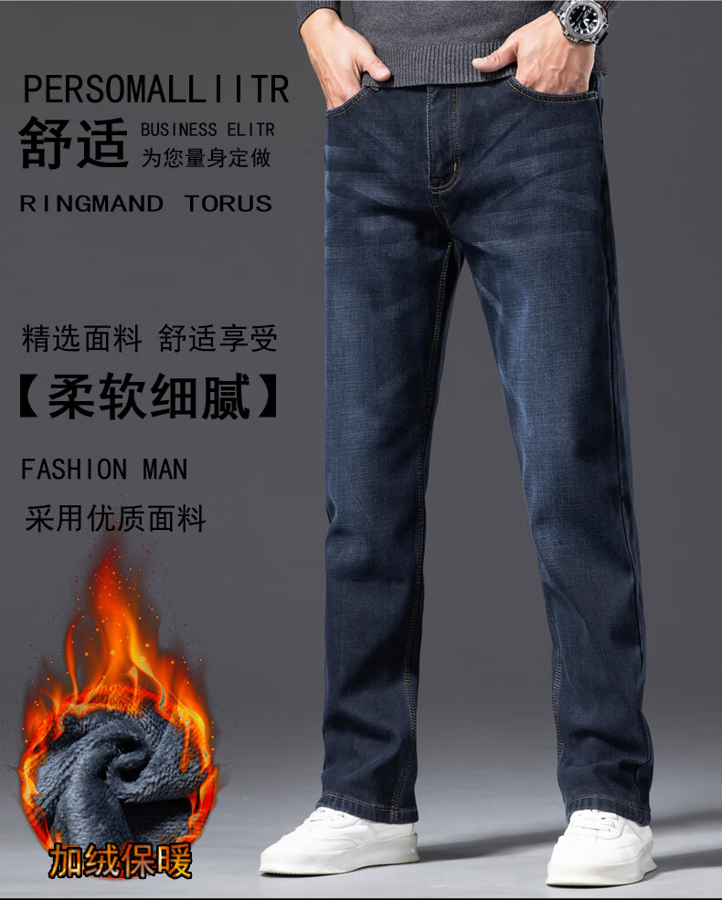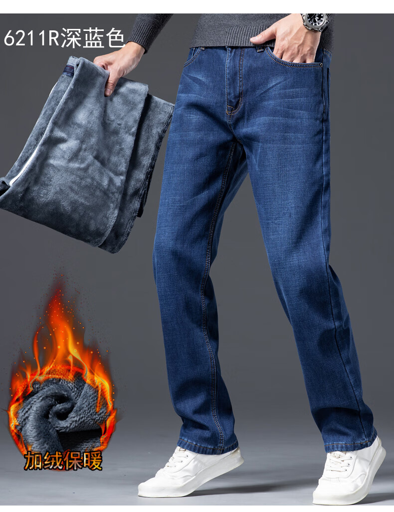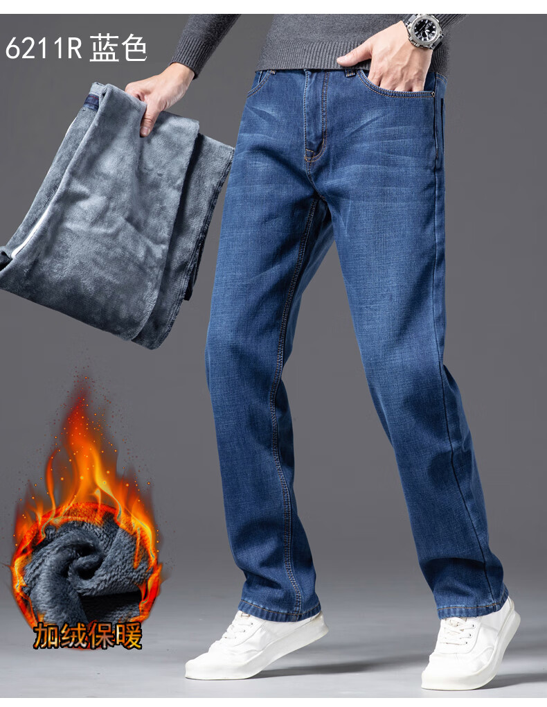 Romon Men's Jeans 2025 Winter New Style Velvet Thickened Youth Casual Warm Straight Loose Long Pants 10262/6211R Light Blue Velvet Thickened 32