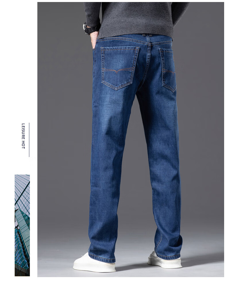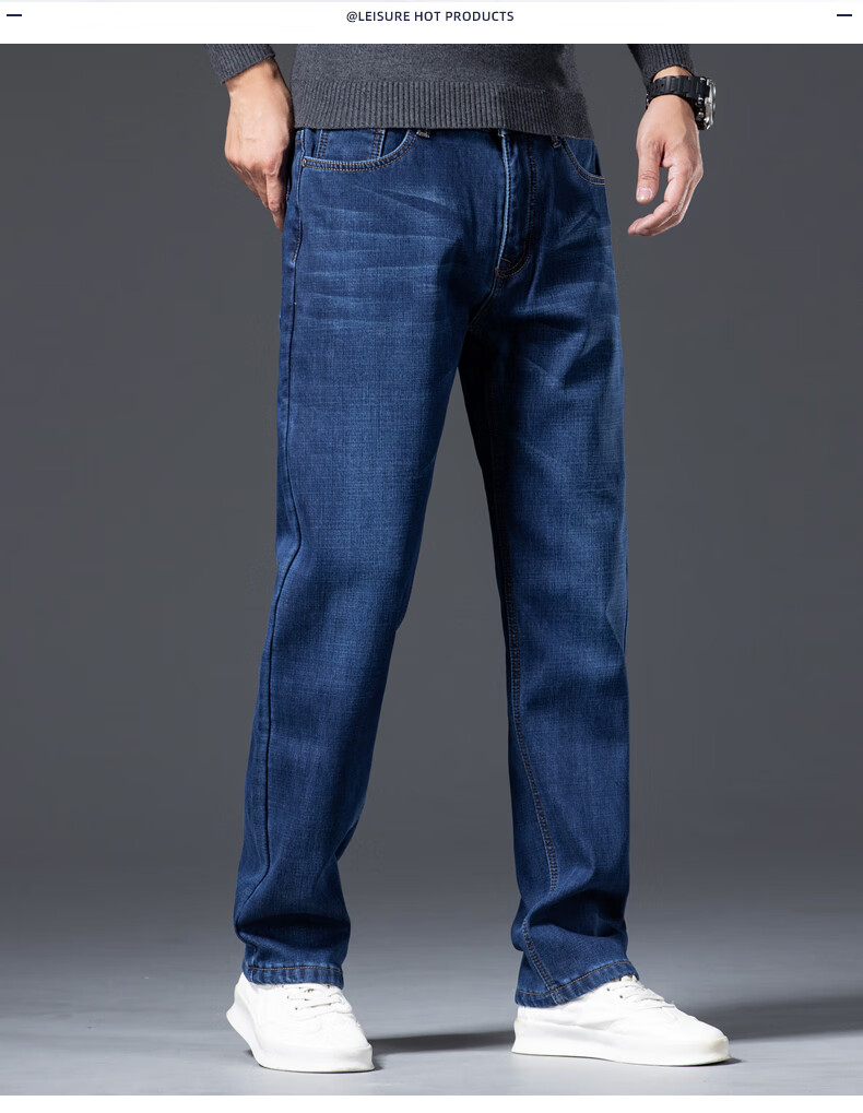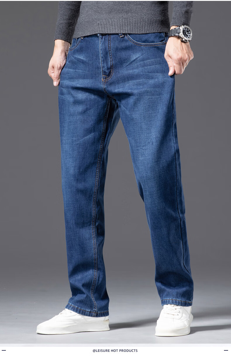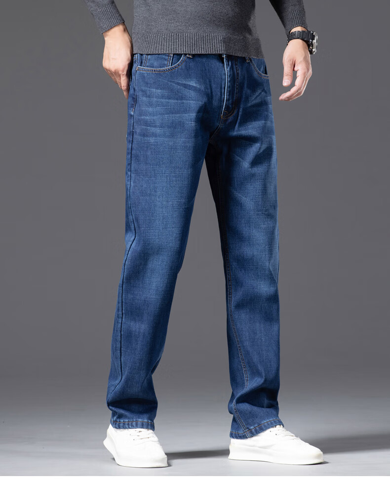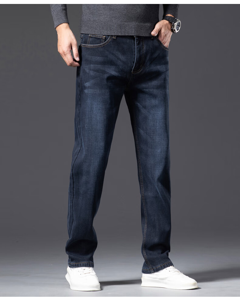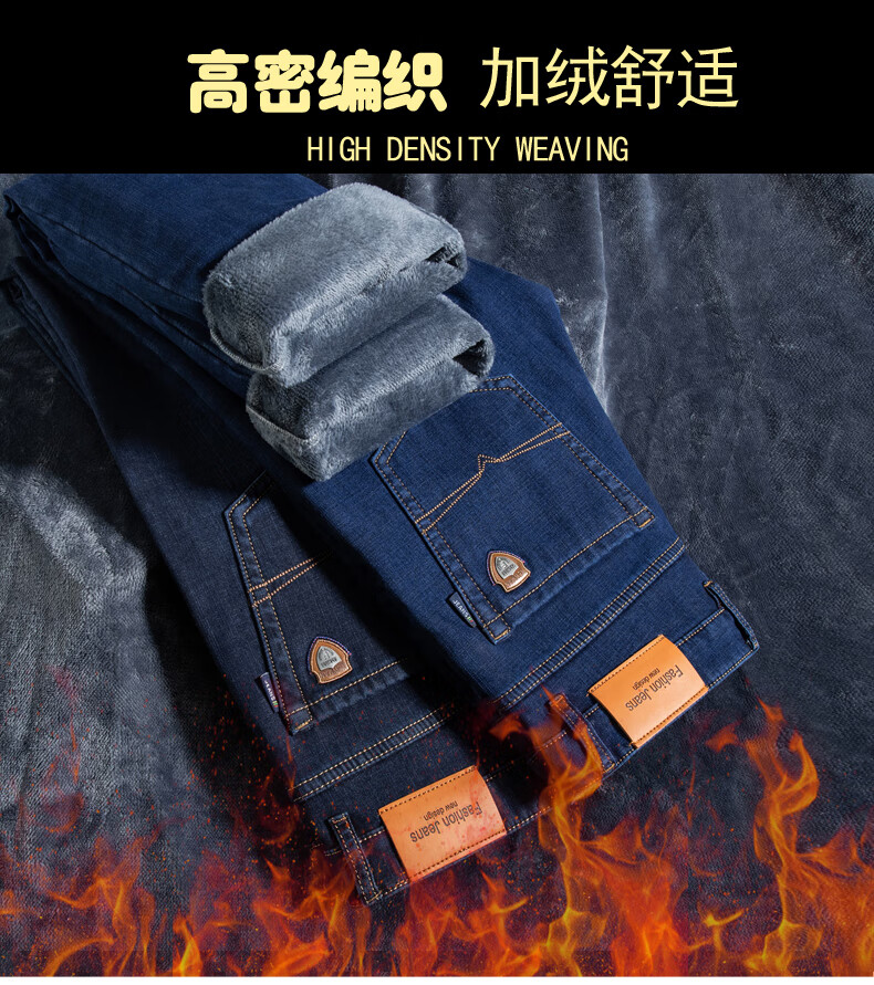 Romon Men's Jeans 2025 Winter New Style Velvet Thickened Youth Casual Warm Straight Loose Long Pants 10262/6211R Light Blue Velvet Thickened 32