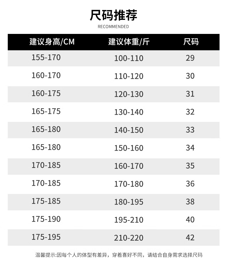 China (cm) 160-165/84-86 165-170 / 88-90 167-172 / 92-96 168-173 / 98-102 170-176 / 106-110