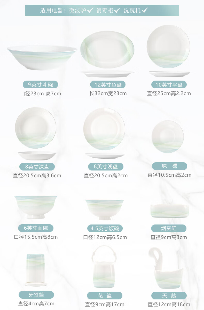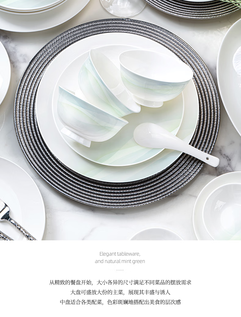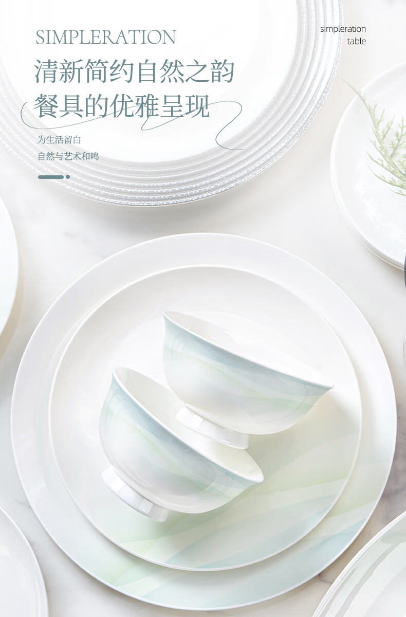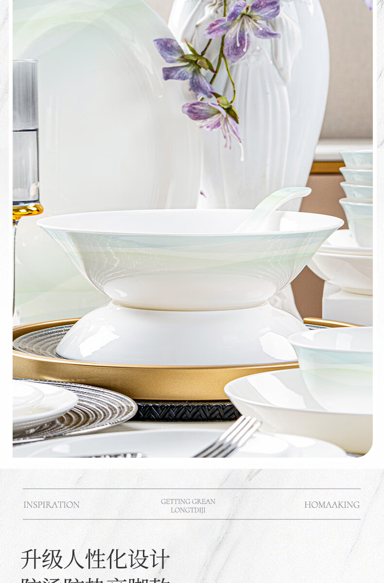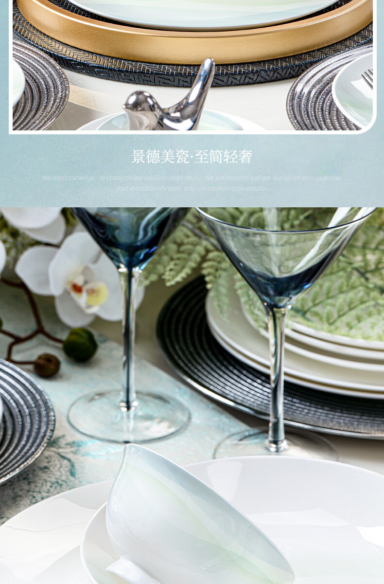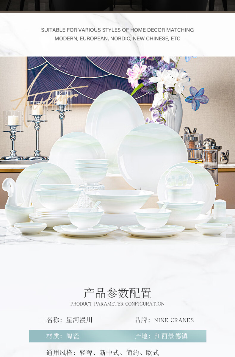 NINE CRANES Jingdezhen bowls, plates and tableware complete set of home light luxury high-end housewarming gifts high temperature bowls and plates household tableware 46-piece set | high temperature healthy porcelain | portable gift box