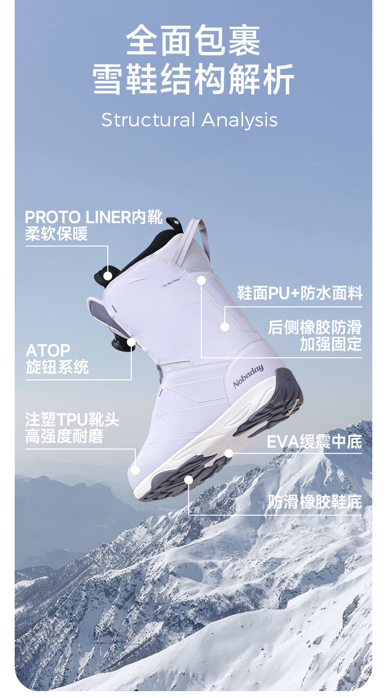NOBADAY New Year of the Snake snowboard shoes for men and women, waterproof and warm, professional shock-absorbing anti-ski boots, fashionable, elegant white 37