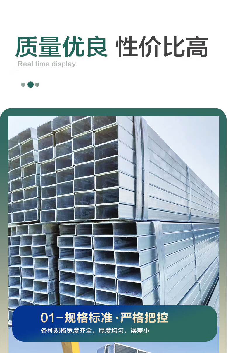Galvanized rectangular pipe Curtain wall square steel shelf pipe Rectangular steel pipe Anti-rust steel pipe Square welded rectangular pipe 20* 25*50mm Price per meter Wall thickness 1mm