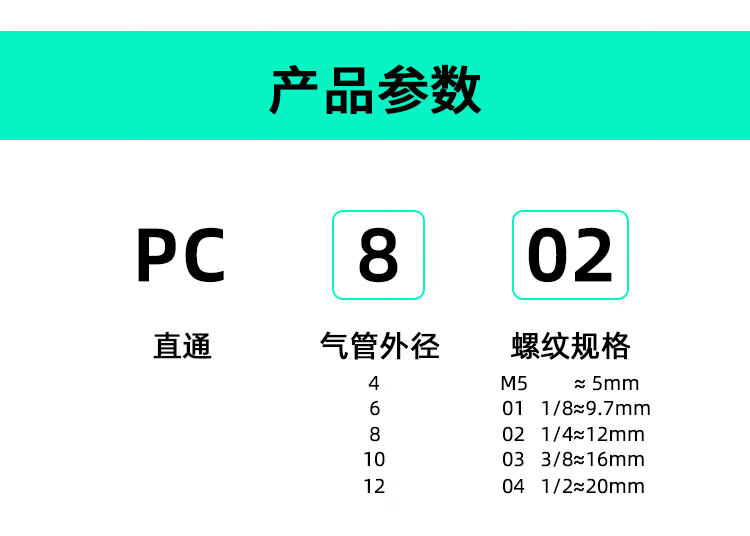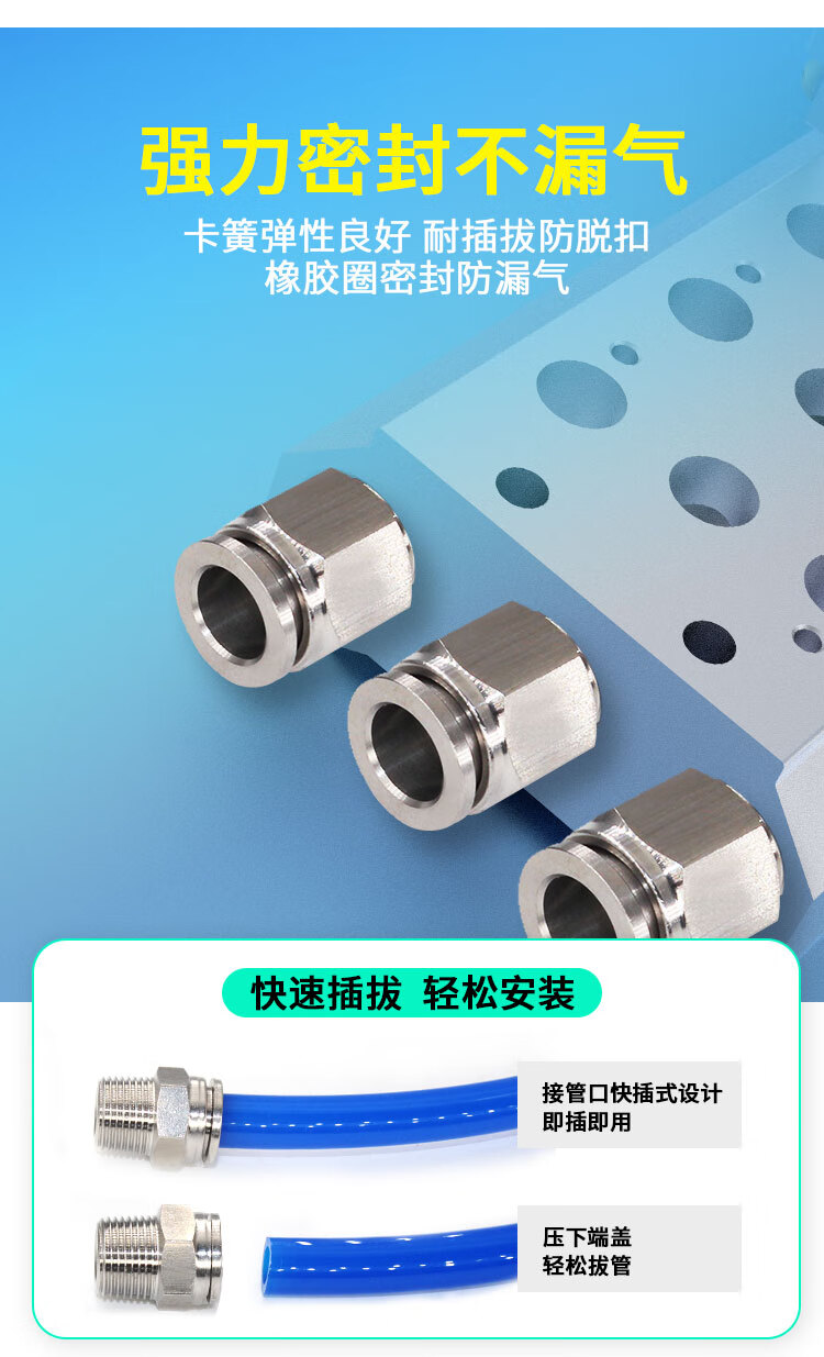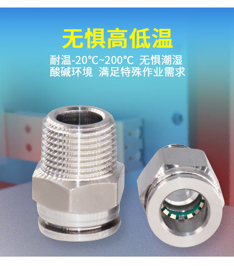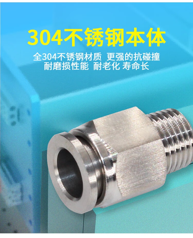 304 stainless steel PC quick-plug pneumatic quick-connect threaded high-pressure air nozzle PT1/4 straight-through docking air pipe quick connector 304-PC10-04