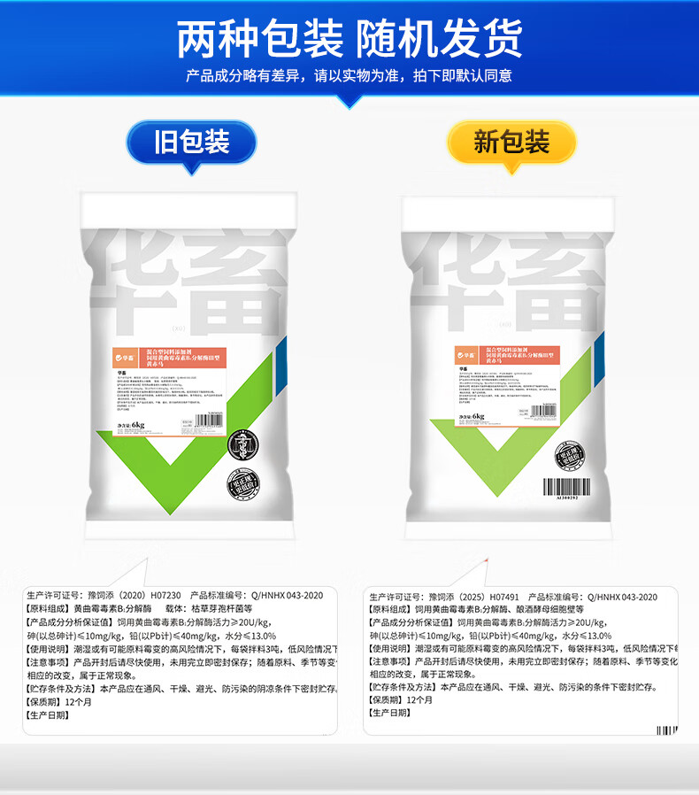 Huazhu Huangchima mold removal agent for pregnant animals can be used for sows, cattle and sheep feed additives biological mold removal and degradation to maintain nutrition. Biological mold removal agent 450g