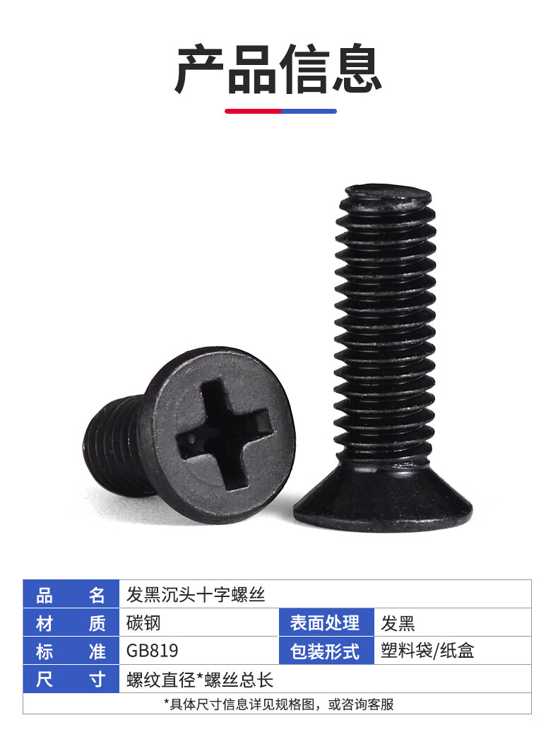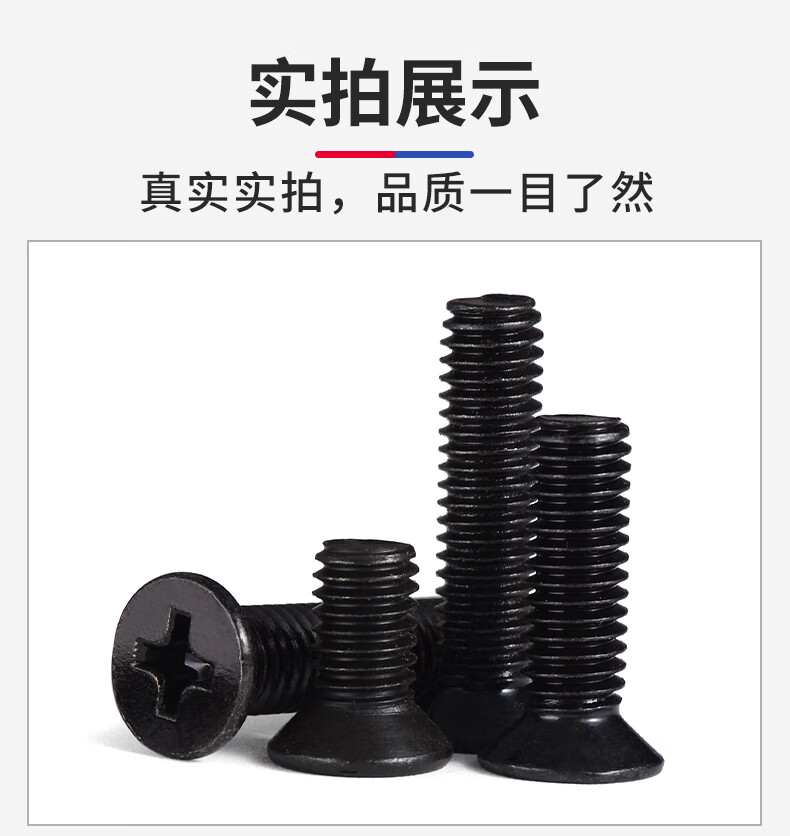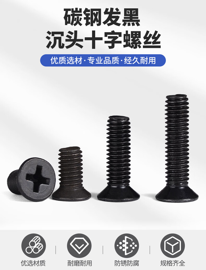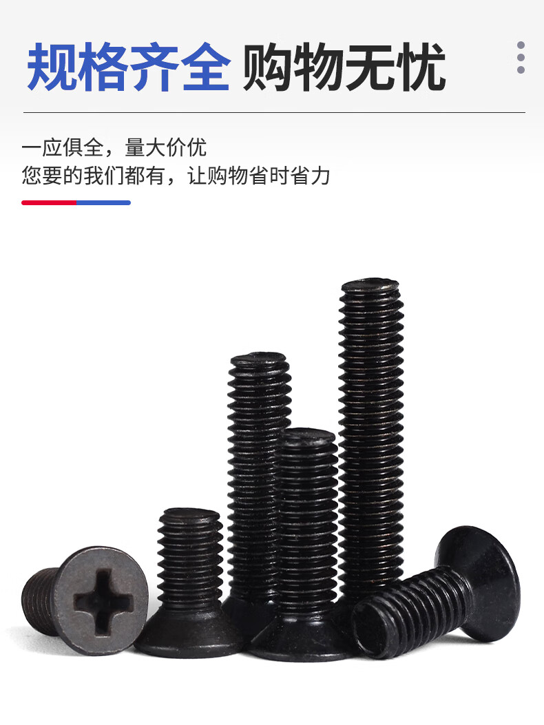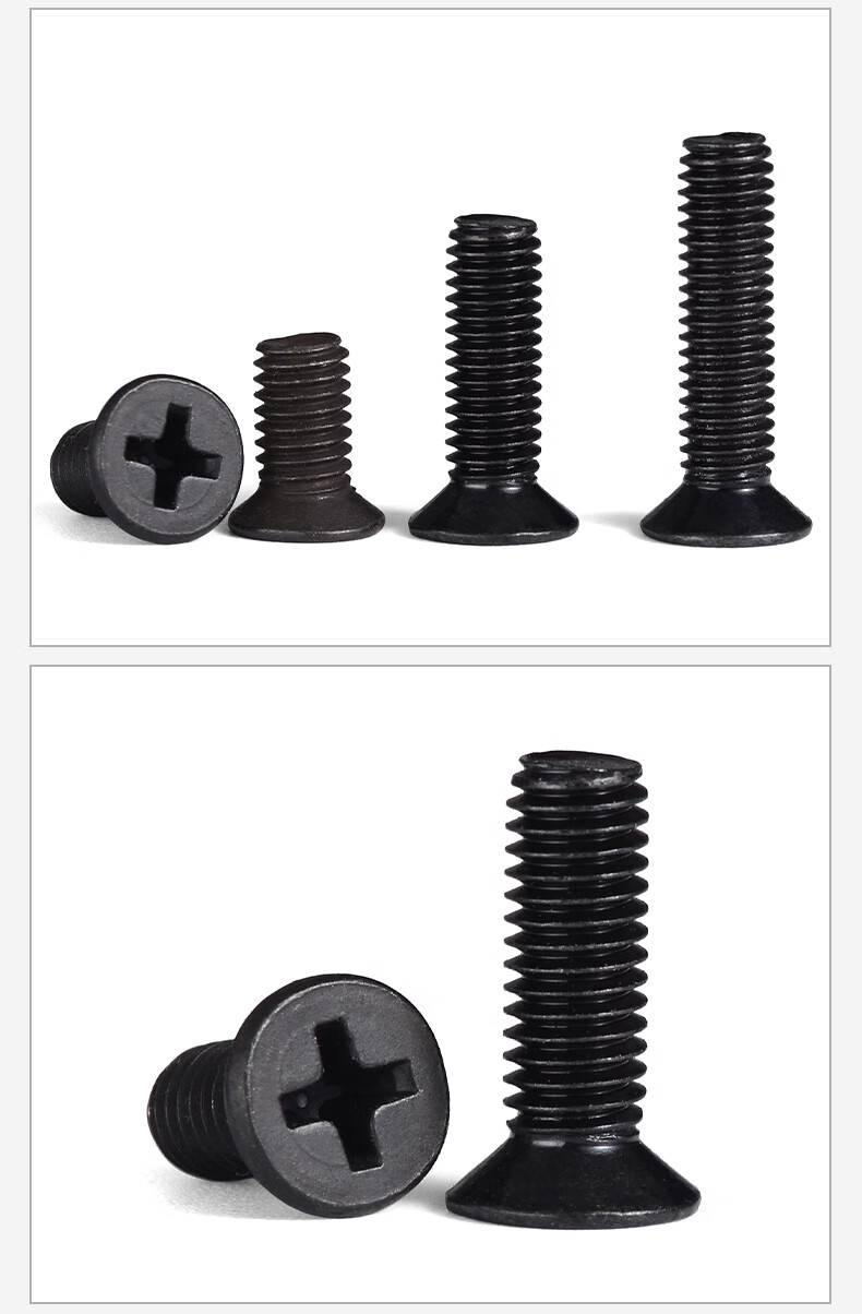 JINGGONG wholesales 4.8 grade black screws, cross countersunk head screws, flat head bolts GB819 M2M3M4M5M6M8 M1*4 (5000 pieces)