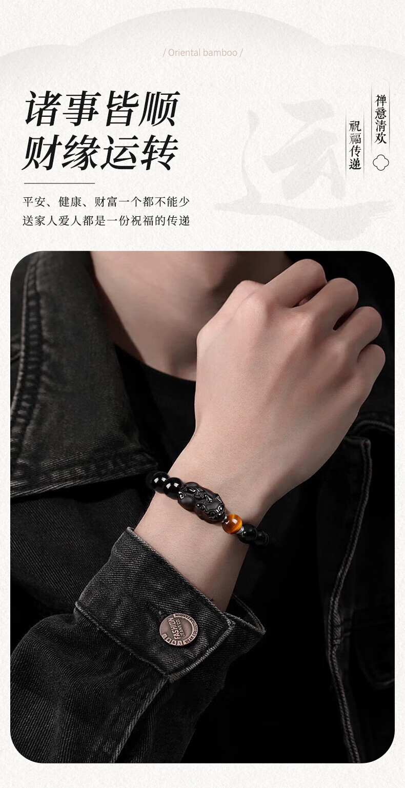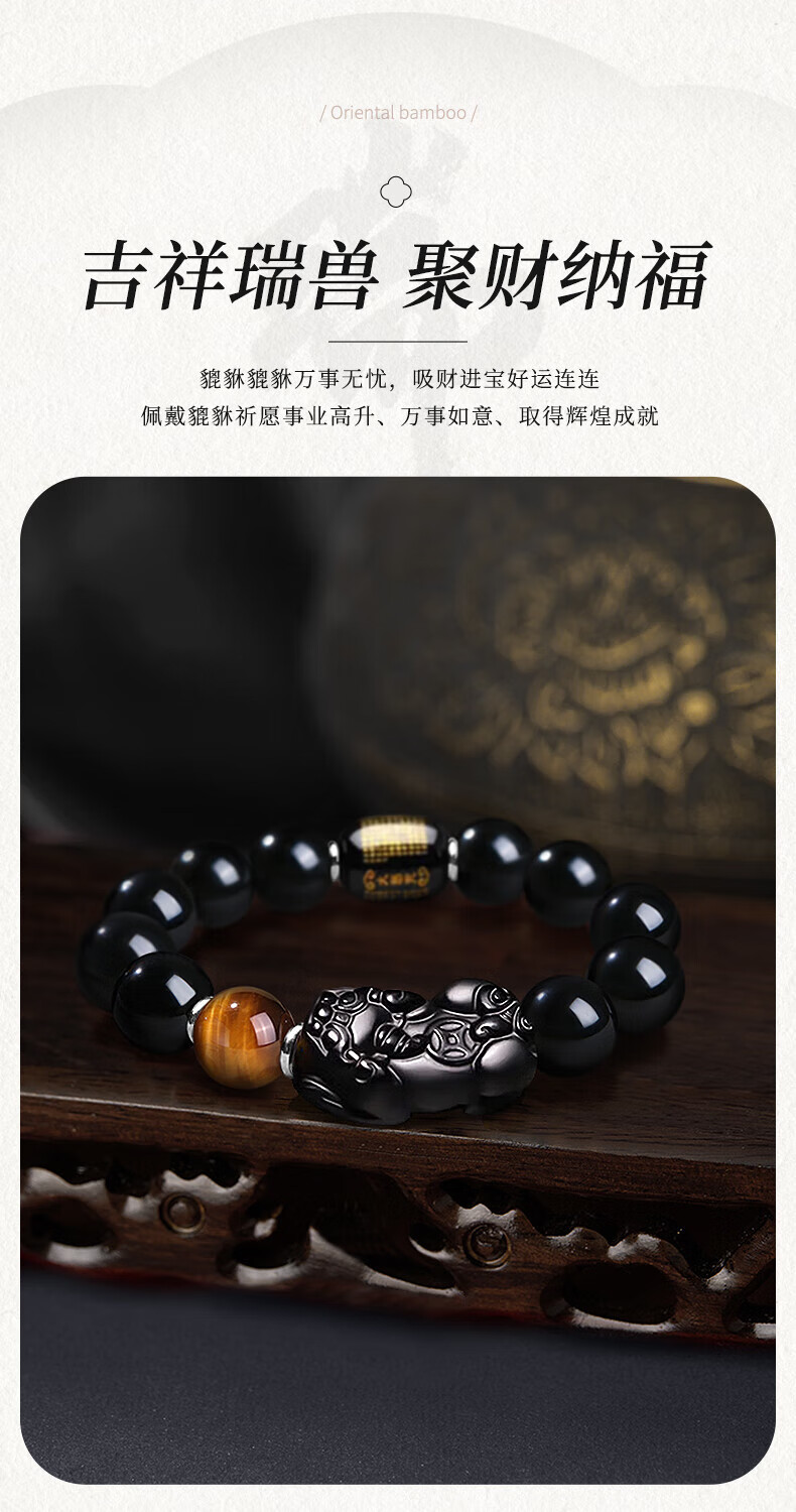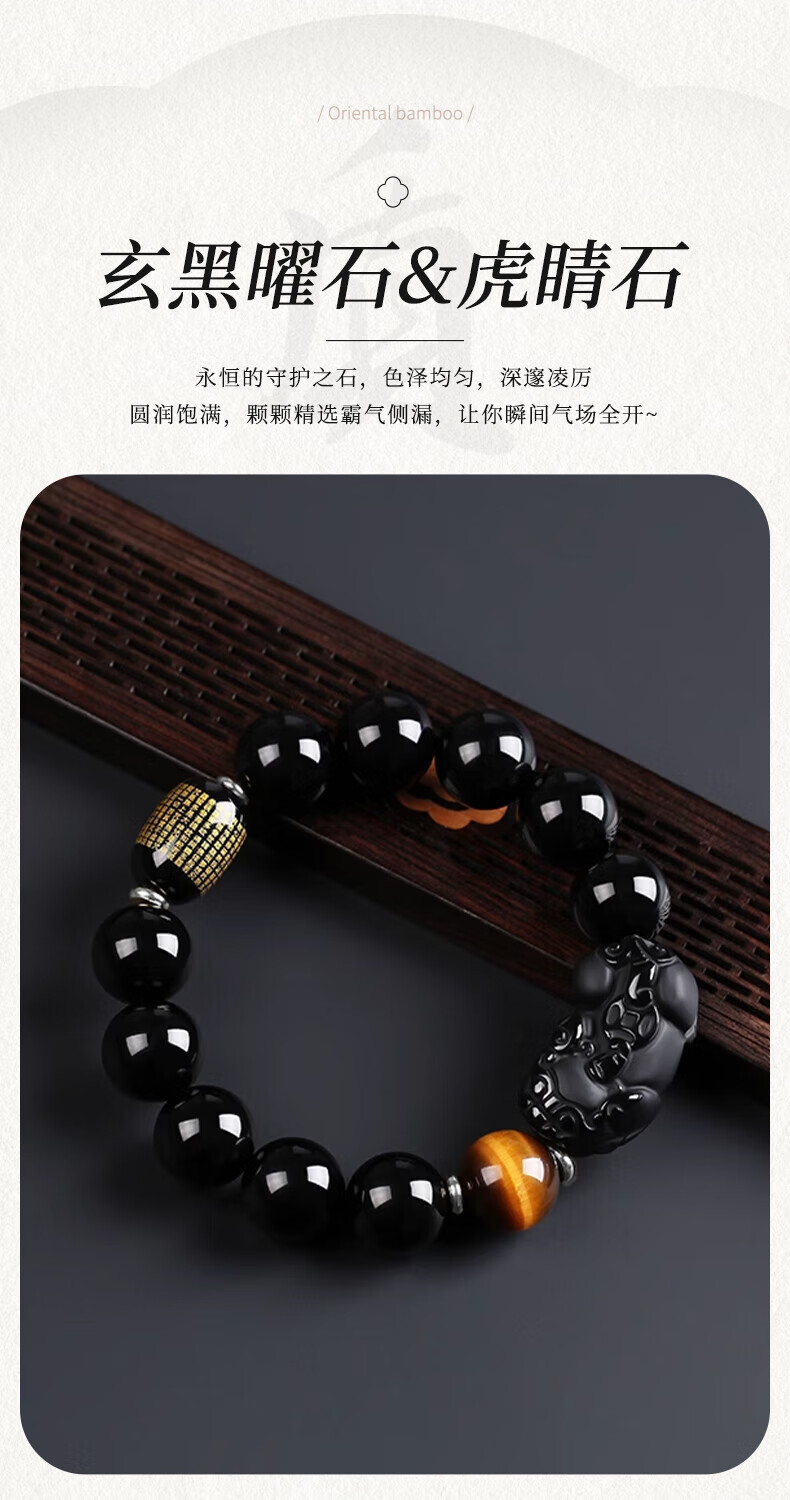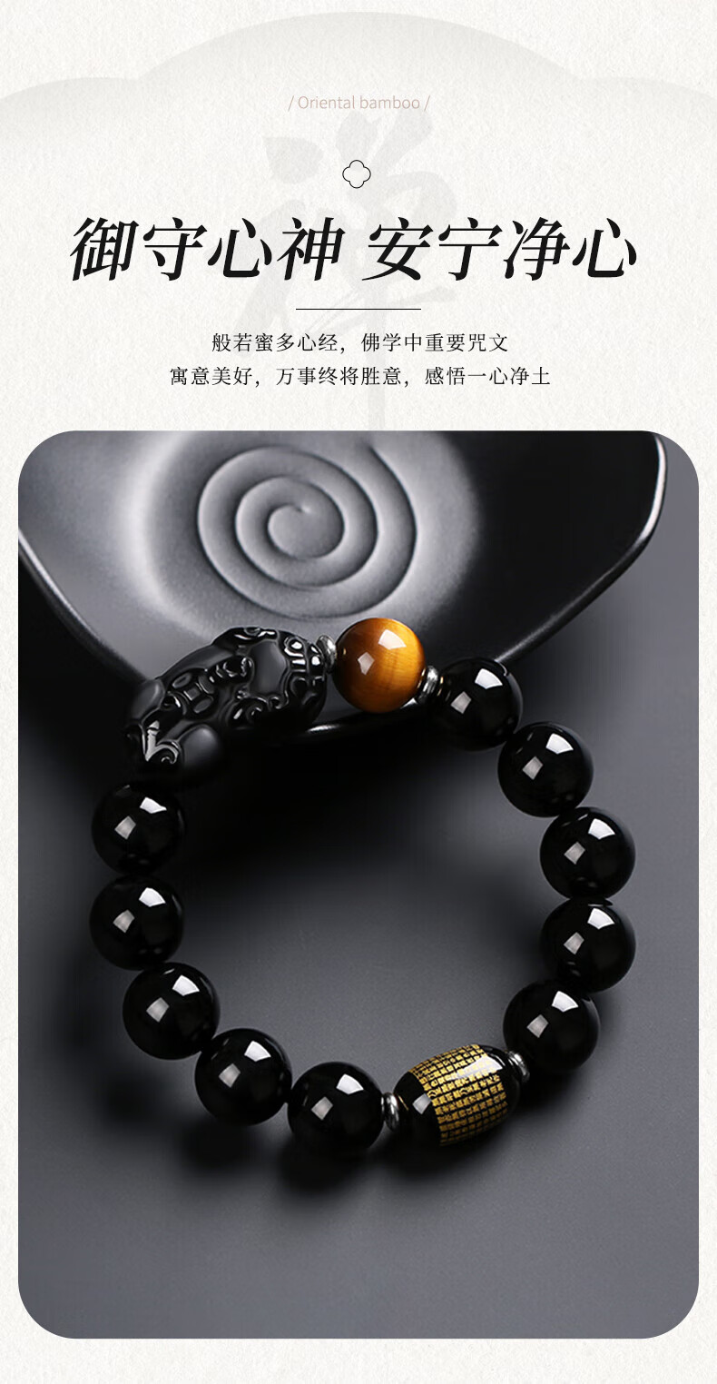 BJYL Obsidian Bracelet Lucky Pixiu Bracelet Men's Transport Beads Tiger Eye Stone Jewelry Gift for Boyfriend and Husband Lucky Pixiu Heart Sutra Obsidian Bracelet-12mm