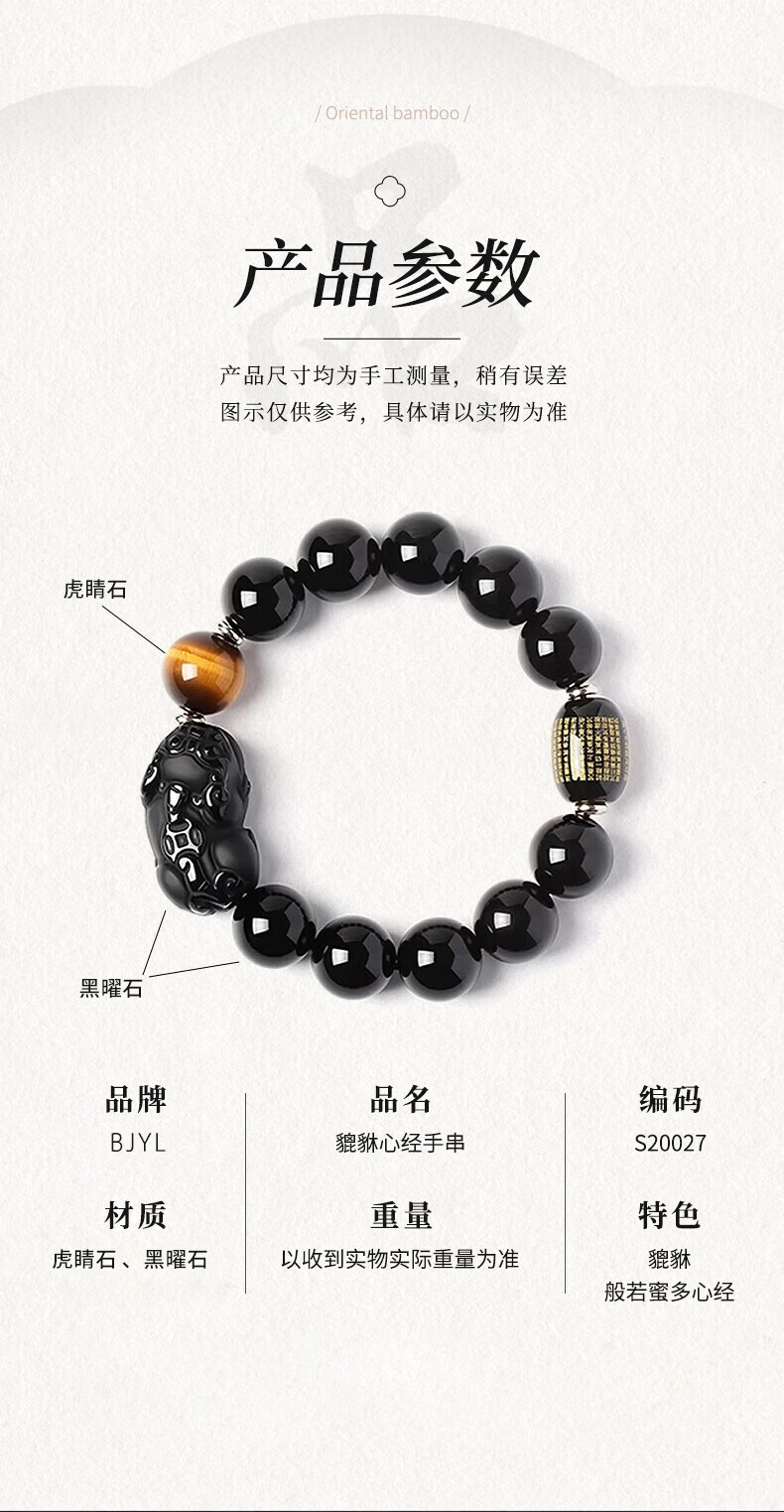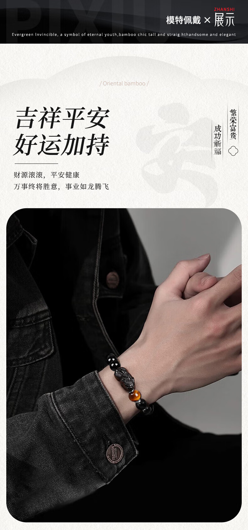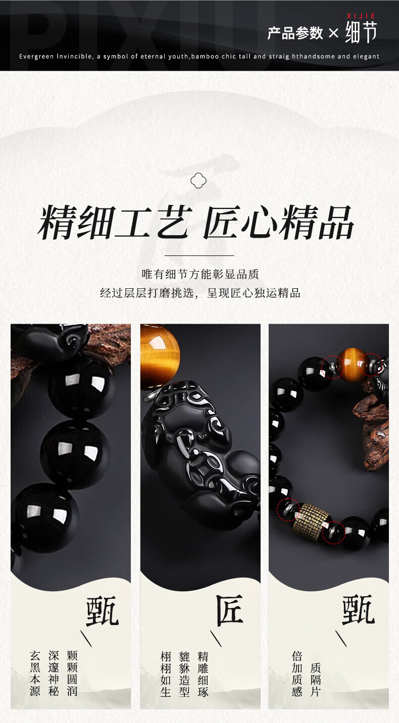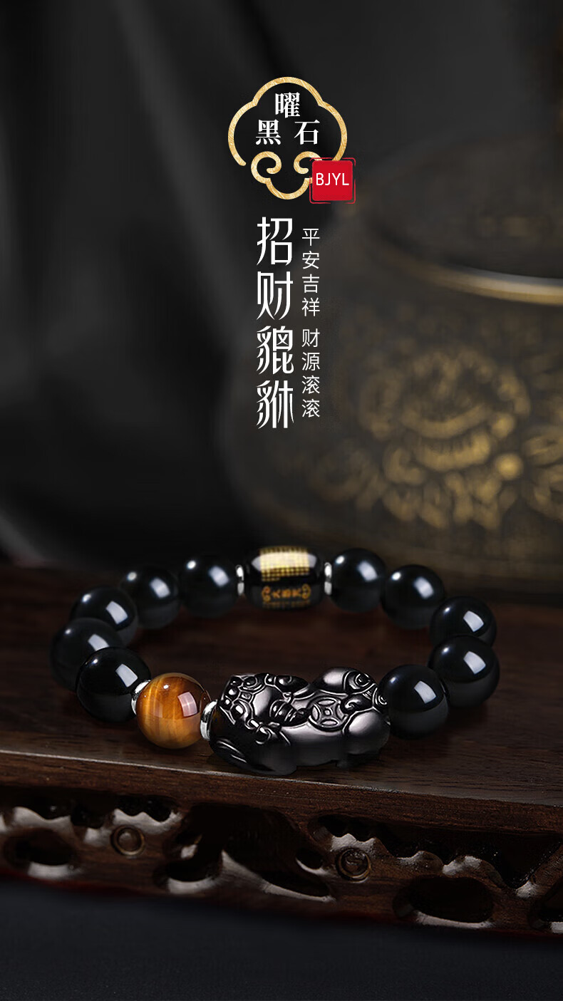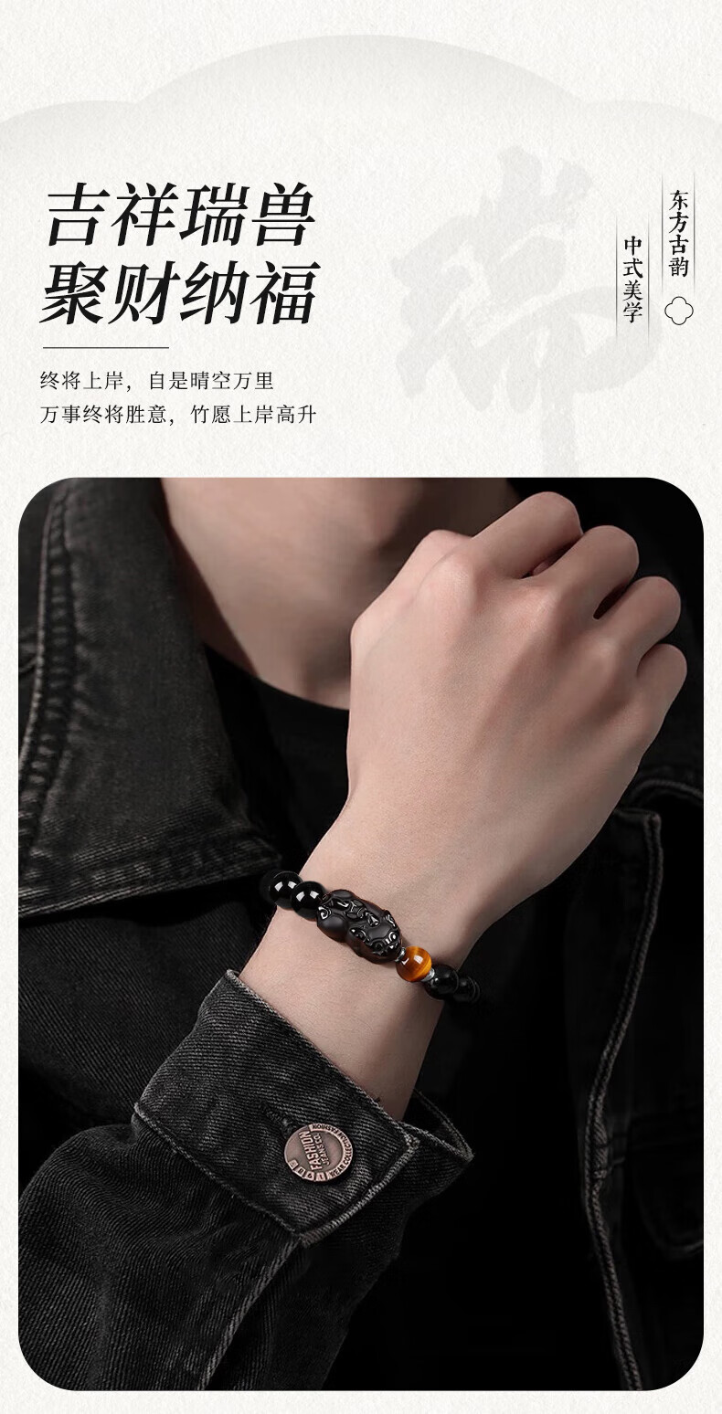 BJYL Obsidian Bracelet Lucky Pixiu Bracelet Men's Transport Beads Tiger Eye Stone Jewelry Gift for Boyfriend and Husband Lucky Pixiu Heart Sutra Obsidian Bracelet-12mm