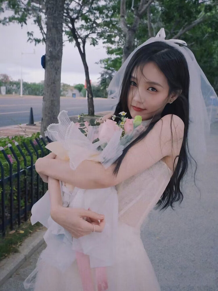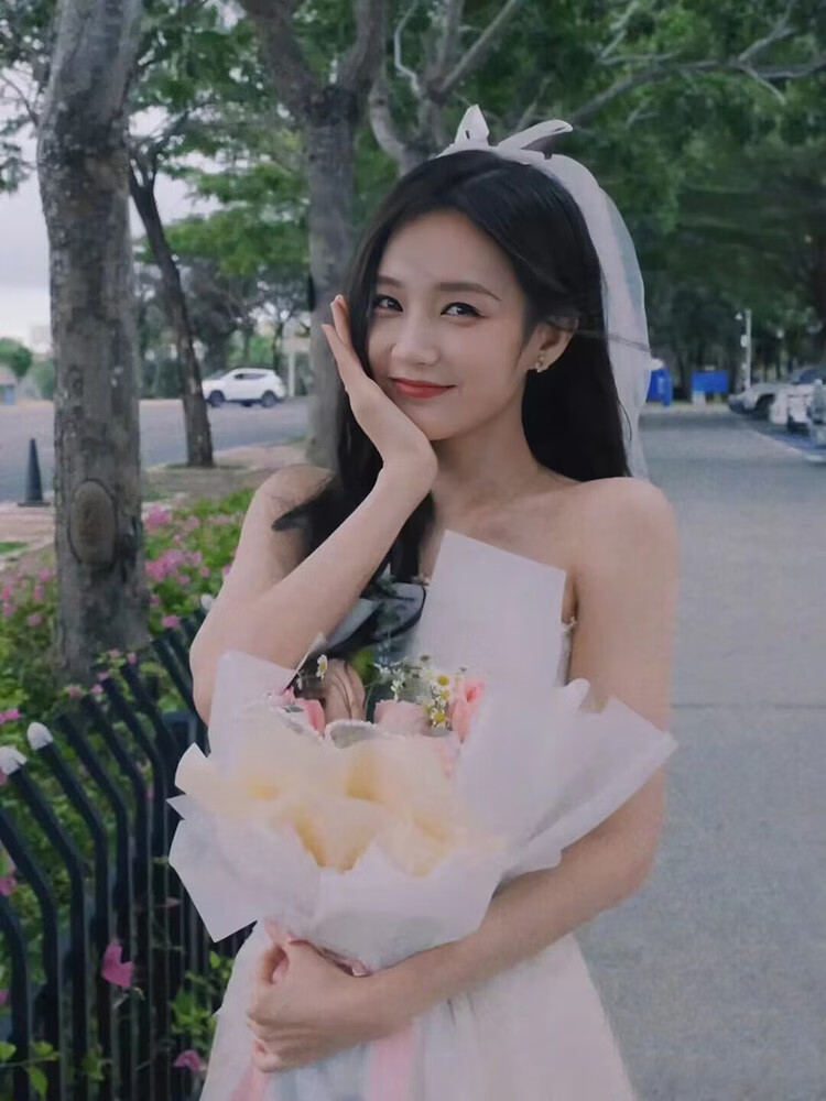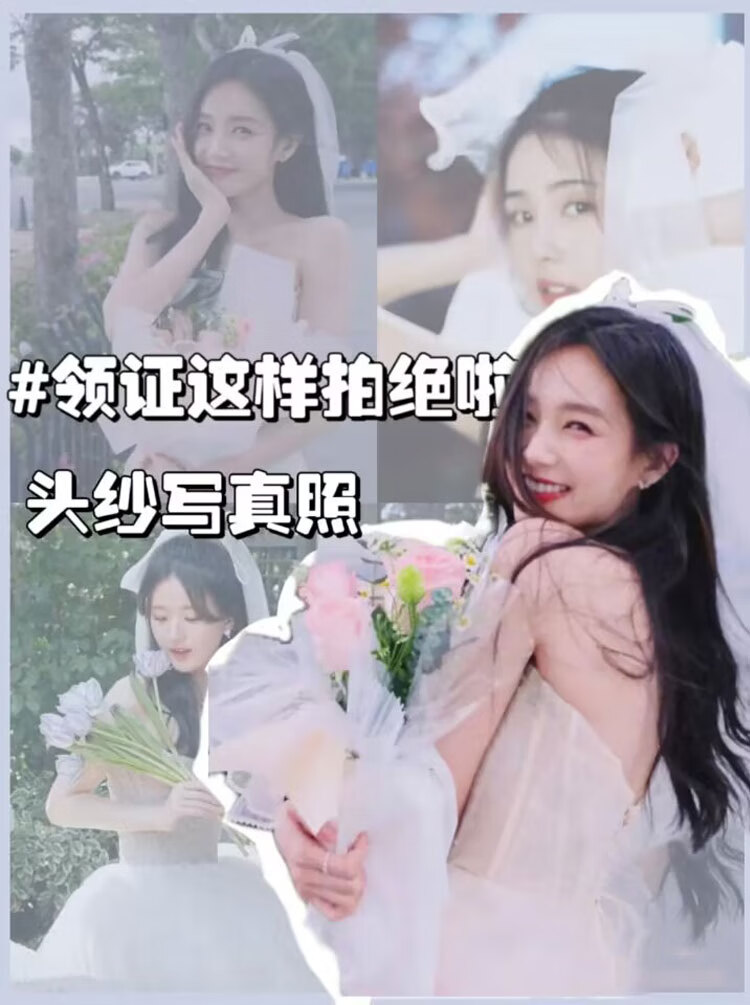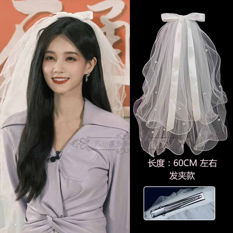 Luruo Li Yitong Bridal Certification Veil Follow-up Proposal Registration Photo Props Ritual Bow Short Puffant Veil Simple Double-layer Small Veil Hairpin 45CM