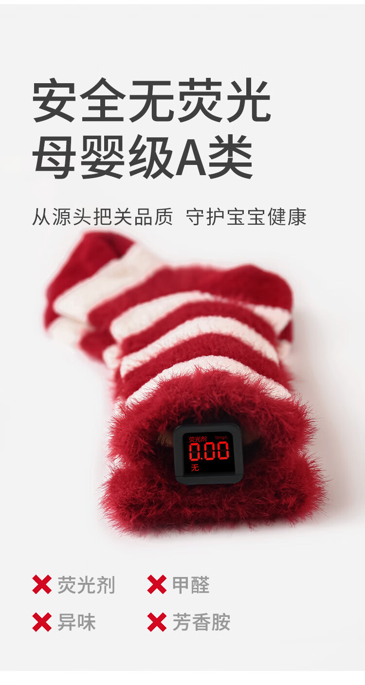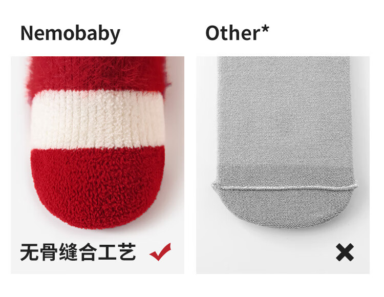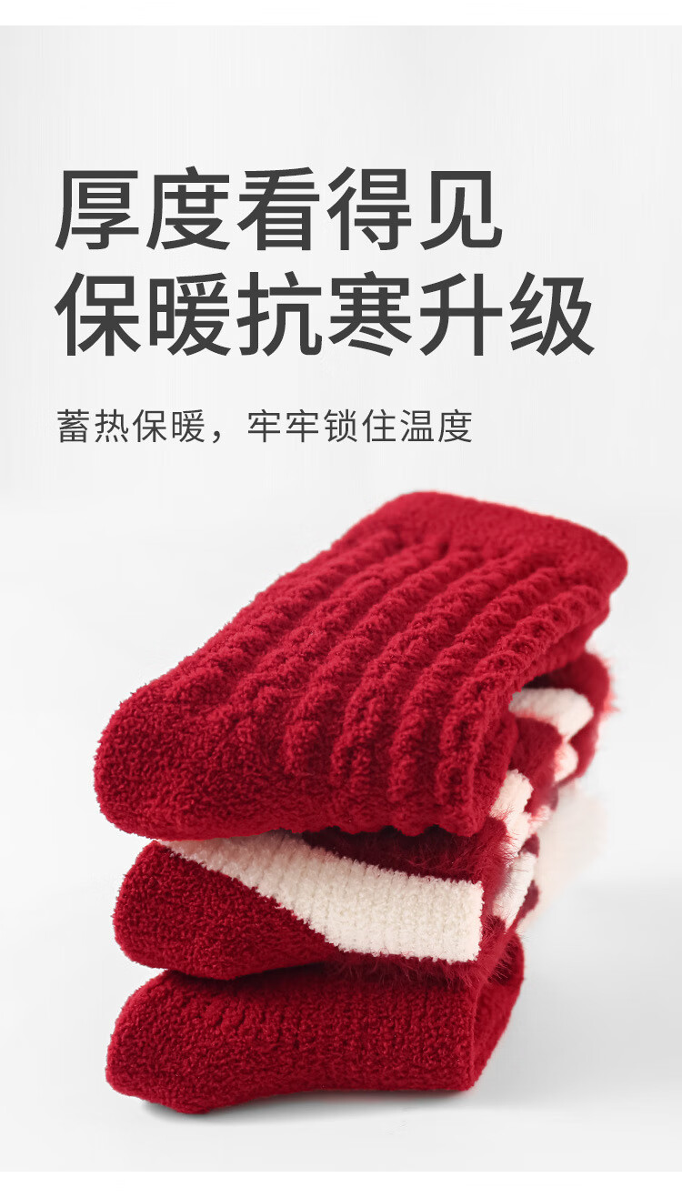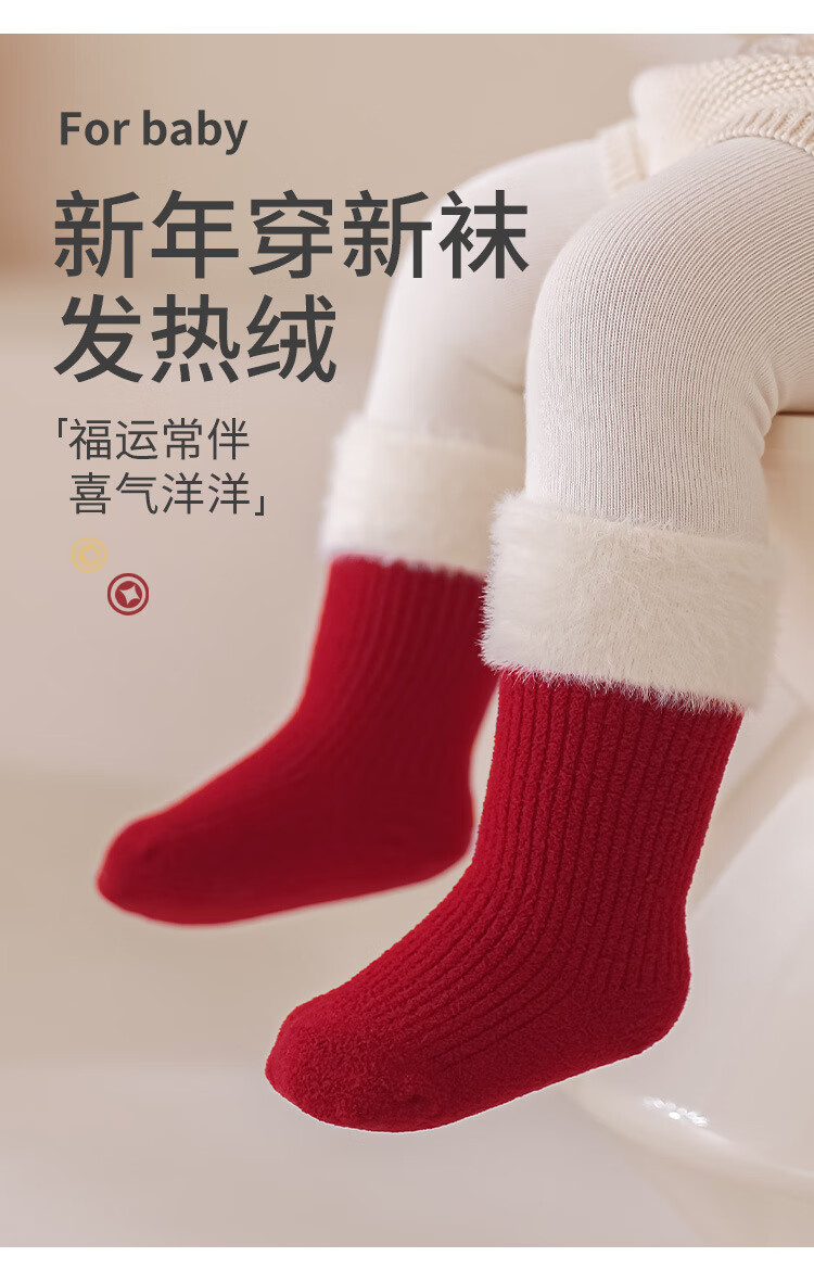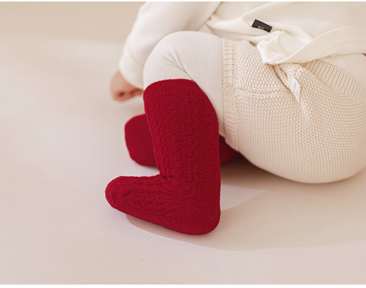 AMI children's one-year-old New Year's socks red socks plus velvet thickened terry socks autumn and winter boneless heating velvet socks B style ball 1 pair 0-6 months