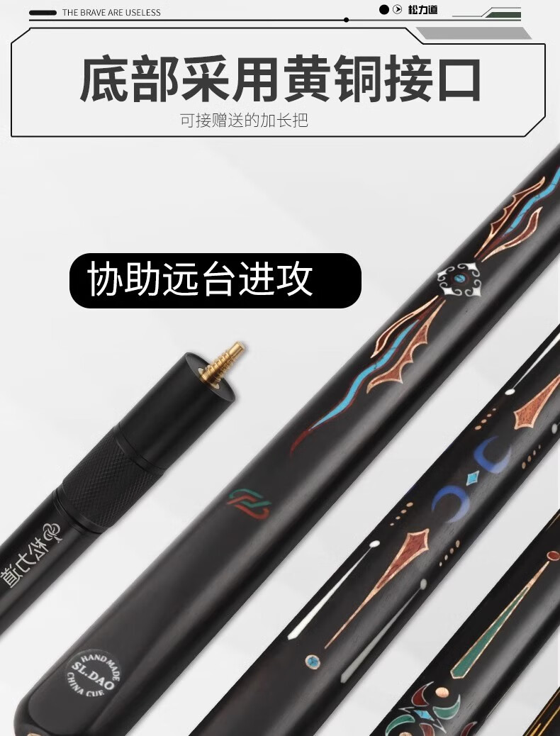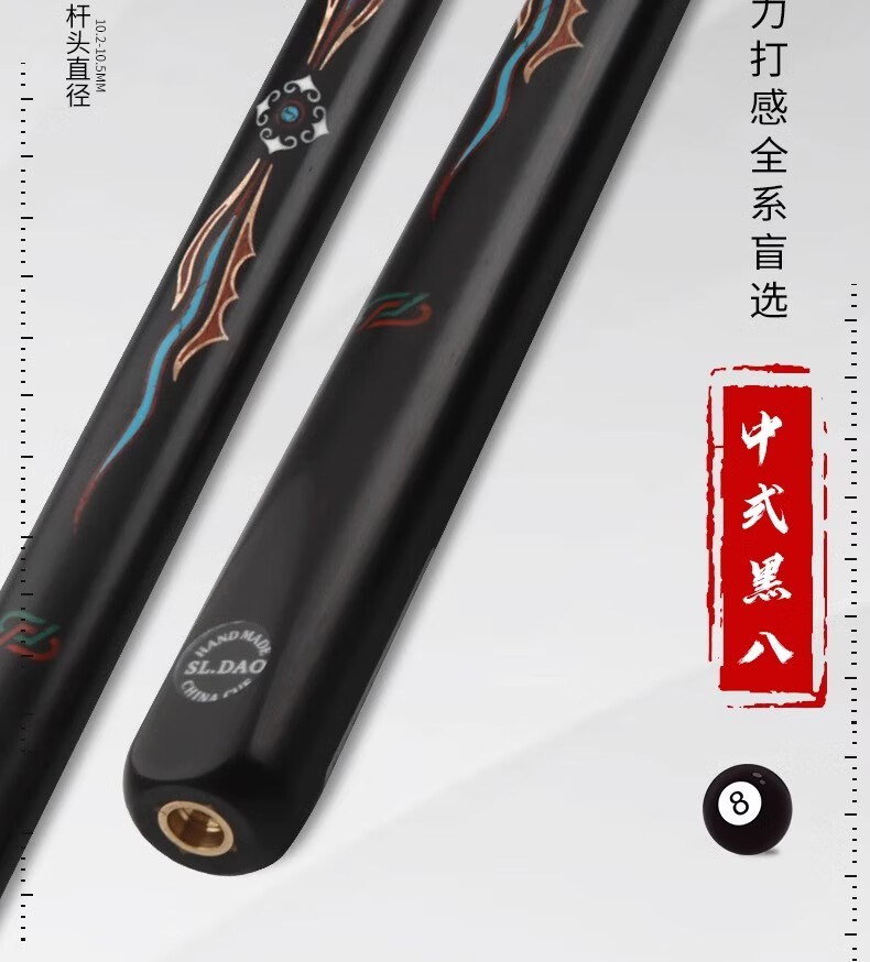 Songlidao billiard cue Zhuri Songsheng series small head Chinese style black eight paint-free one-piece black 8 snooker billiard cue Songsheng free wooden cue box package
