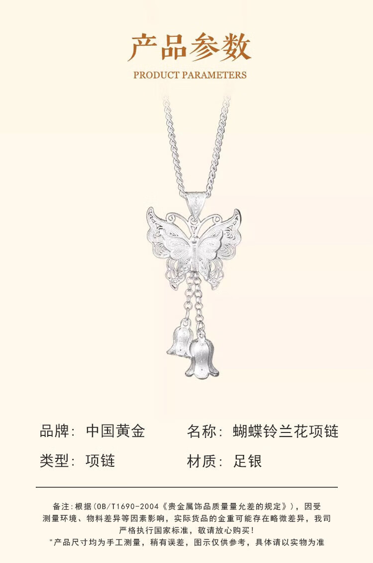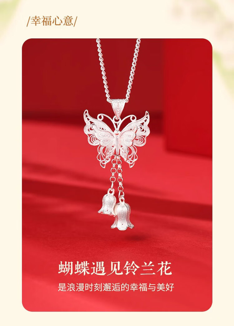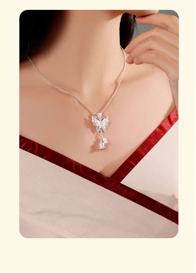 CHINA GOLD Pure Silver Necklace Women's Butterfly Lily of the Valley Tassel Pendant Valentine's Day Birthday Gift for Girlfriend and Lover Today/Next Day Delivery Butterfly Lily of the Valley Flower Necklace