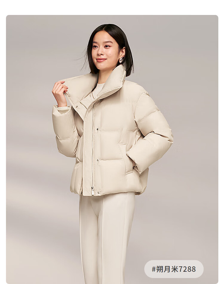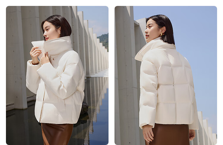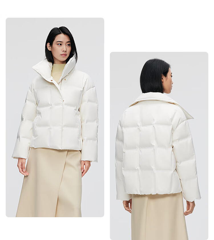 Bosideng (BOSIDENG) down jacket goose down women's lapel new national standard 90 velvet shopping mall fashion versatile same style slim jacket store manager recommended milk white diamond pattern jacquard 8958 XL 175/96A weight about 140-160Jin Jin equals 0.5 kg