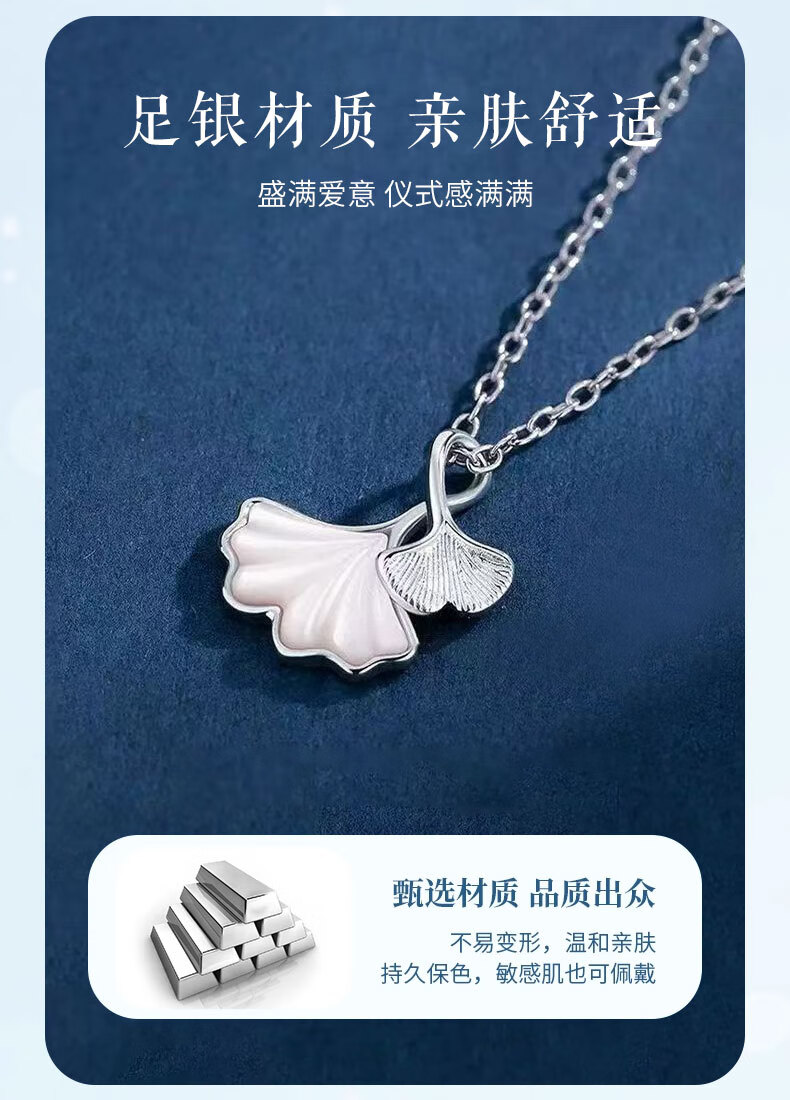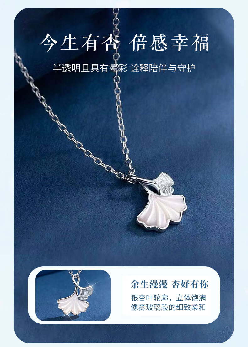 CHINA GOLD Three Lives Apricot Foot Silver Necklace for Women Women's Ginkgo Leaf Pendant Light Luxury Niche Valentine's Day Birthday Gift for Girlfriend and Lover Today/Next Day Delivery Three Lives Apricot Necklace