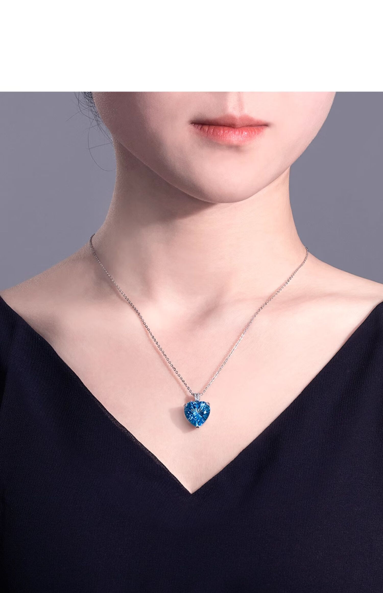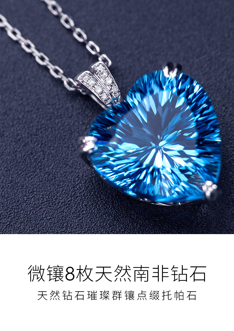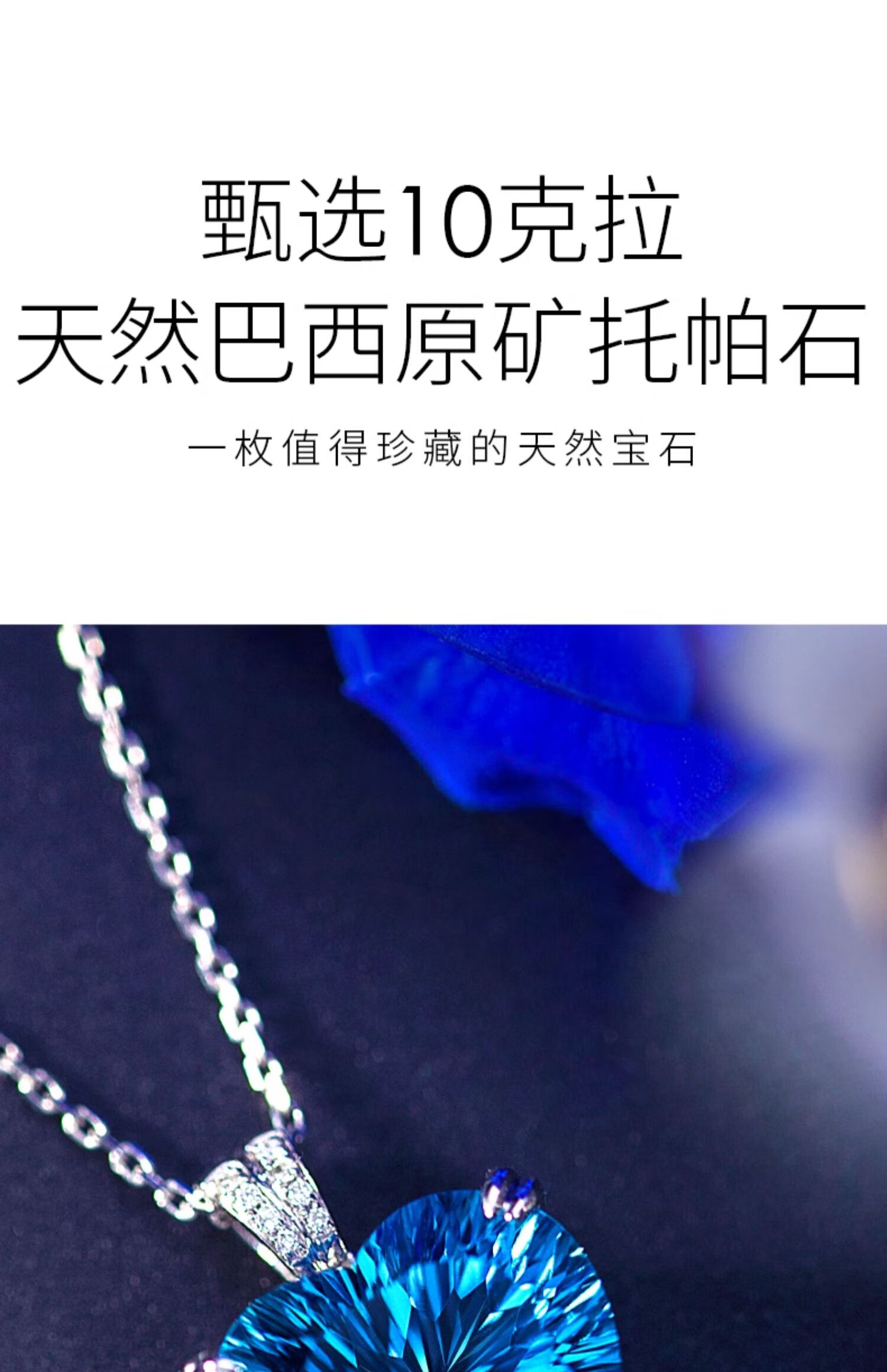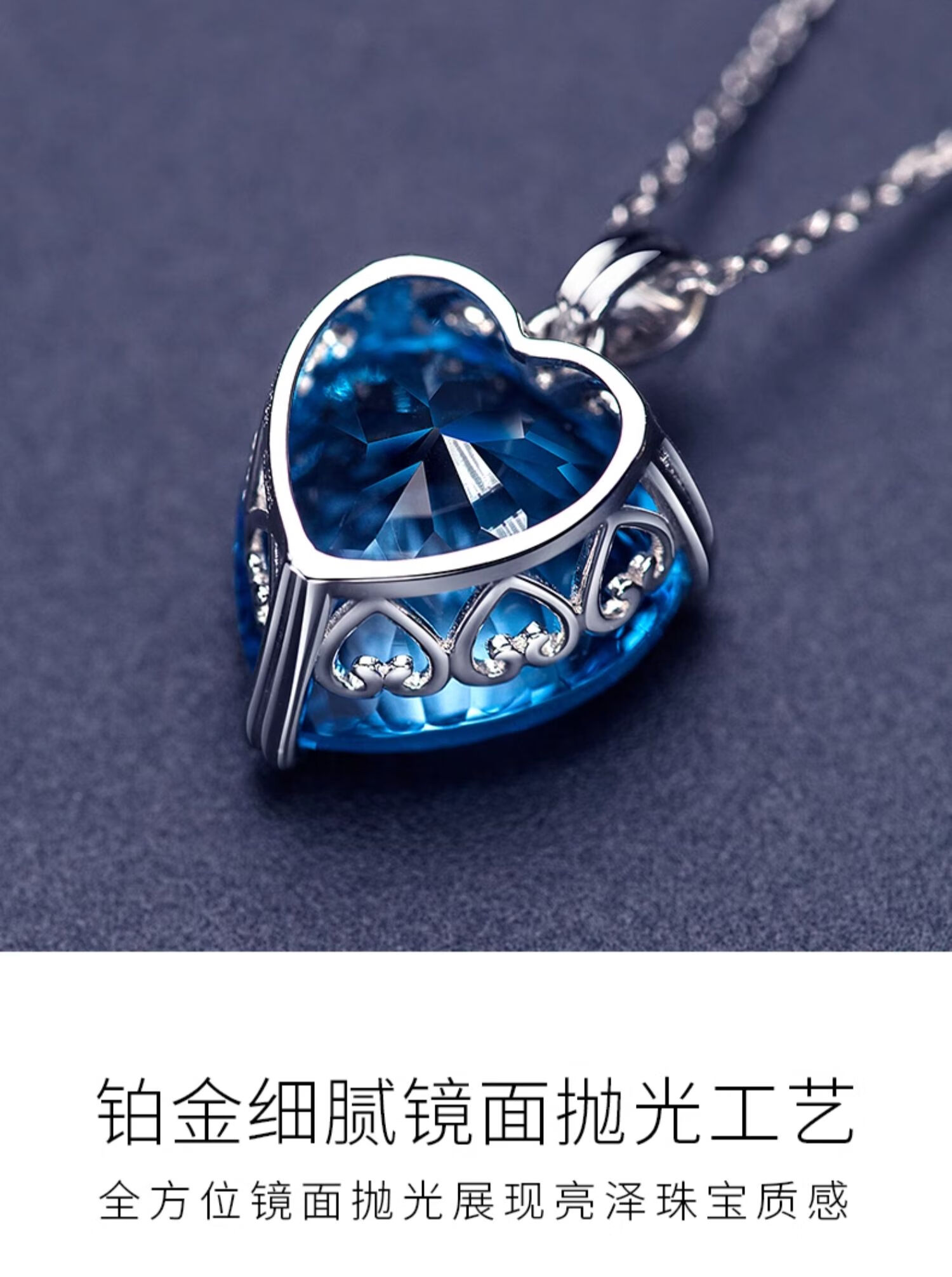 Ji Shizhe PT950 Heart of the Ocean Platinum Necklace for Women Platinum Diamond Pendant Chinese Valentine's Day Birthday Gift for Girlfriend pt950 Platinum Necklace/Topaz/8 Real Diamonds
