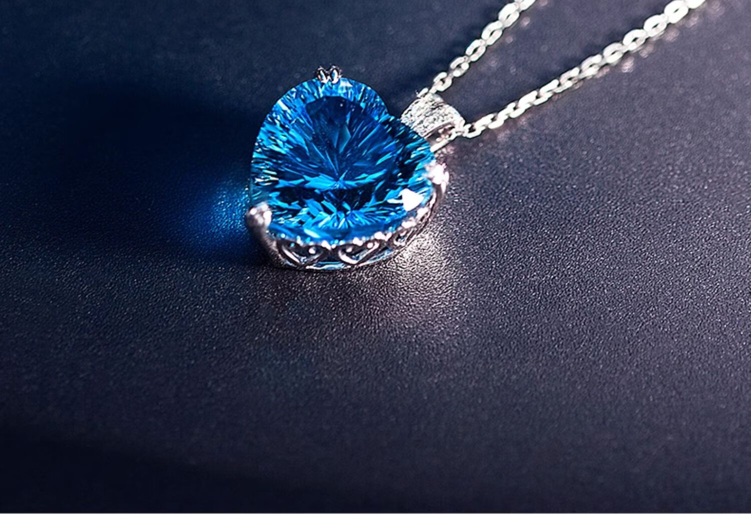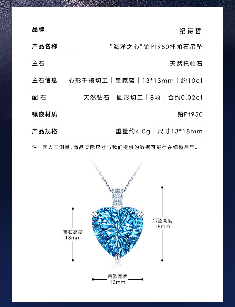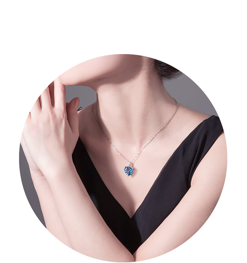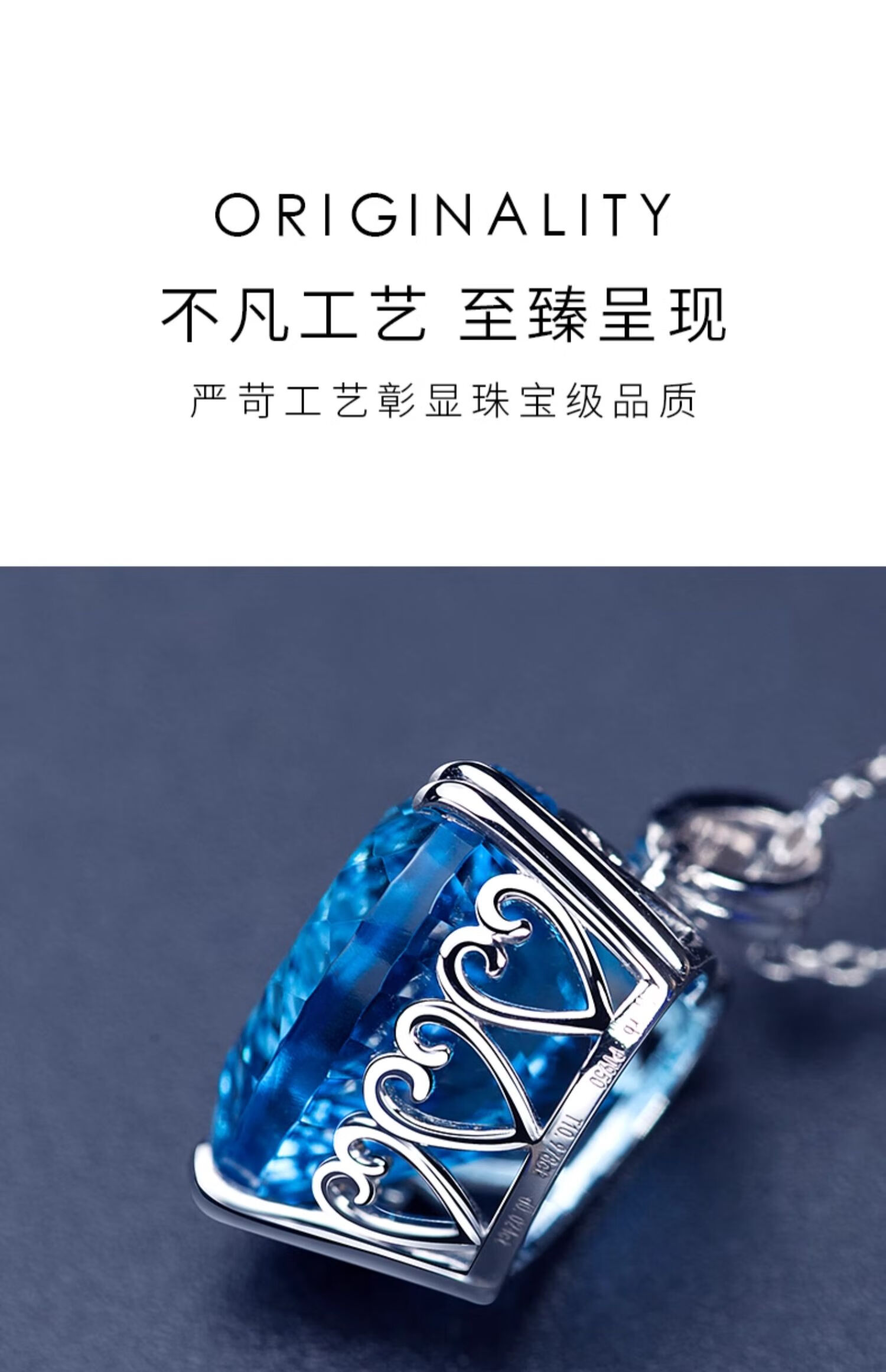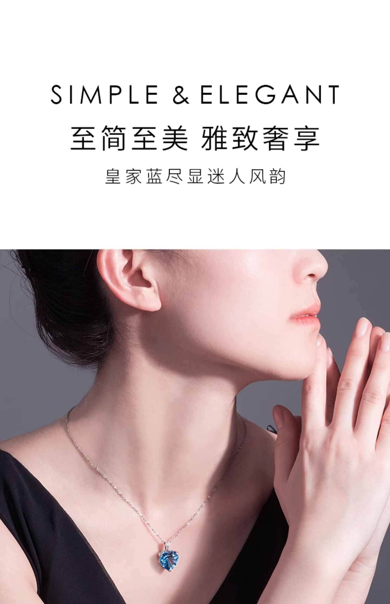 Ji Shizhe PT950 Heart of the Ocean Platinum Necklace for Women Platinum Diamond Pendant Chinese Valentine's Day Birthday Gift for Girlfriend pt950 Platinum Necklace/Topaz/8 Real Diamonds