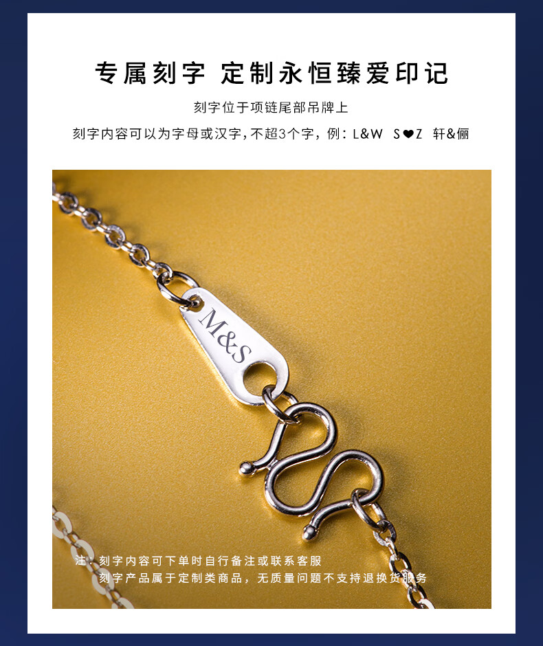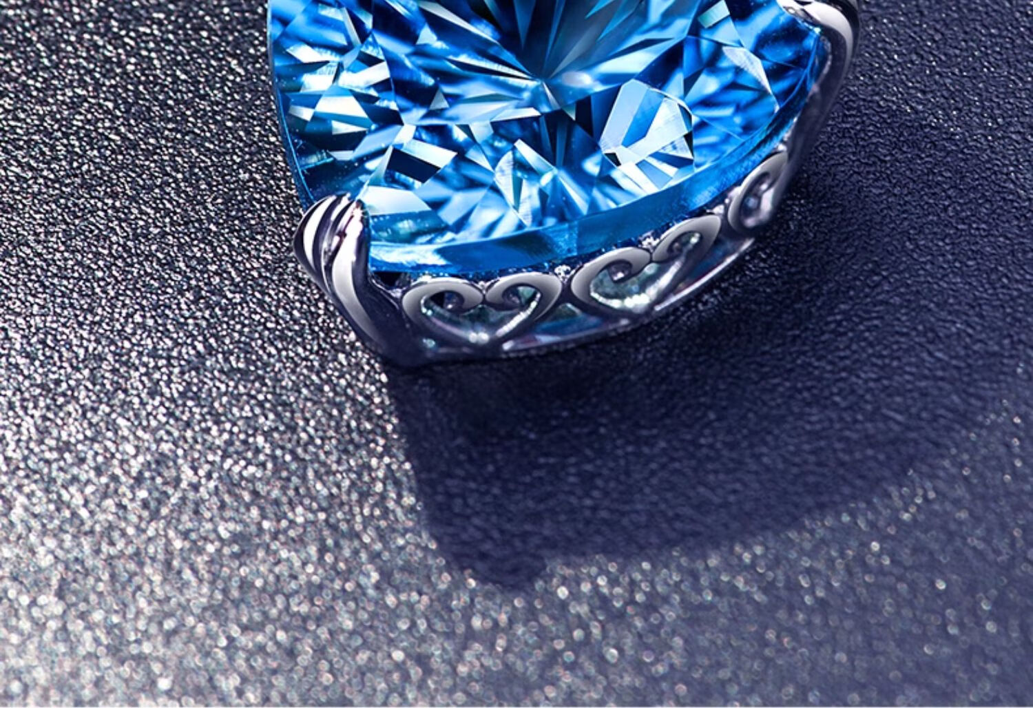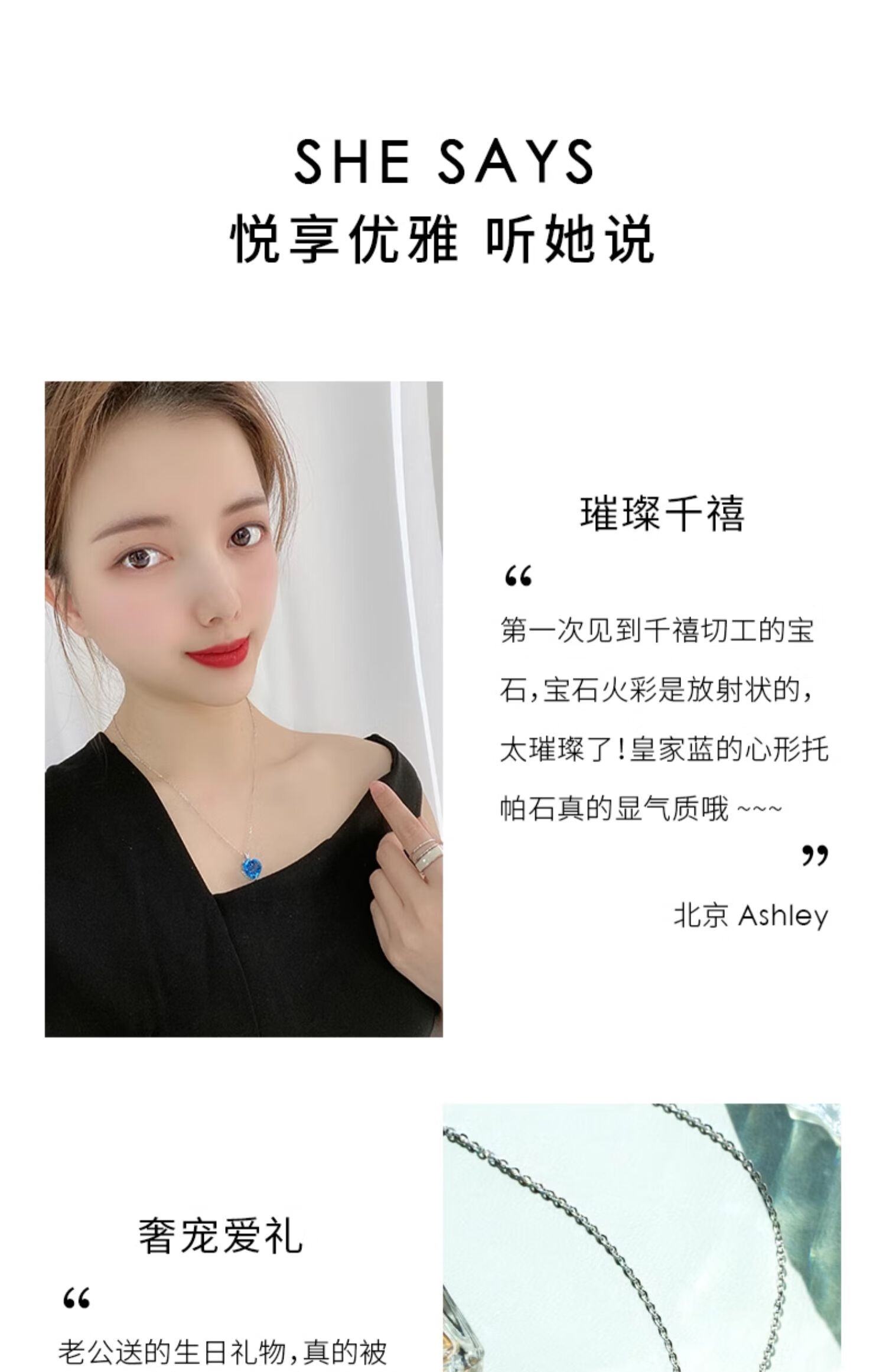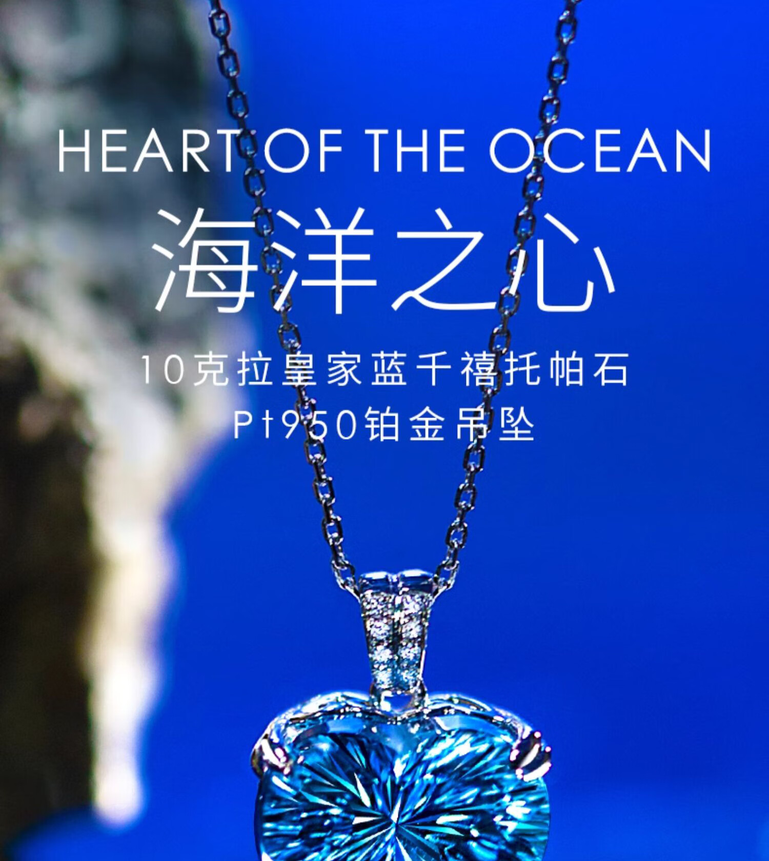 Ji Shizhe PT950 Heart of the Ocean Platinum Necklace for Women Platinum Diamond Pendant Chinese Valentine's Day Birthday Gift for Girlfriend pt950 Platinum Necklace/Topaz/8 Real Diamonds