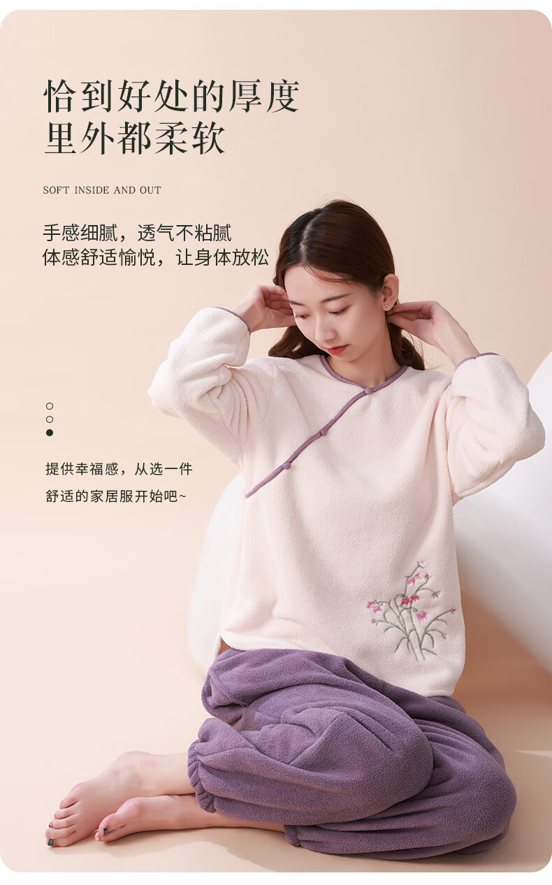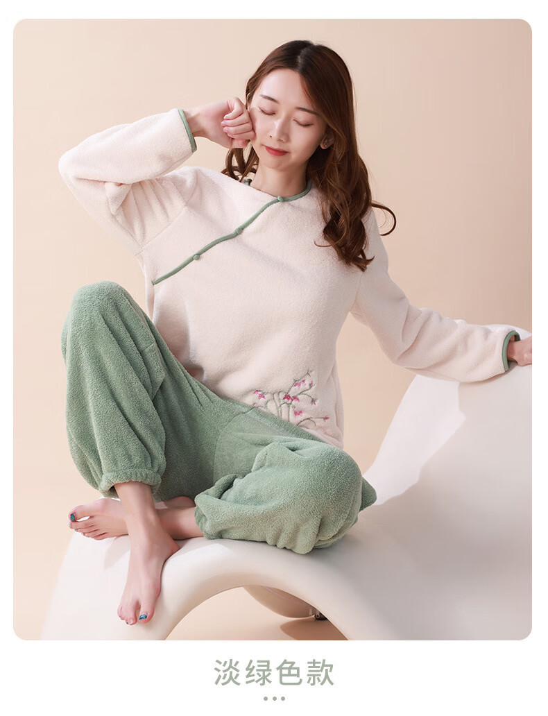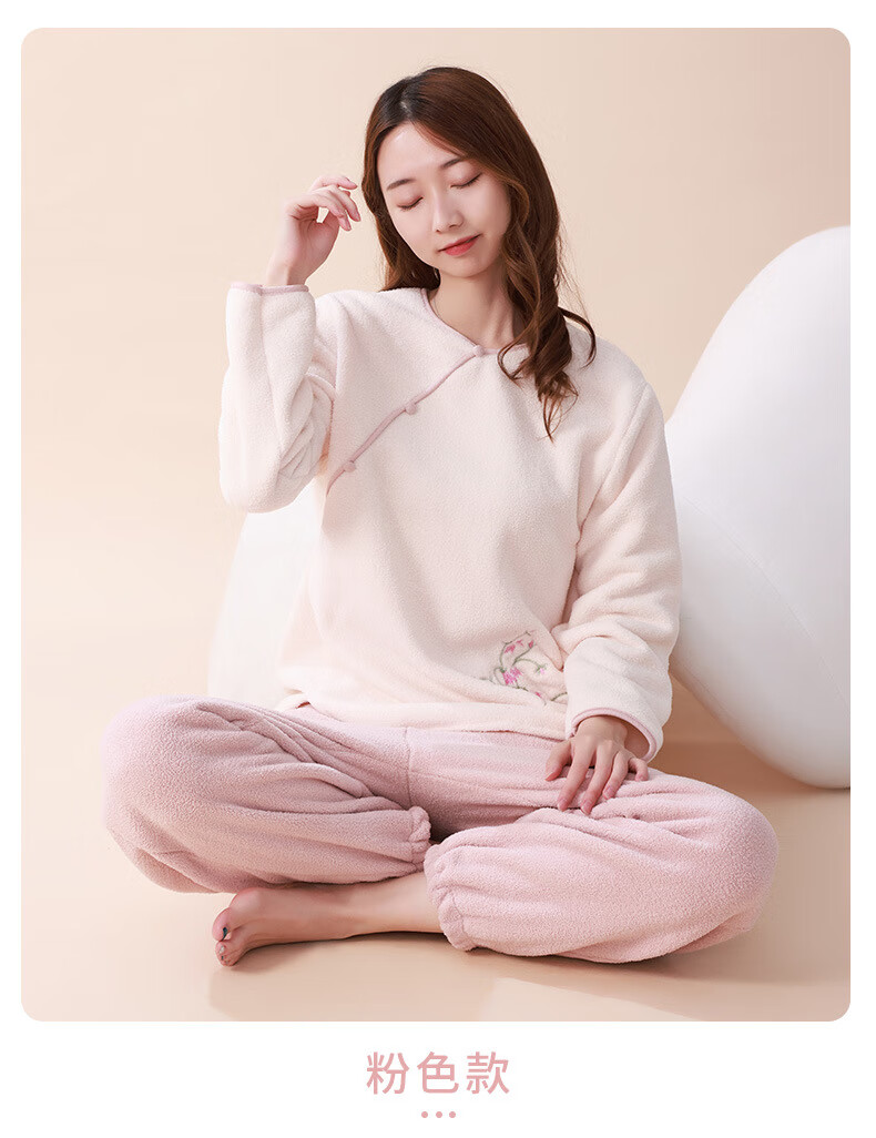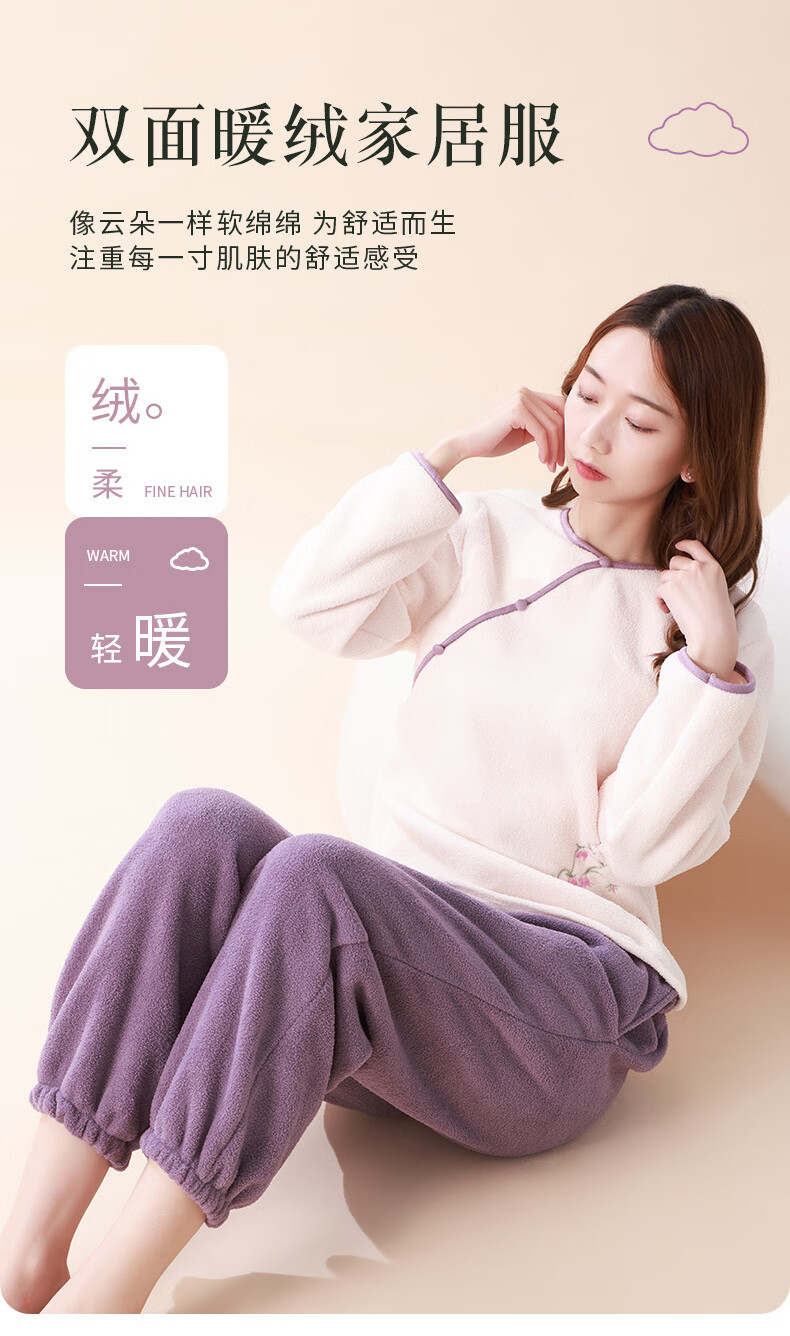 Love autumn and summer new Chinese style double-sided velvet pajamas for women in autumn and winter plus velvet and thickened national style large size underwear warm home clothes set Sakura pink set M (recommended 80-110Jin Jin equals 0.5 kg)