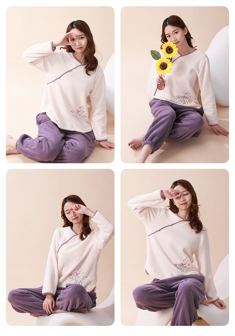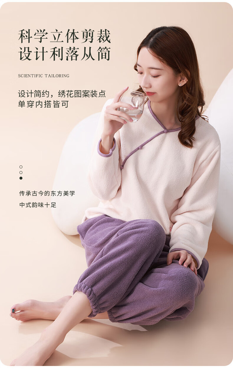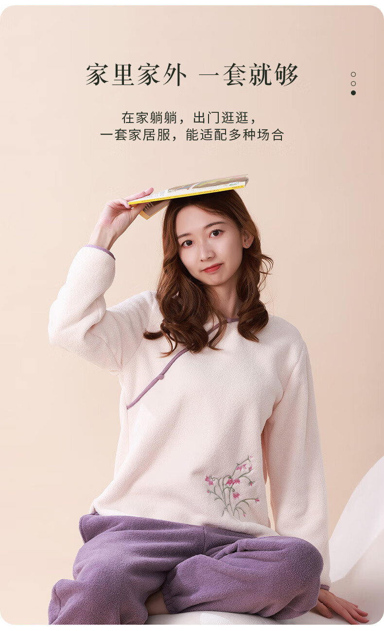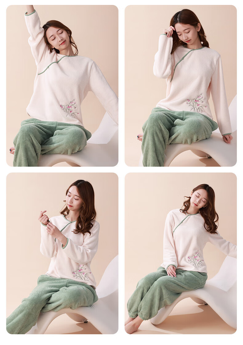 Love autumn and summer new Chinese style double-sided velvet pajamas for women in autumn and winter plus velvet and thickened national style large size underwear warm home clothes set Sakura pink set M (recommended 80-110Jin Jin equals 0.5 kg)