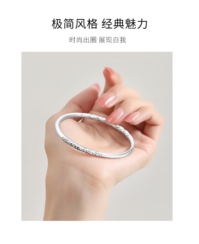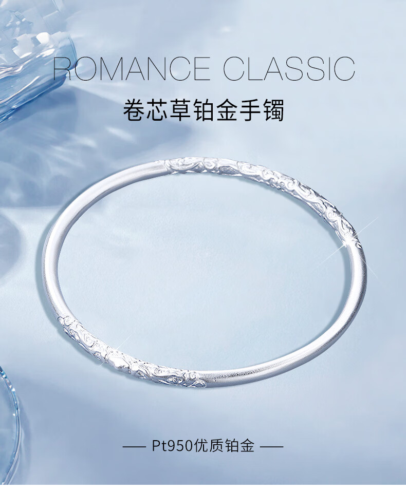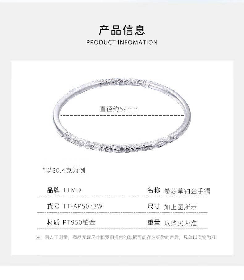 TTMIX glossy gold hoop platinum bracelet closed pt950 women's platinum bracelet curly grass pattern platinum bracelet for girlfriend pt950 60mm 24.65g thick 3.0mm