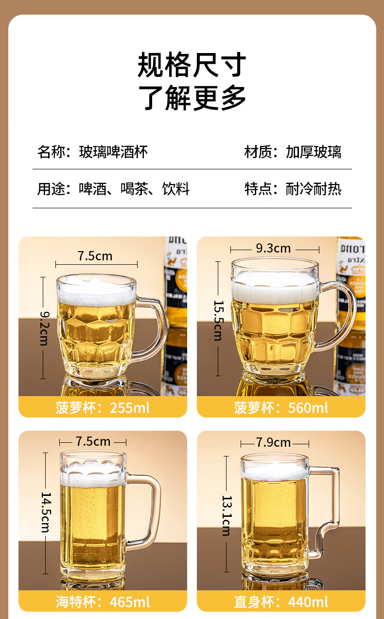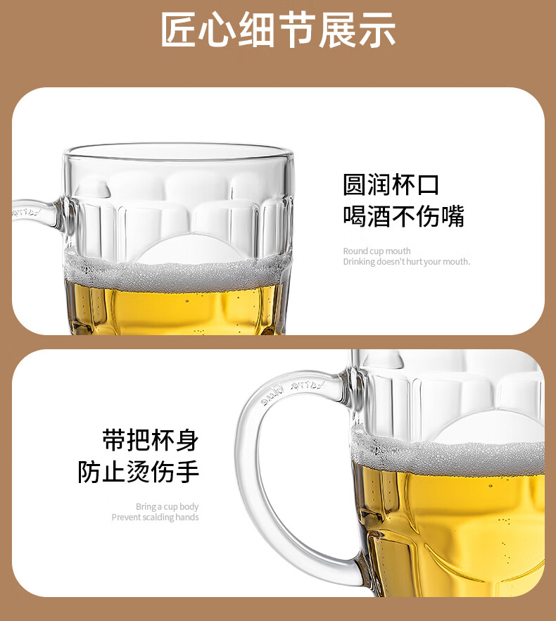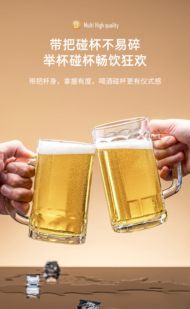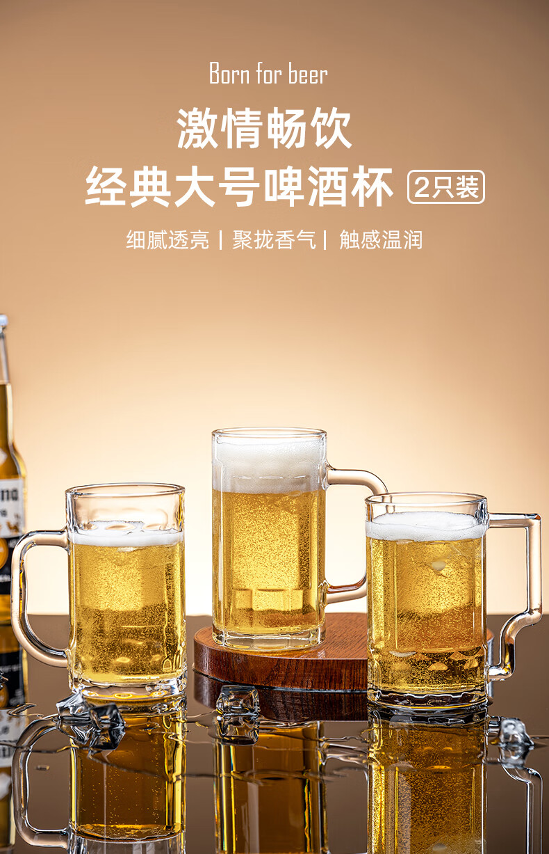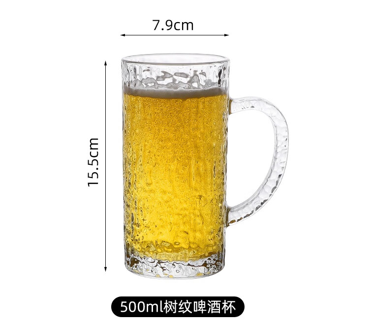 DKO beer mug with handle large capacity household internet celebrity draft beer mug commercial creative large glass craft beer mug tree pattern beer mug*1 only 500ml
