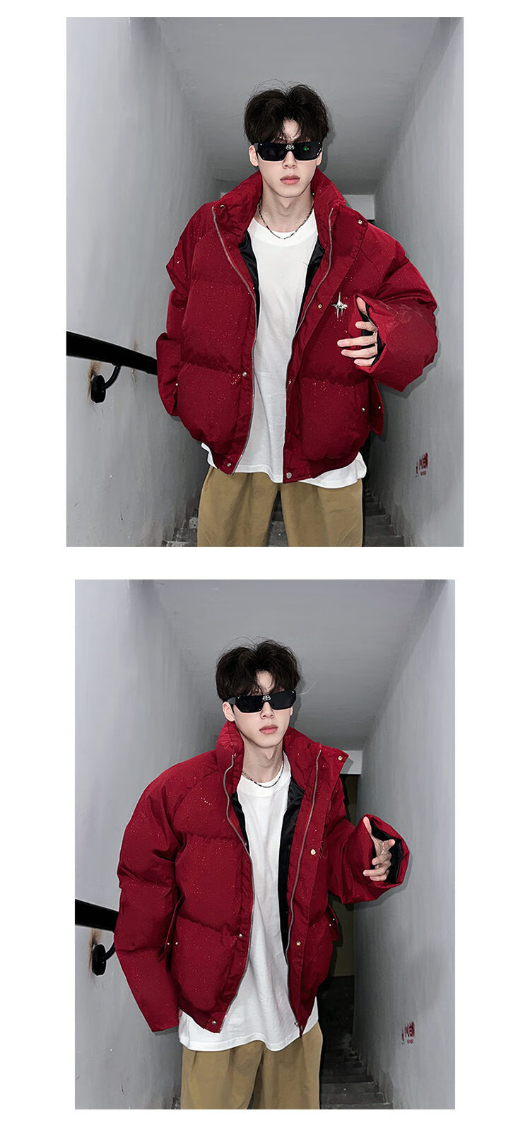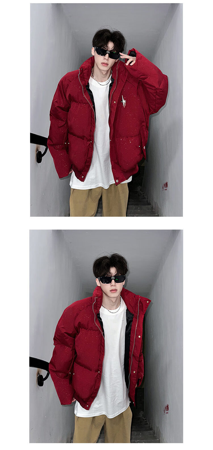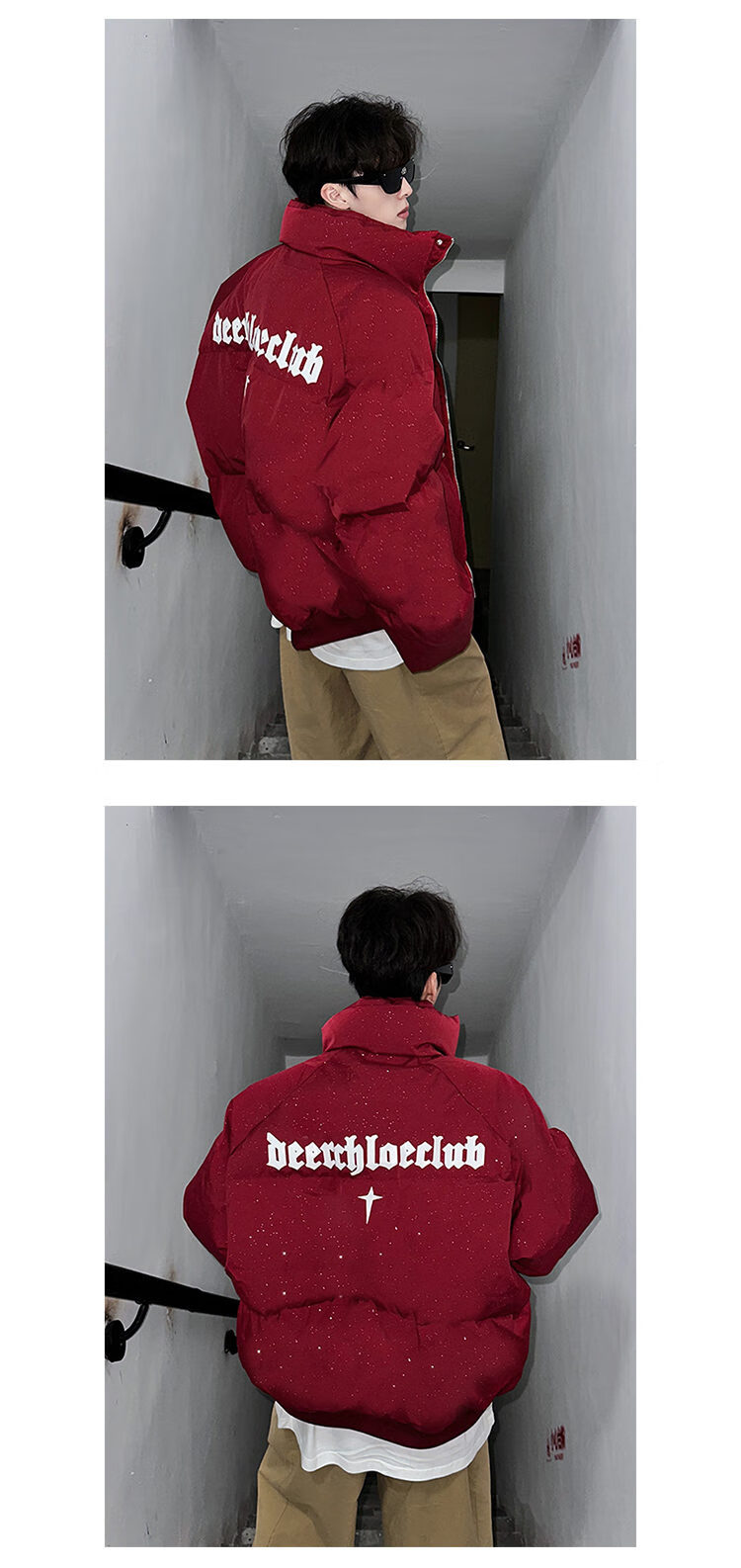 NYING American baby's breath sequined cotton coat men's winter new fashion brand thickened warm cotton coat handsome loose cotton jacket red XL (135-150Jin Jin equals 0.5 kg)