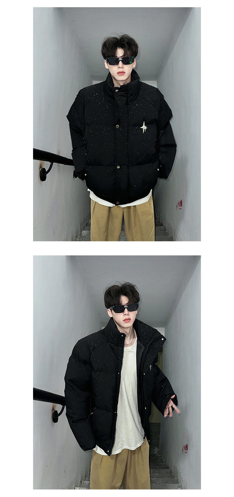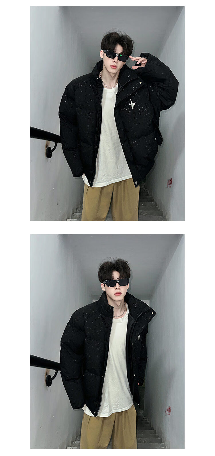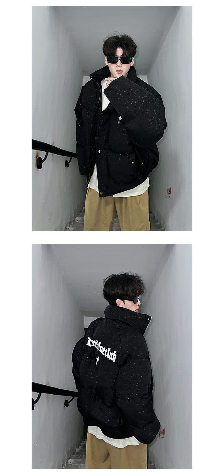 NYING American baby's breath sequined cotton coat men's winter new fashion brand thickened warm cotton coat handsome loose cotton jacket red XL (135-150Jin Jin equals 0.5 kg)