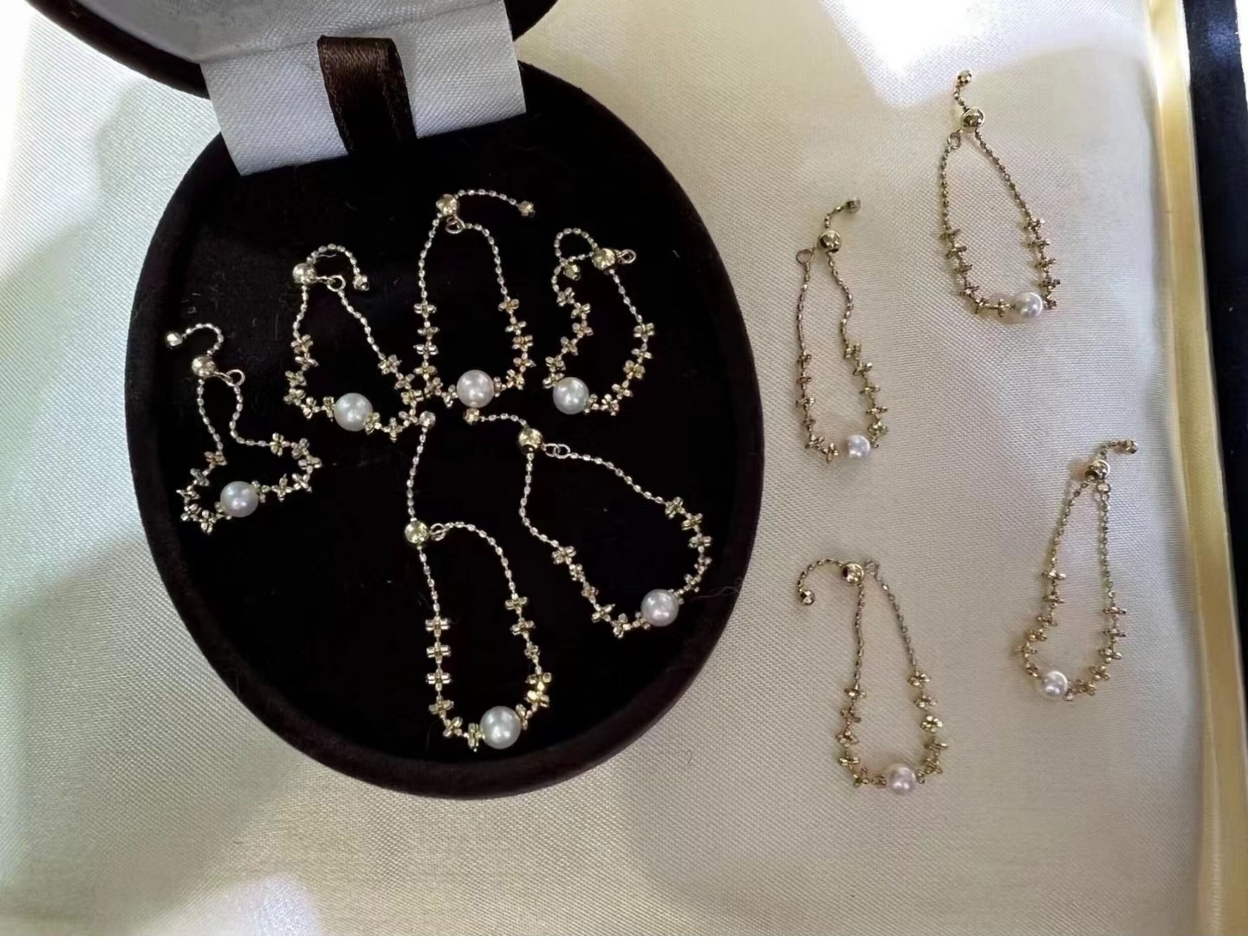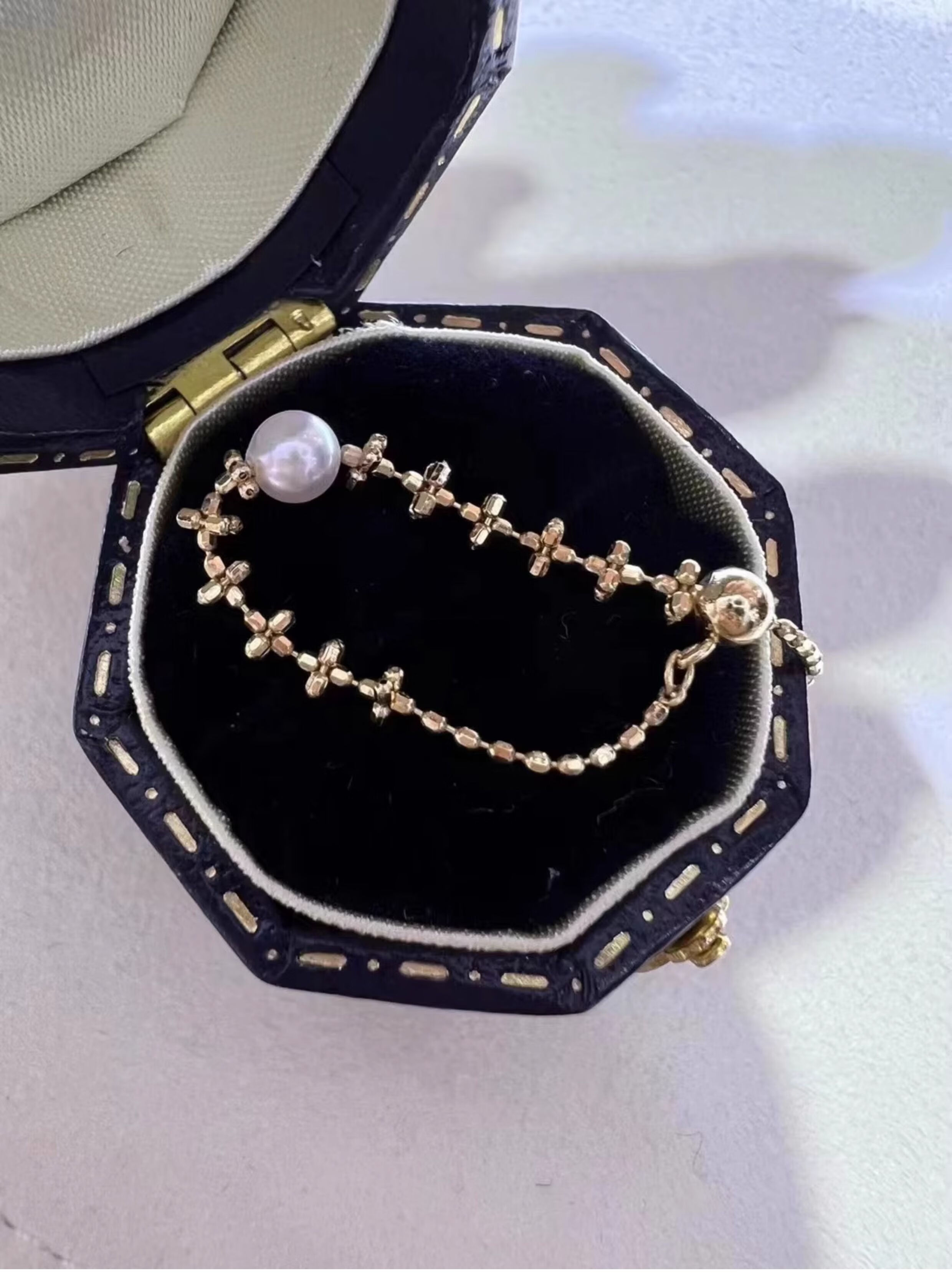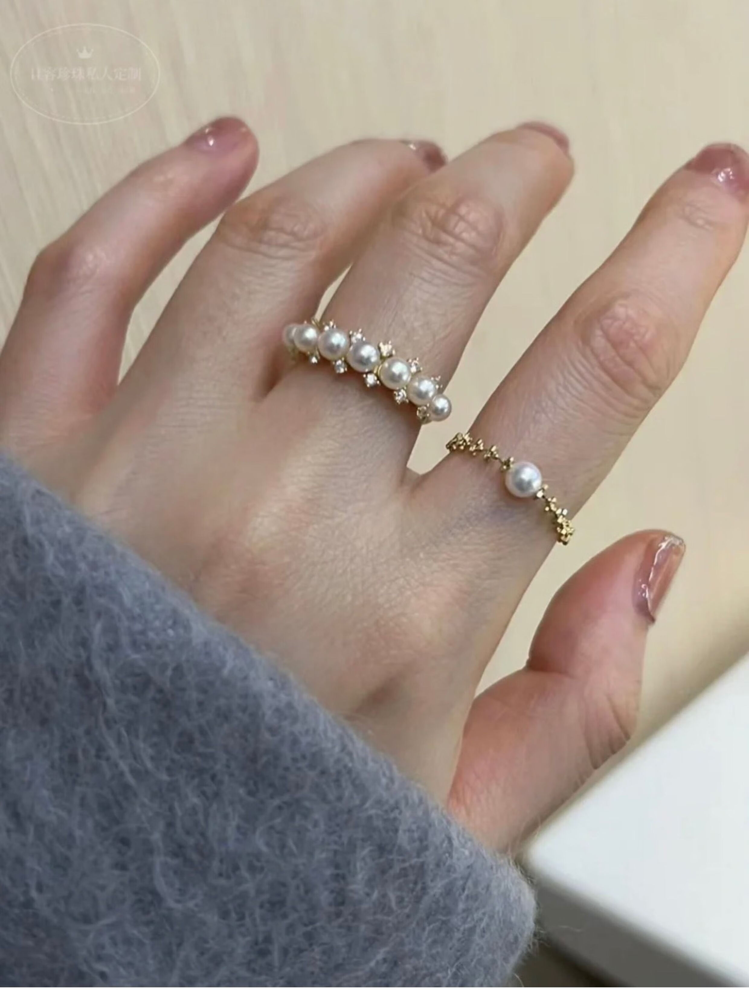 Luruo Japanese seawater akoya 18k gold lace pearl ring is perfectly round and can be pulled to adjust the ring circumference 18k gold lace ring imported from Japan 5-6mm