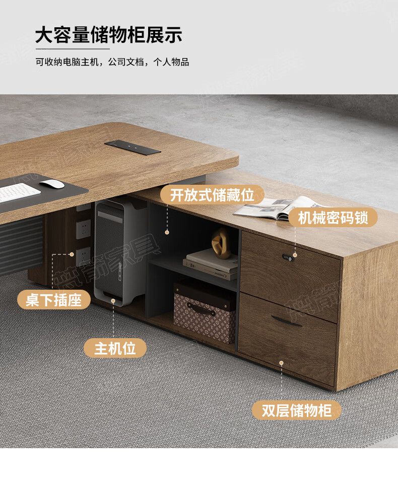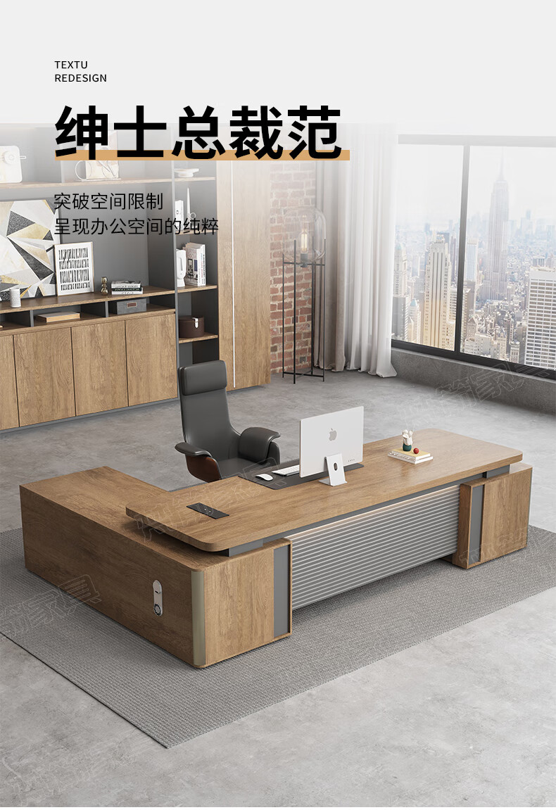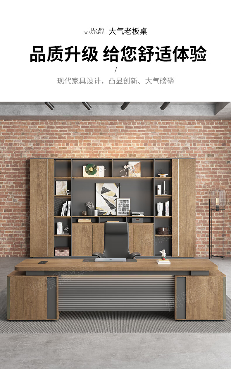 Fubaisen boss desk office desk high-end light luxury president simple modern manager desk and chair combination double cabinet executive desk executive desk 3.2*0.9 meters boss desk