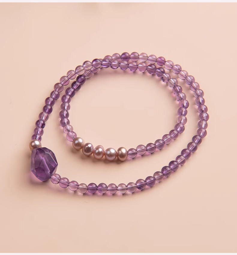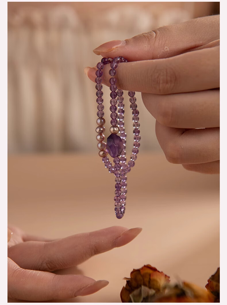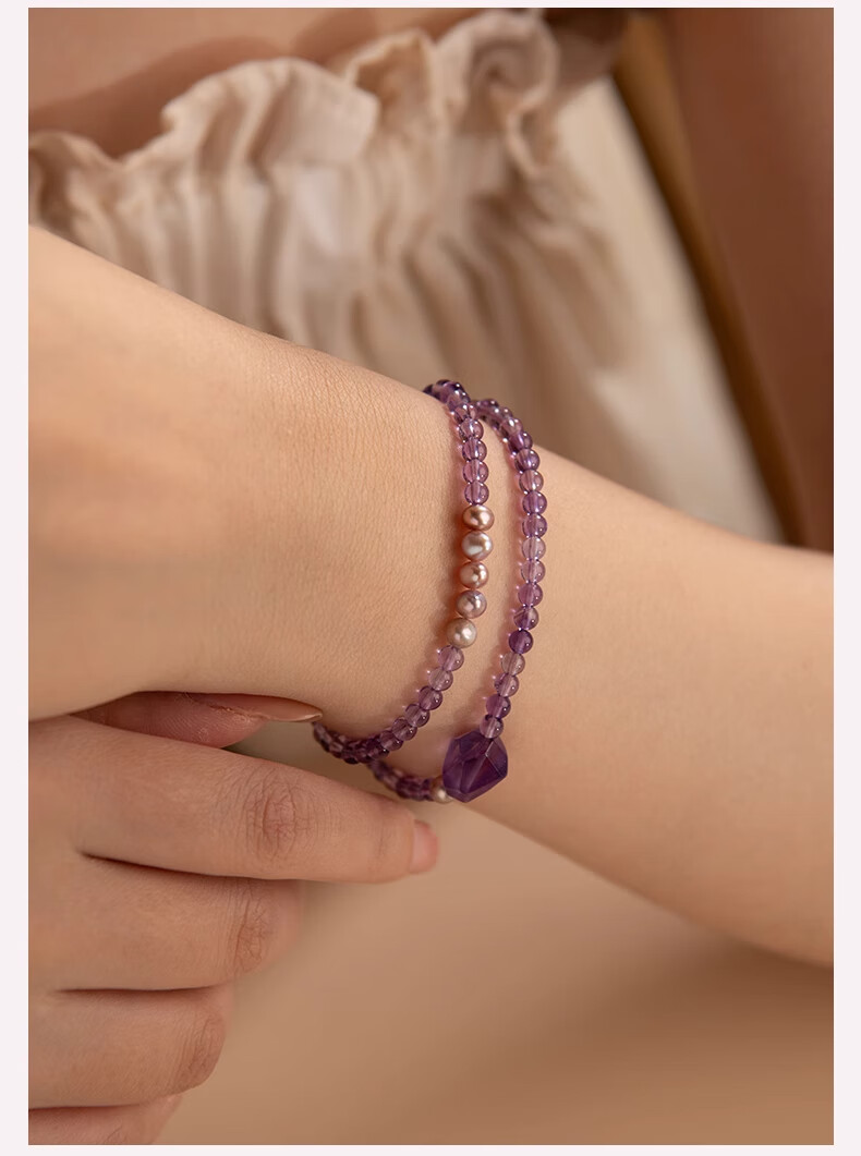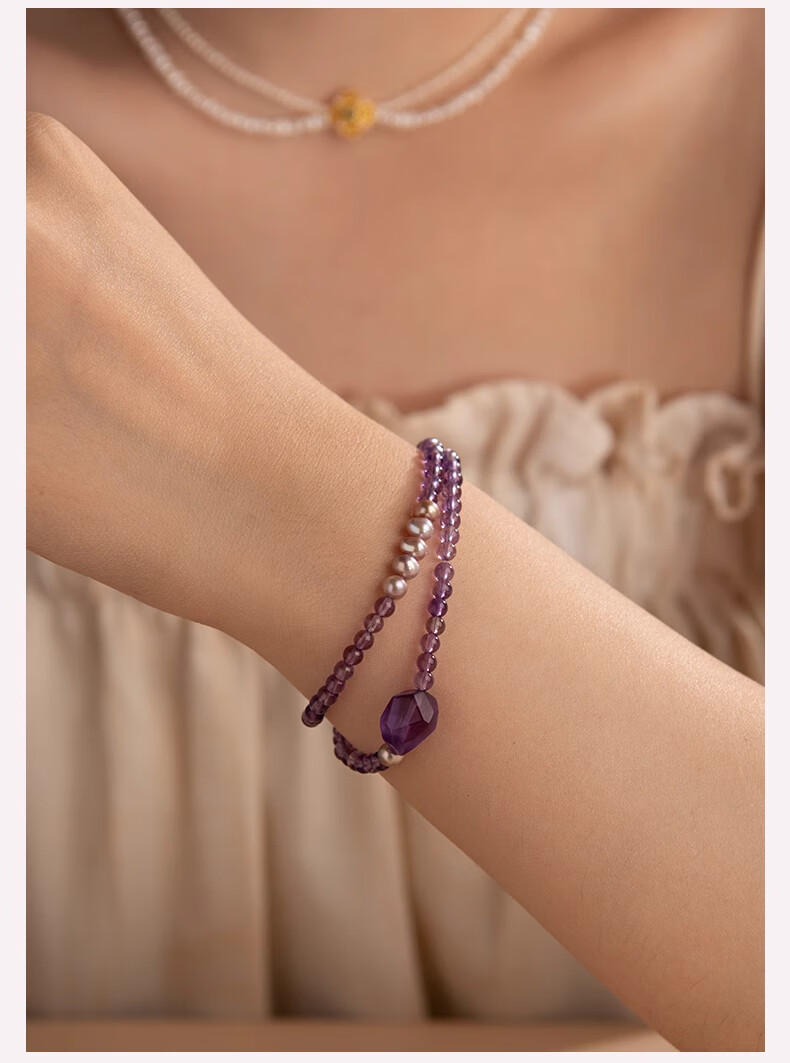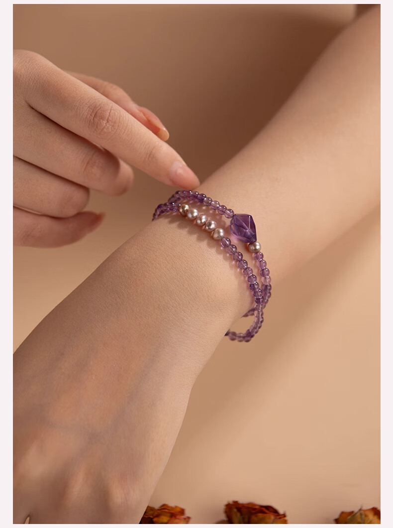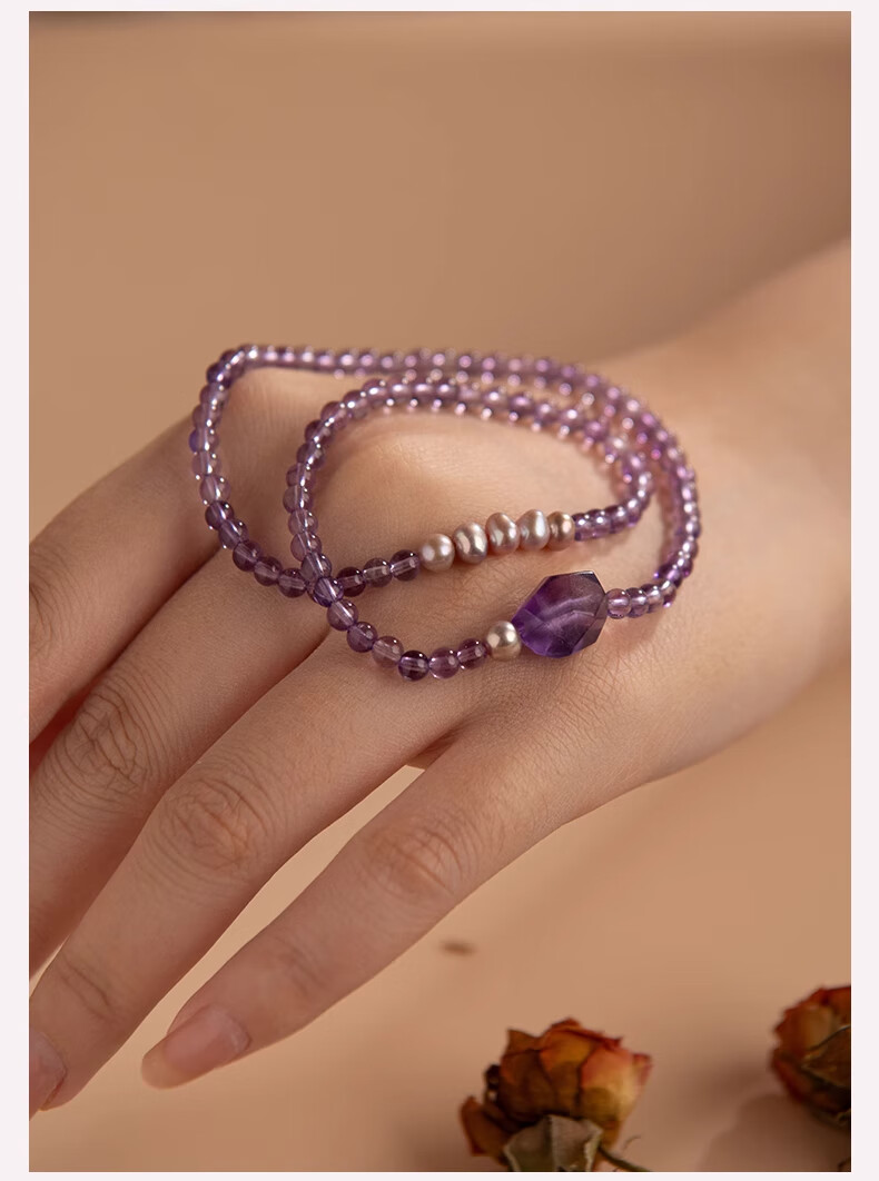 BOSFRU special grade Uruguayan amethyst raw stone bracelet purple beaded multi-circle stacked bracelet gift for girlfriend toy three-circle stacked amethyst bracelet bracelet length 15cm