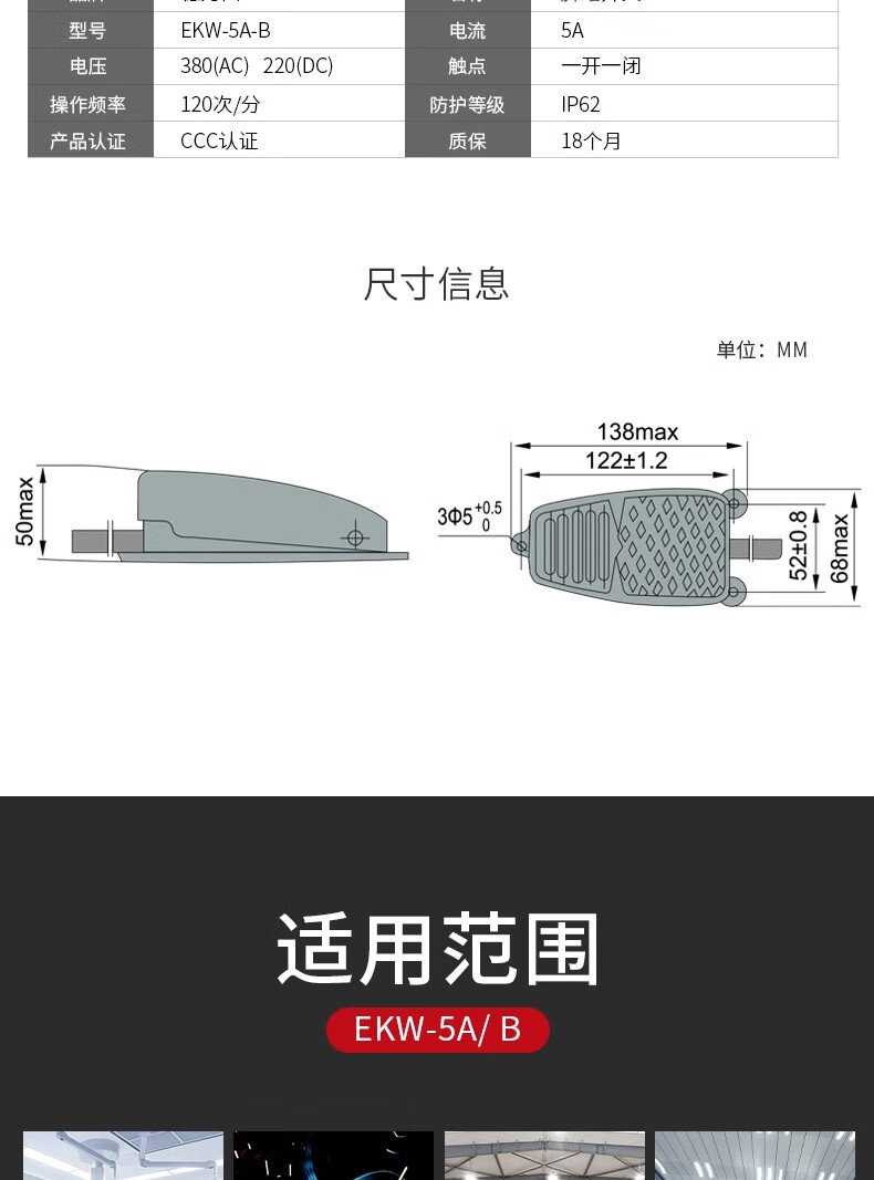 Delixi foot switch foot-operated EKW5A-B core with wire pedal controller 220v punch self-reset EKW5AB