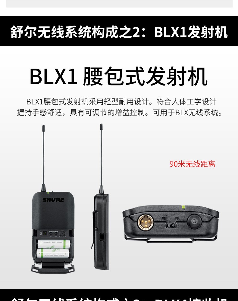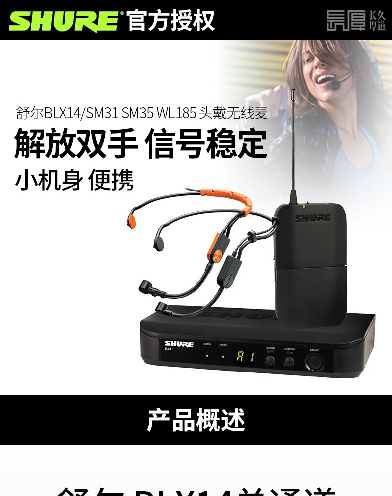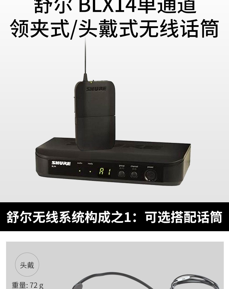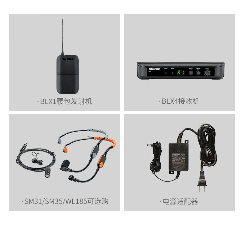 SHURE Shure BLX14 SM35 SM31 wireless microphone sports head-mounted ear-hook headset lavalier microphone stage performance speech teacher teaching training waist-mounted transmitter BLX14+WBH54T super-cardioid directional ear-hook microphone