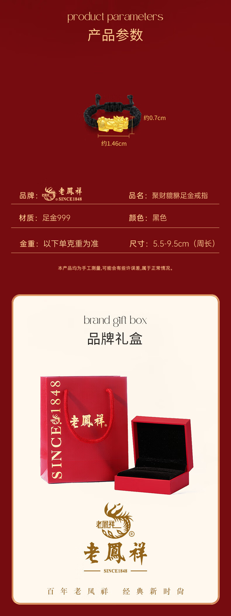 Lao Fengxiang gold ring, same style for men and women, to attract wealth and good fortune, Pixiu pure gold anniversary birthday gift for girlfriend and wife, about 0.3 grams*Pixiu ring*Local warehouse/delivered nearby
