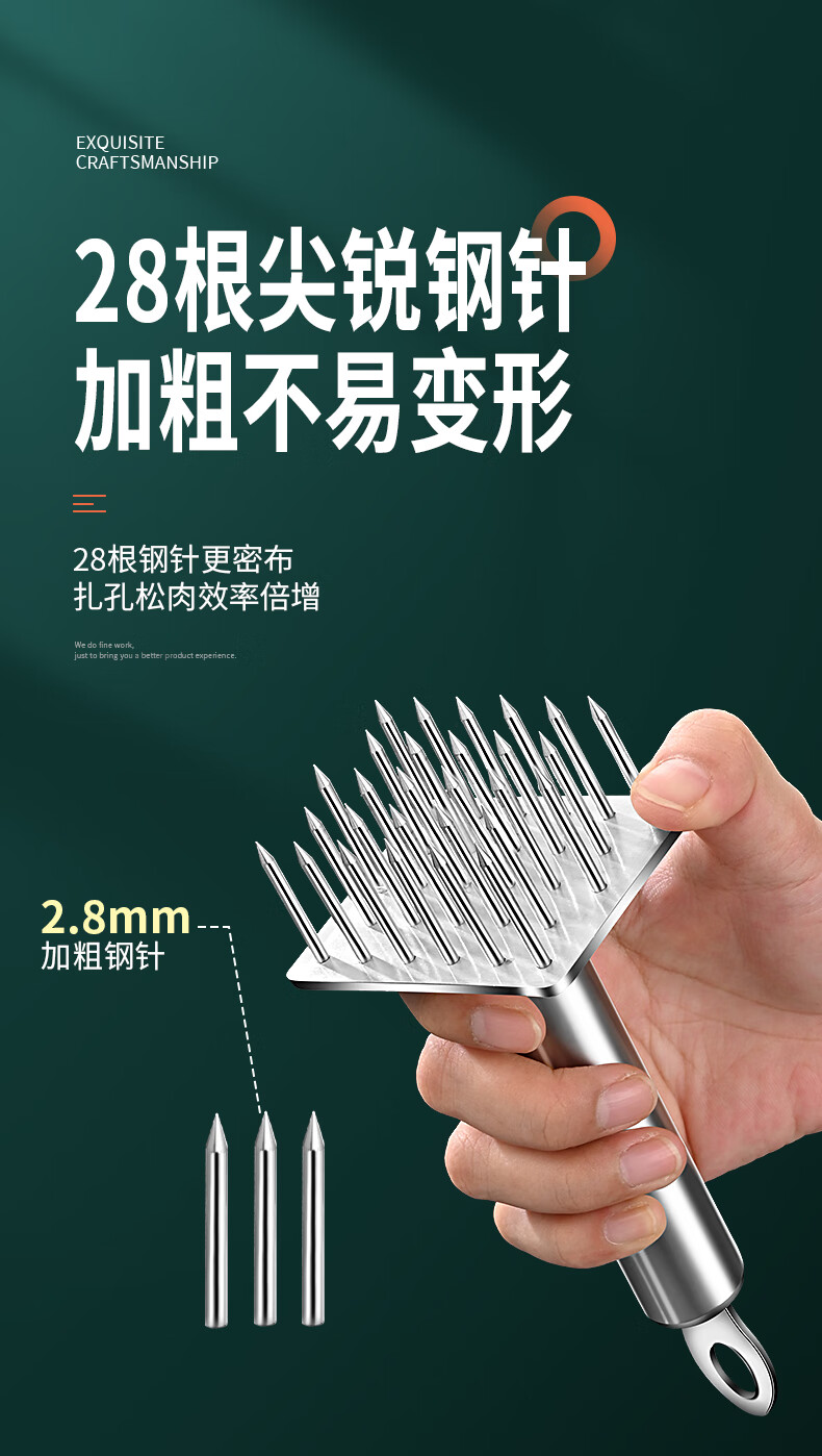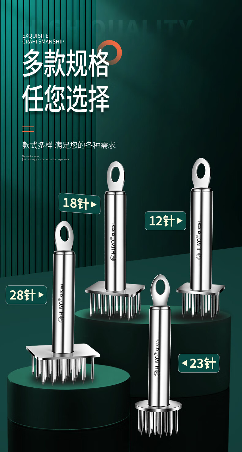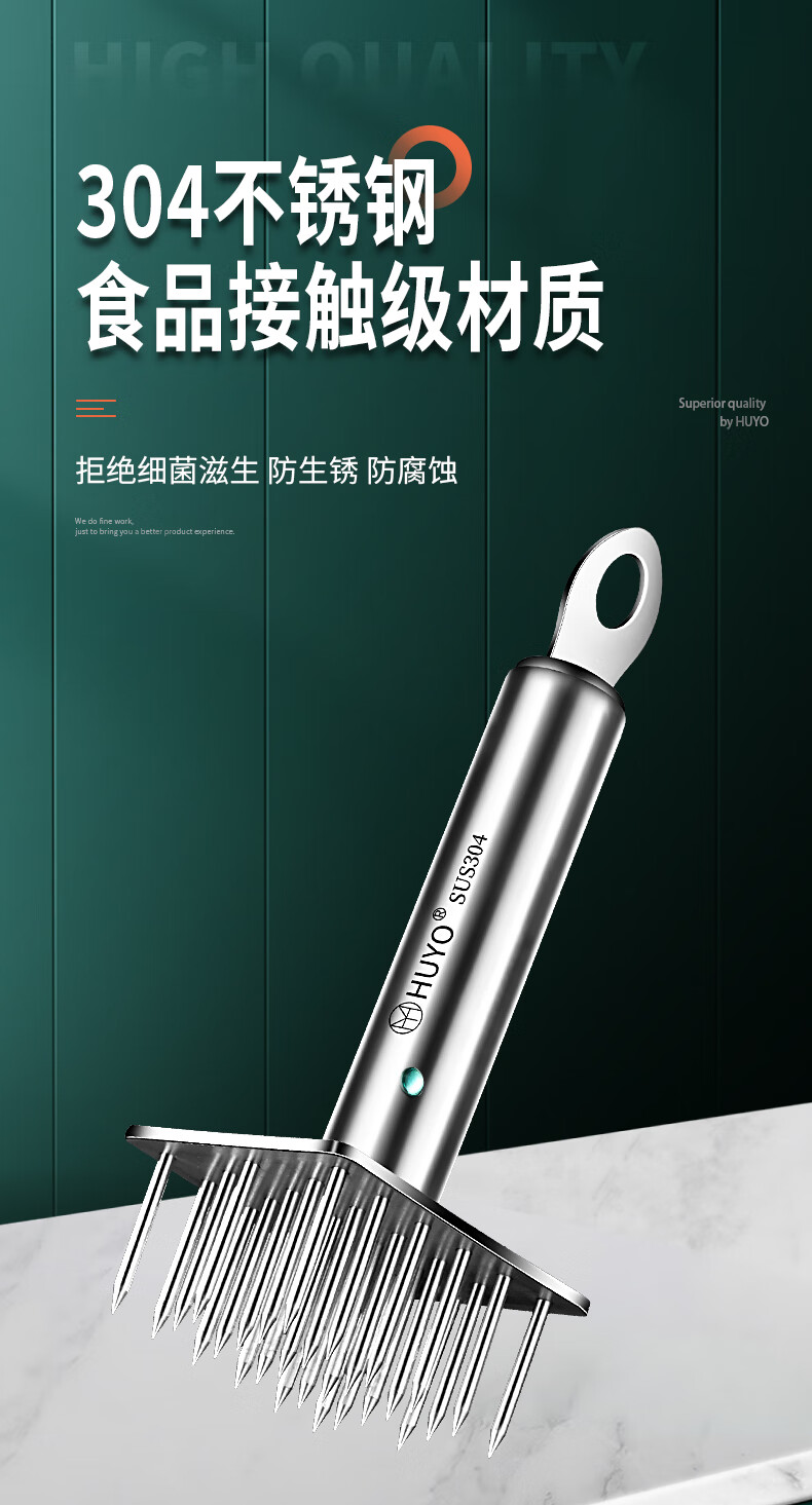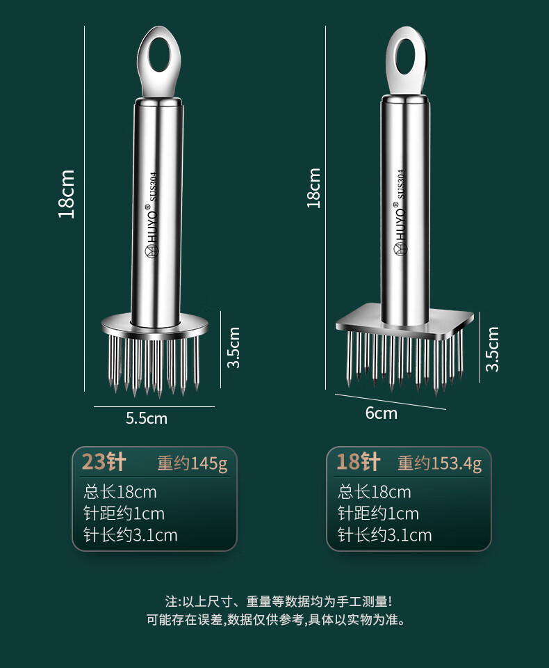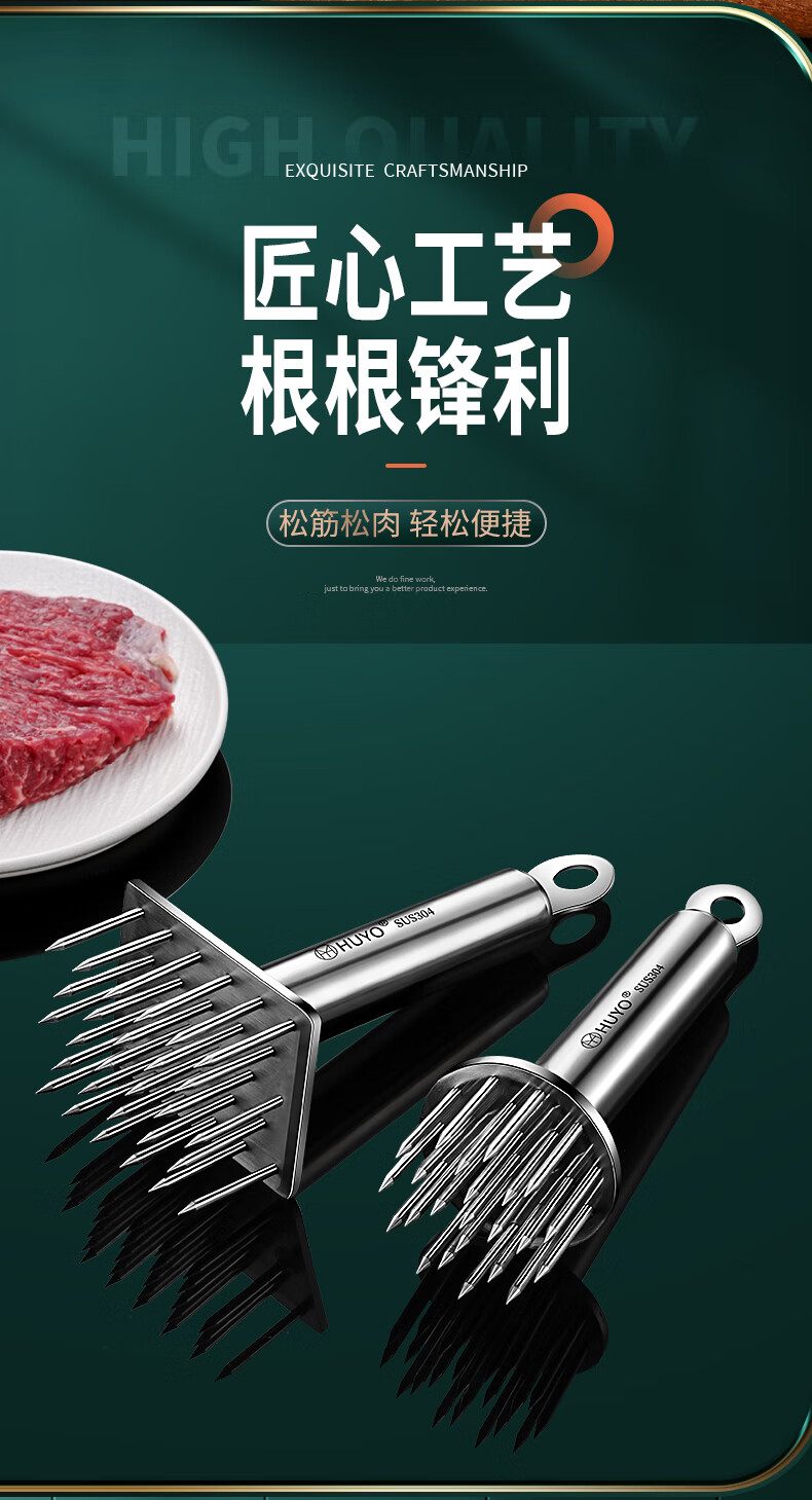 HUYO meat piercing tool 304 stainless steel pig skin meat piercing needle kitchen pickling tool steak loosening and meat hammer 304 steel round plate 23 needles 85% selection