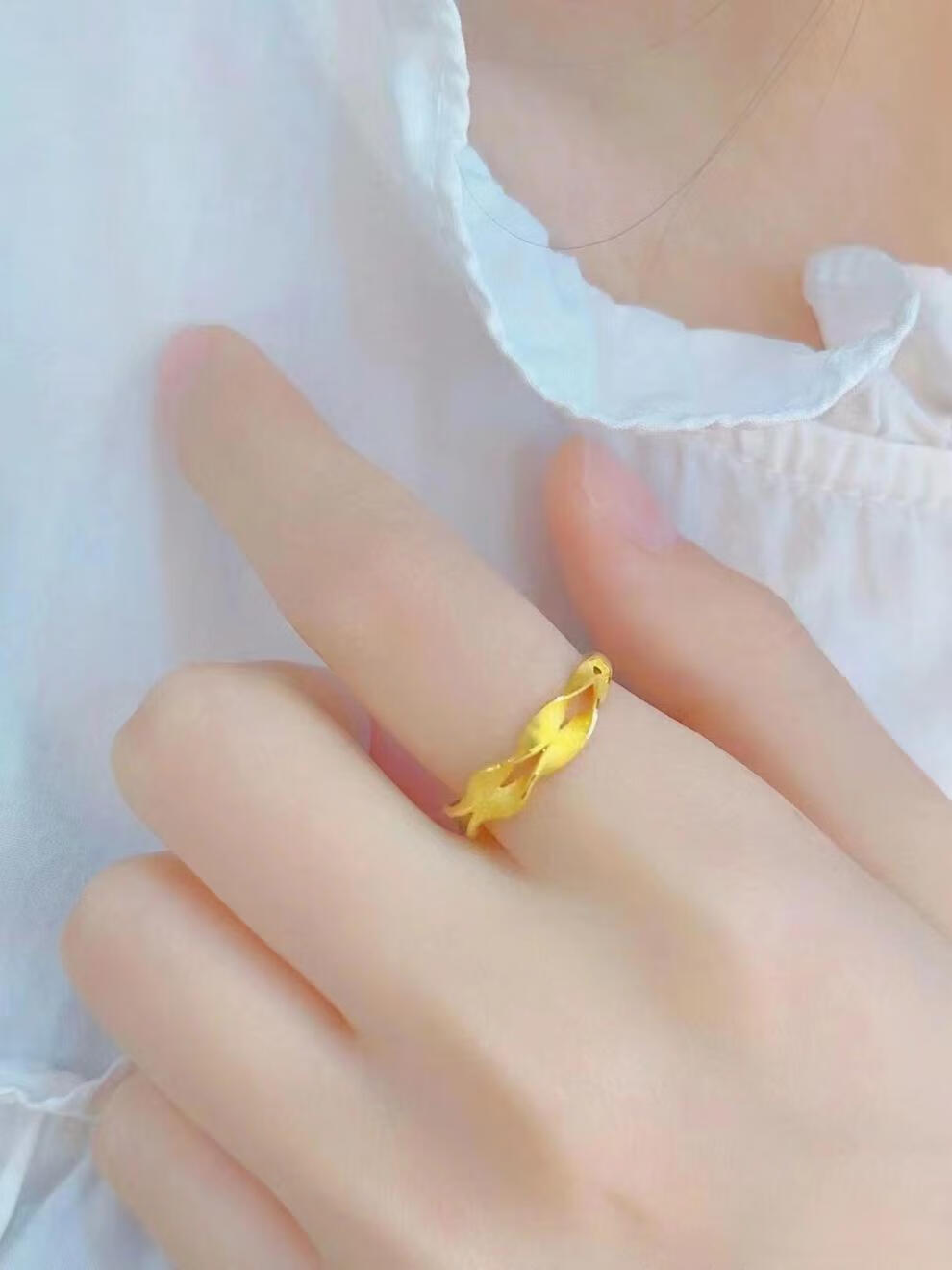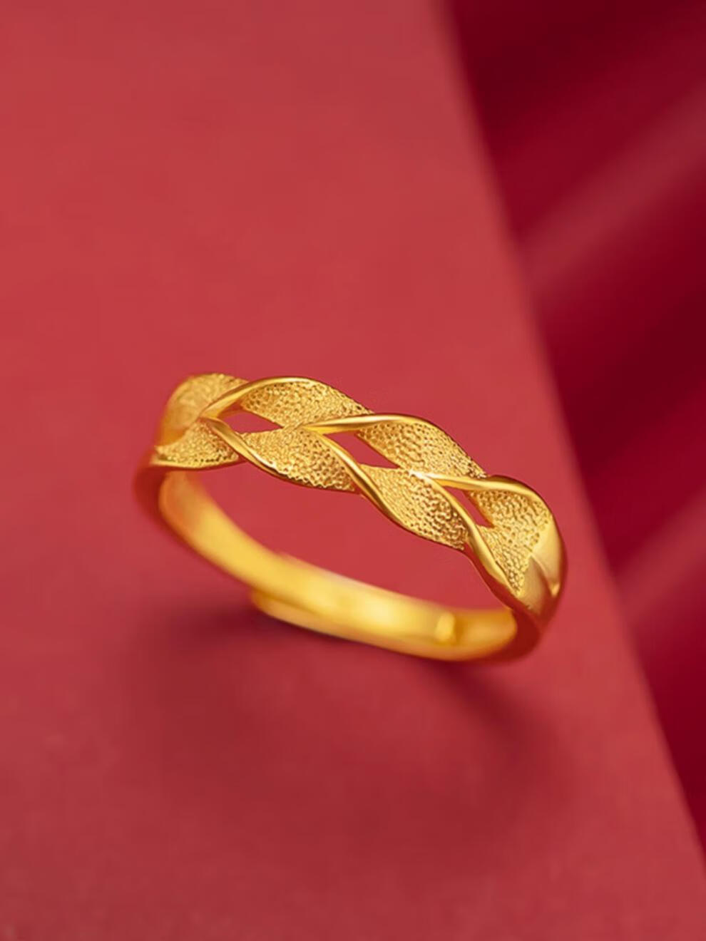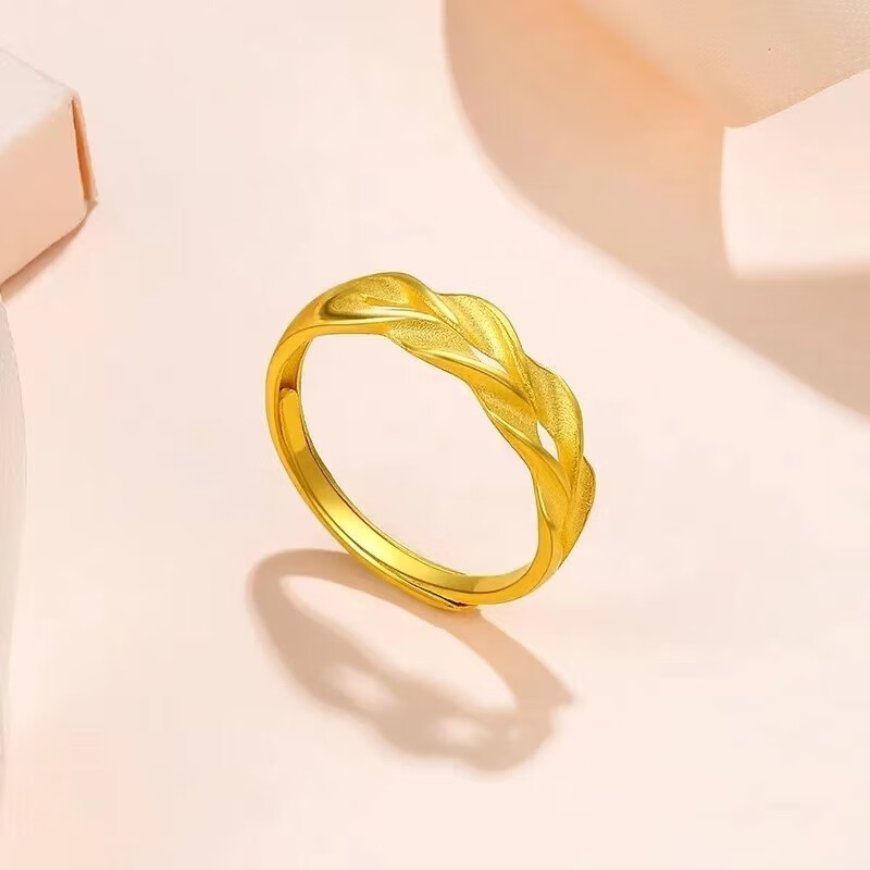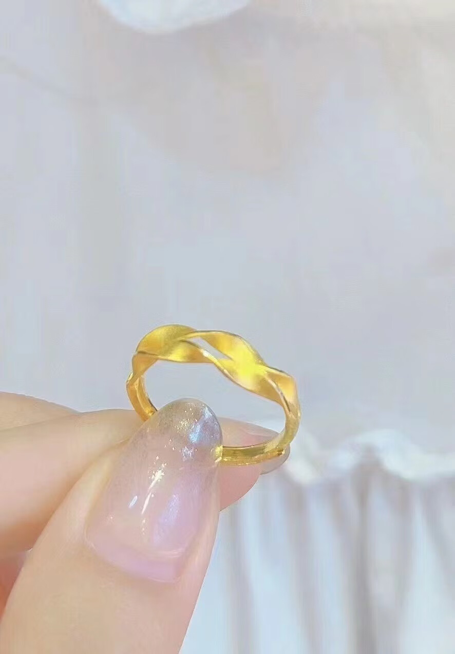 Dunzhu Living Adjustable Wheat Peace Ring Women's 999 Full Gold Plated 5G Craftsmanship 24K Gold Ring as Gift for Couples Love Chain Ring