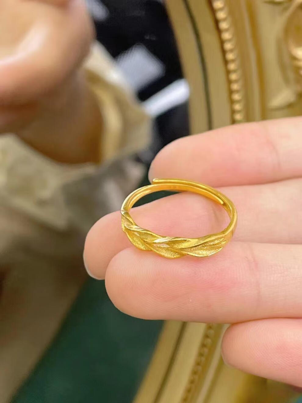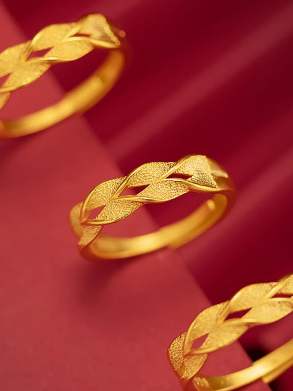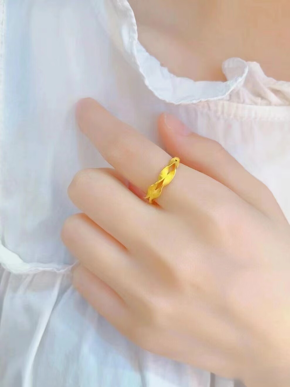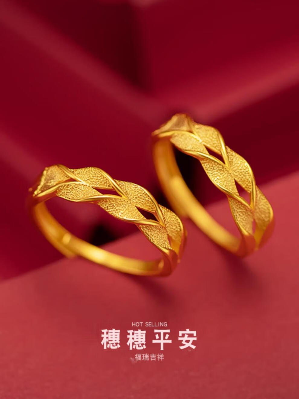 Dunzhu Living Adjustable Wheat Peace Ring Women's 999 Full Gold Plated 5G Craftsmanship 24K Gold Ring as Gift for Couples Love Chain Ring