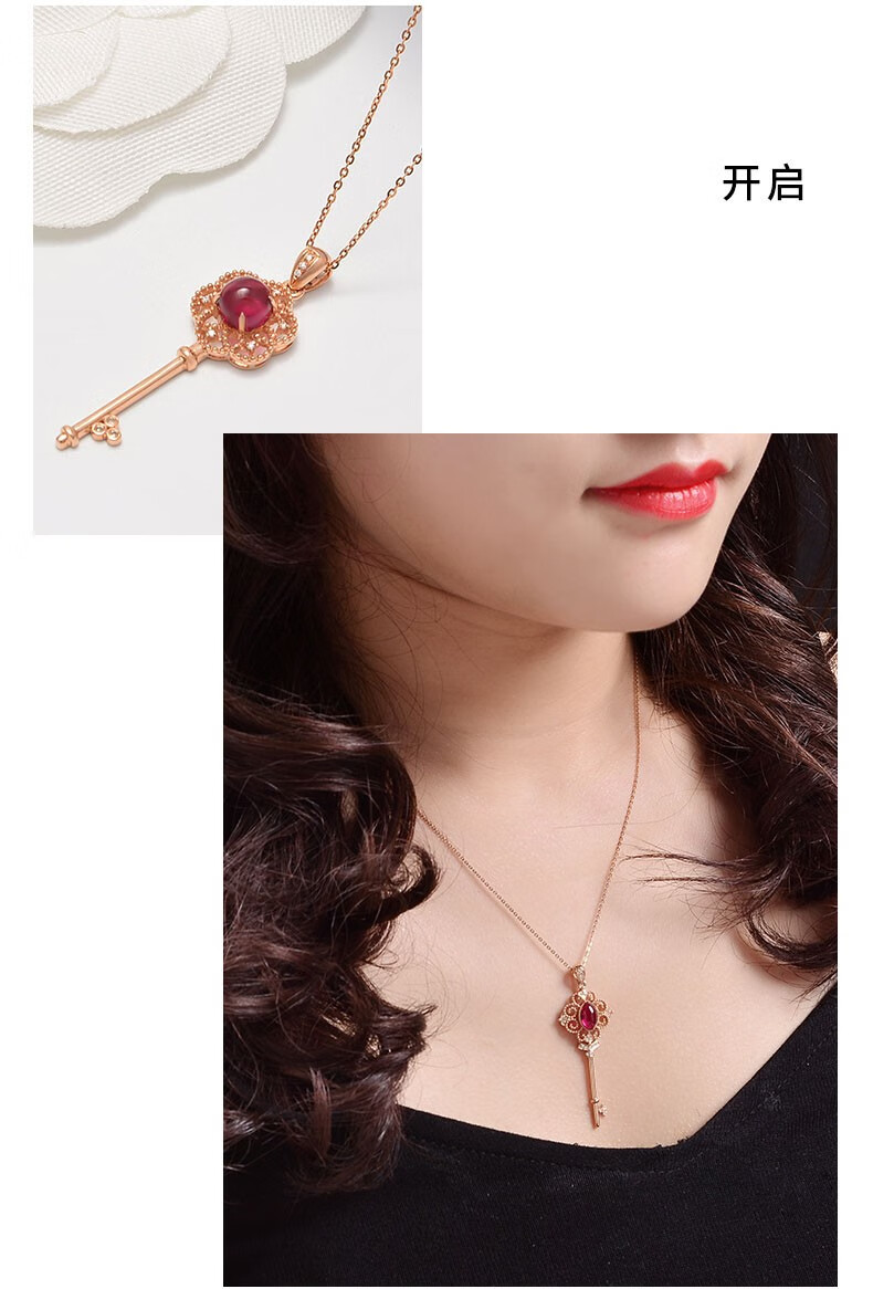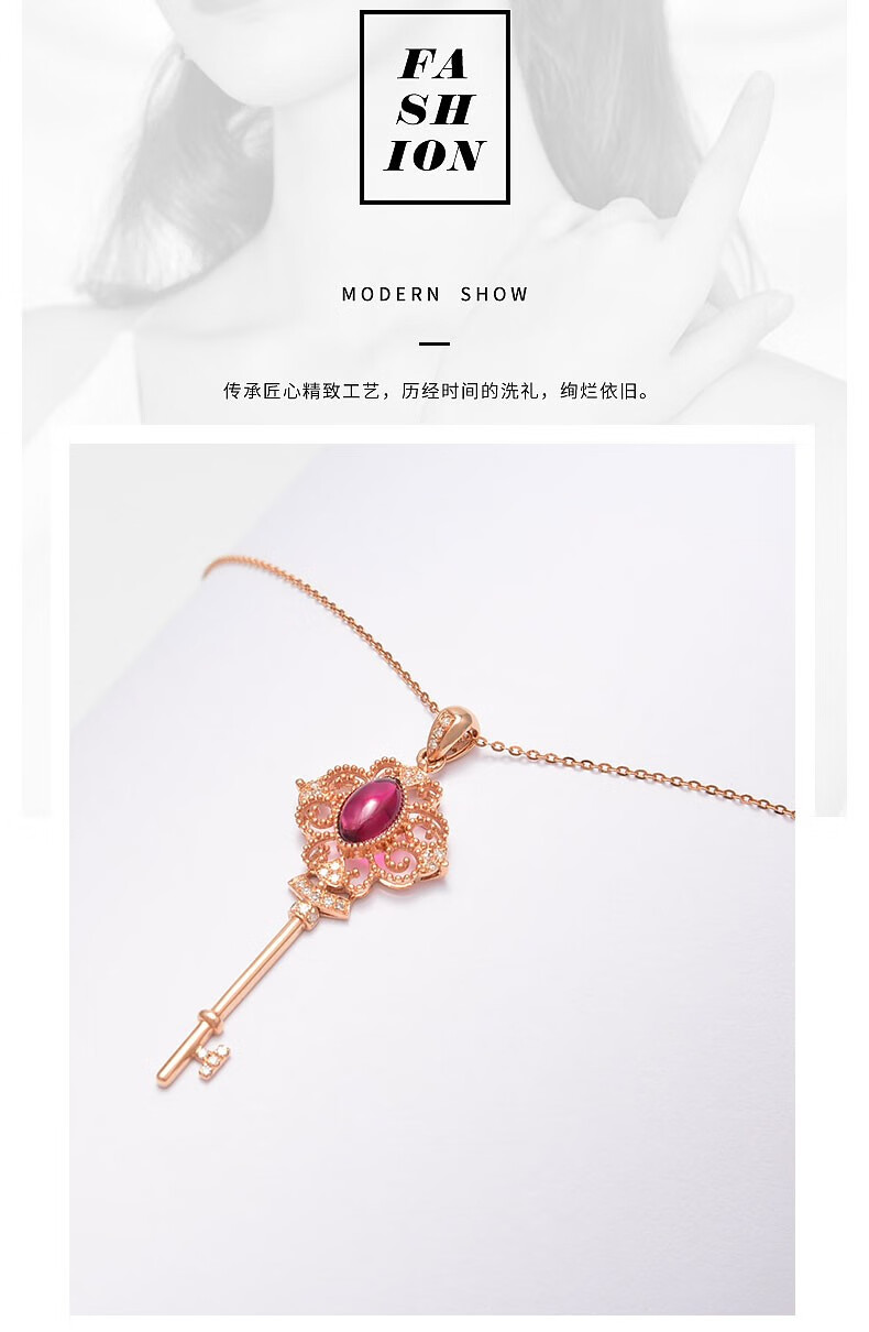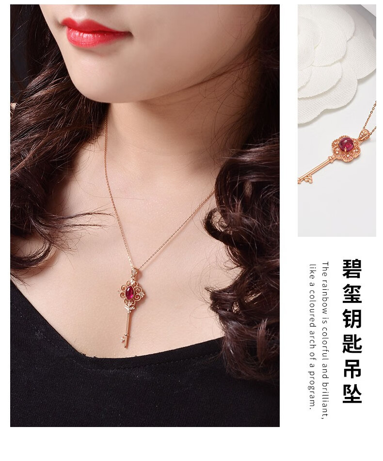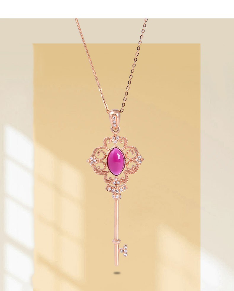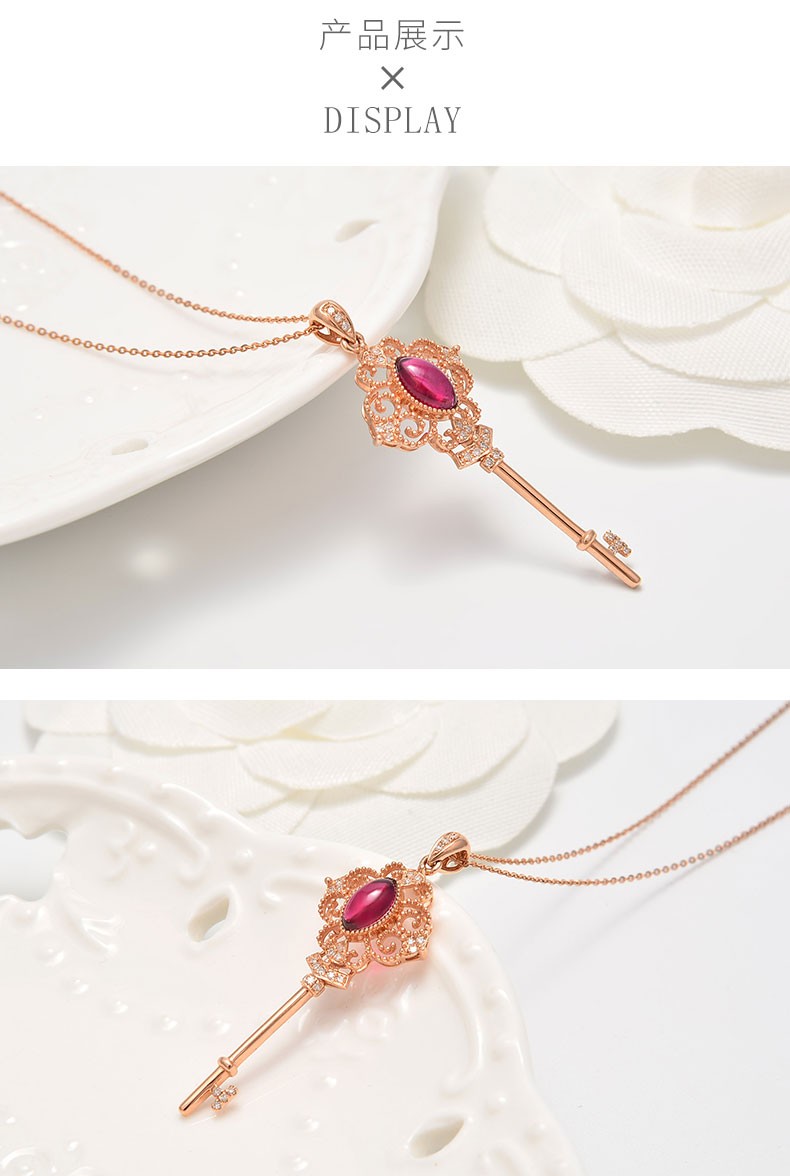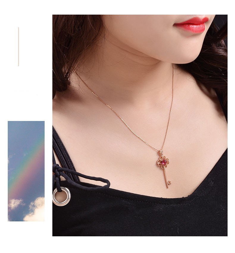 Dunzhu Tourmaline Necklace Key Pendant Fashion Palace Retro Simple Pigeon Blood Red Diamond 18K Gold Clavicle Chain Marquise Tourmaline Pendant