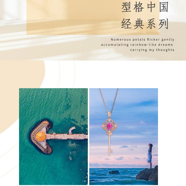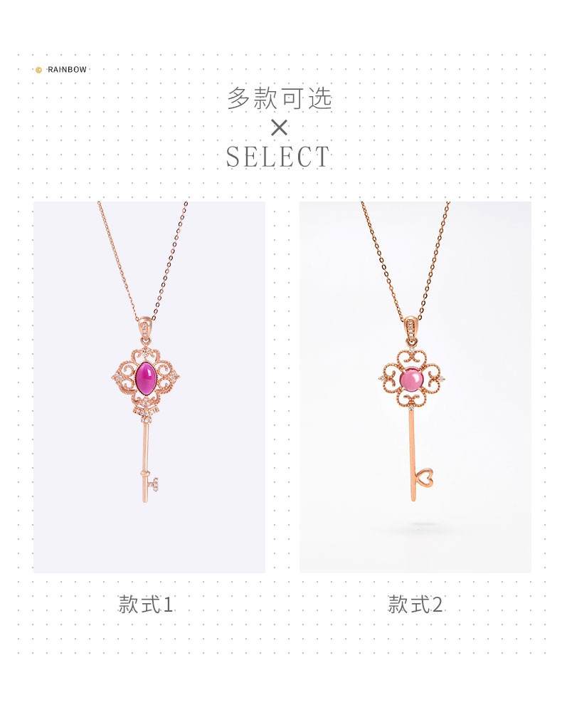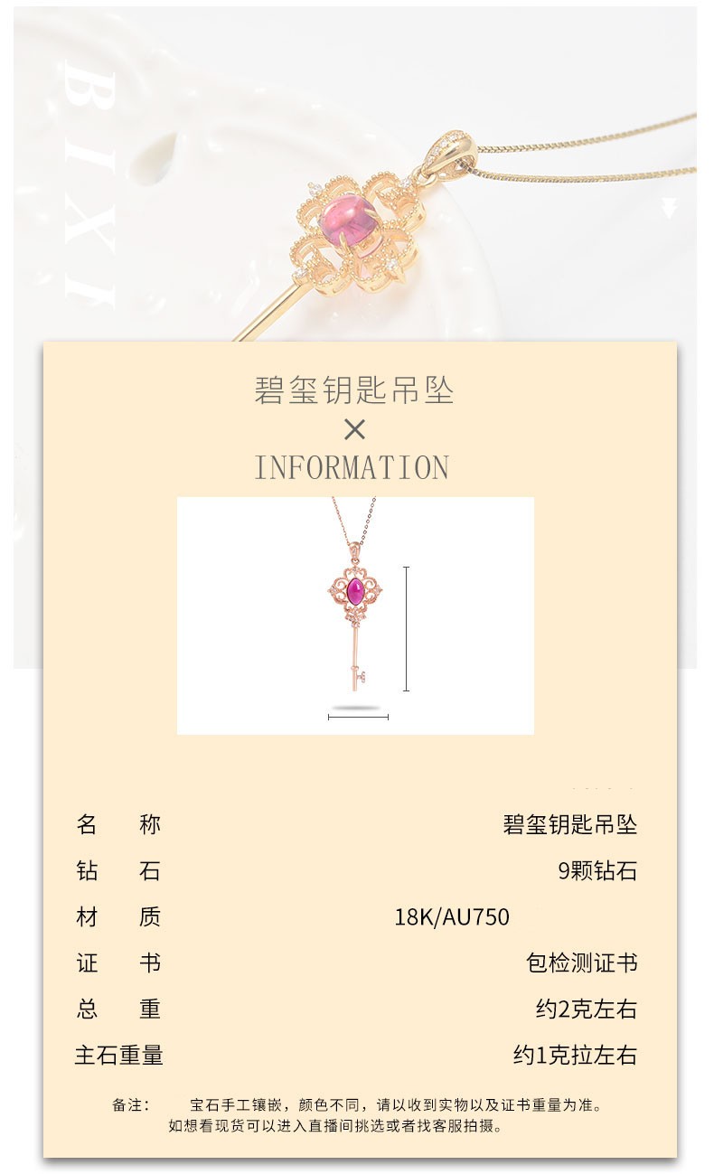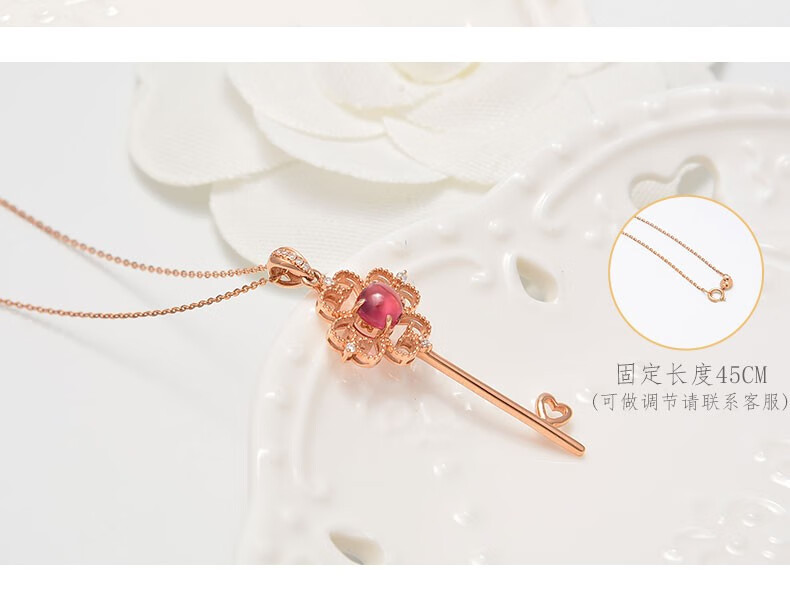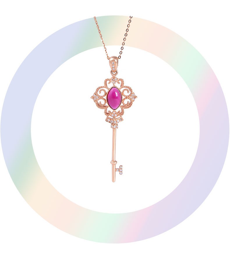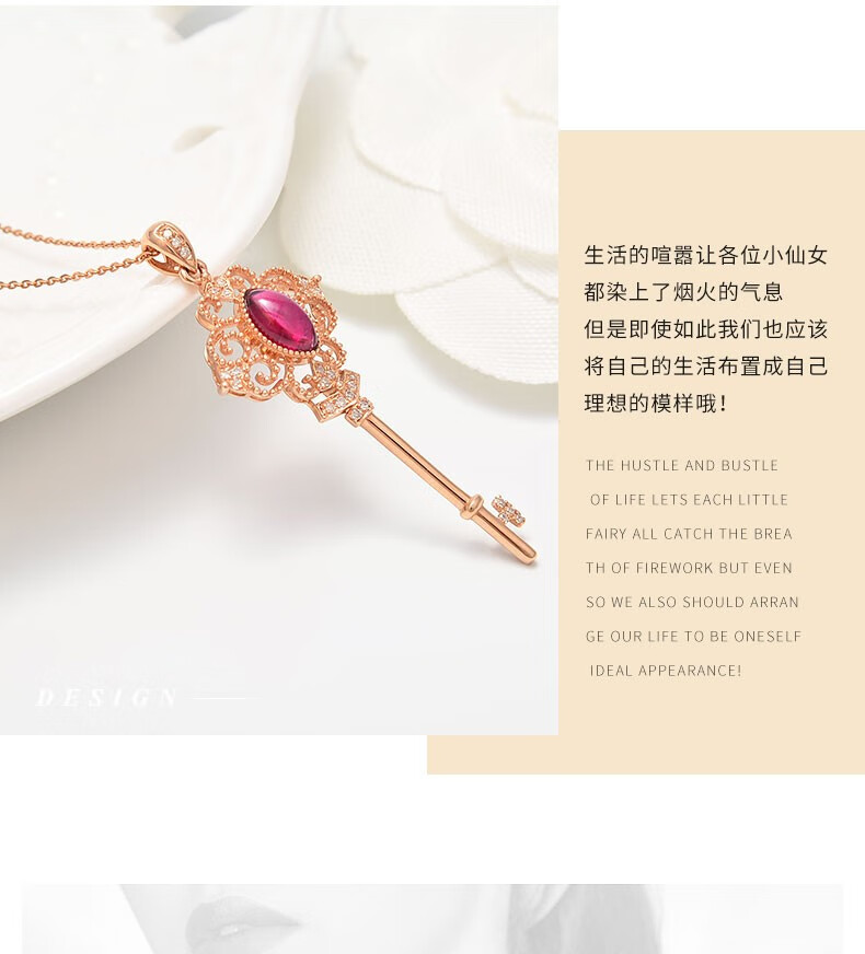 Dunzhu Tourmaline Necklace Key Pendant Fashion Palace Retro Simple Pigeon Blood Red Diamond 18K Gold Clavicle Chain Marquise Tourmaline Pendant