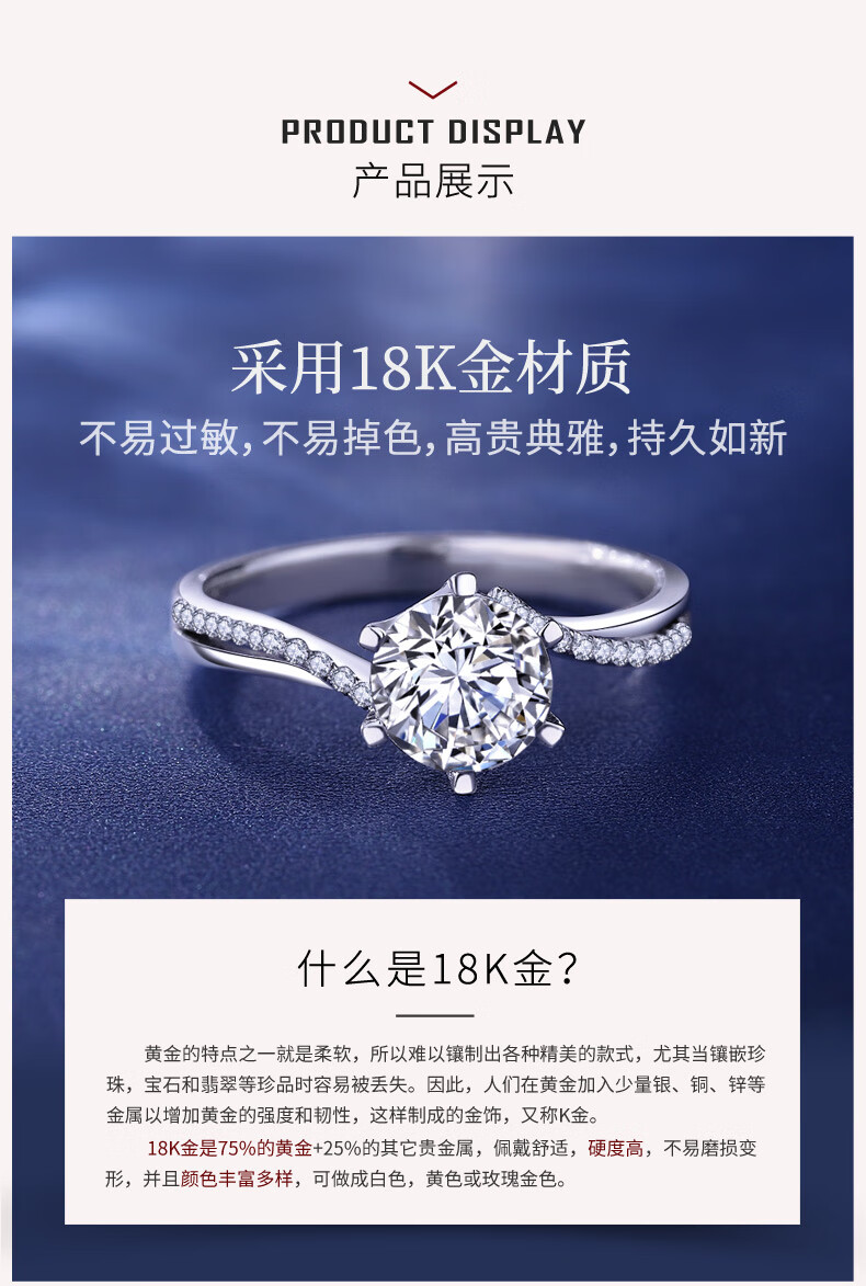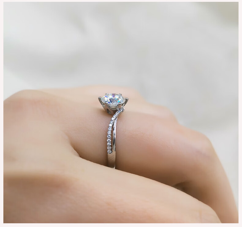 Mi Yan American Moissanite Ring Women's Carat 18K Gold Elegant Twist Arm Six-Prong Micro-set Diamond Ring Wedding Ring for Girlfriend D Color D Color 18K Gold 50 Points Customized