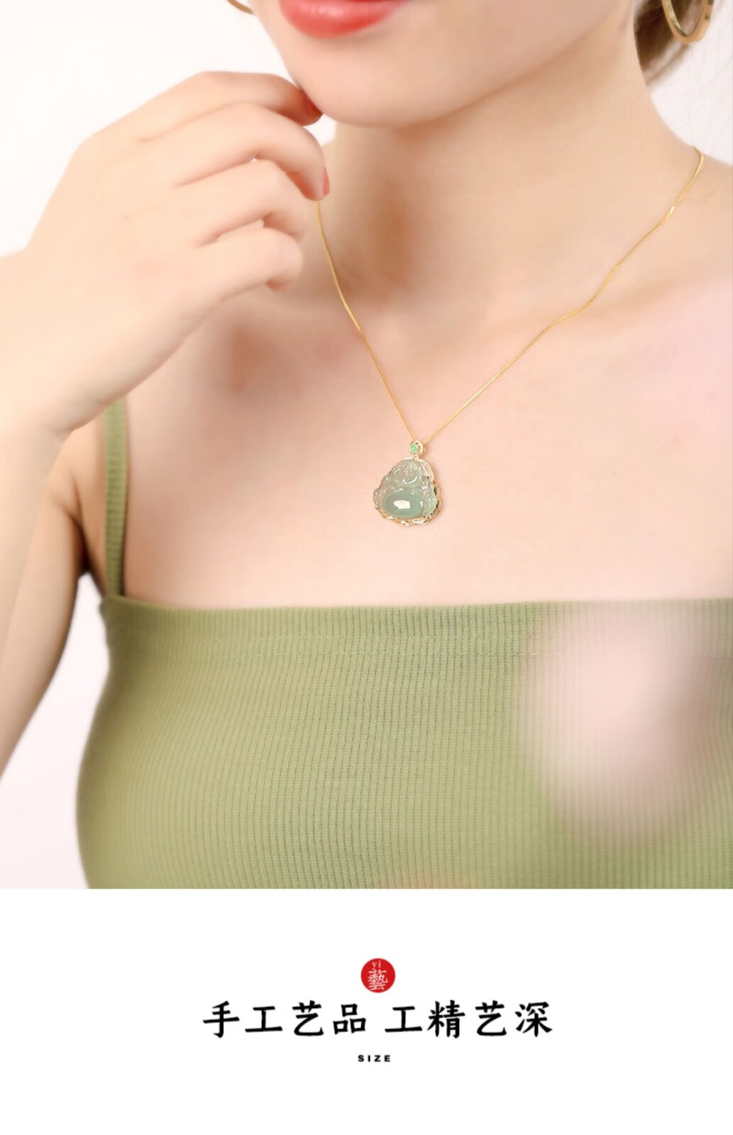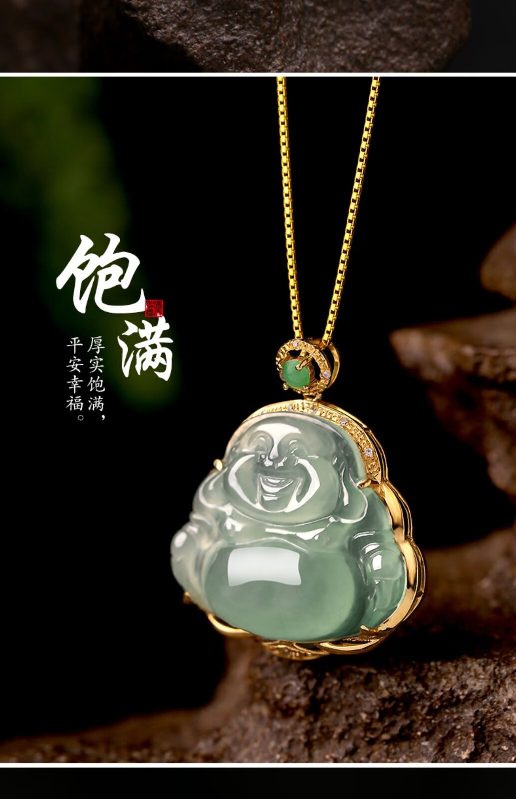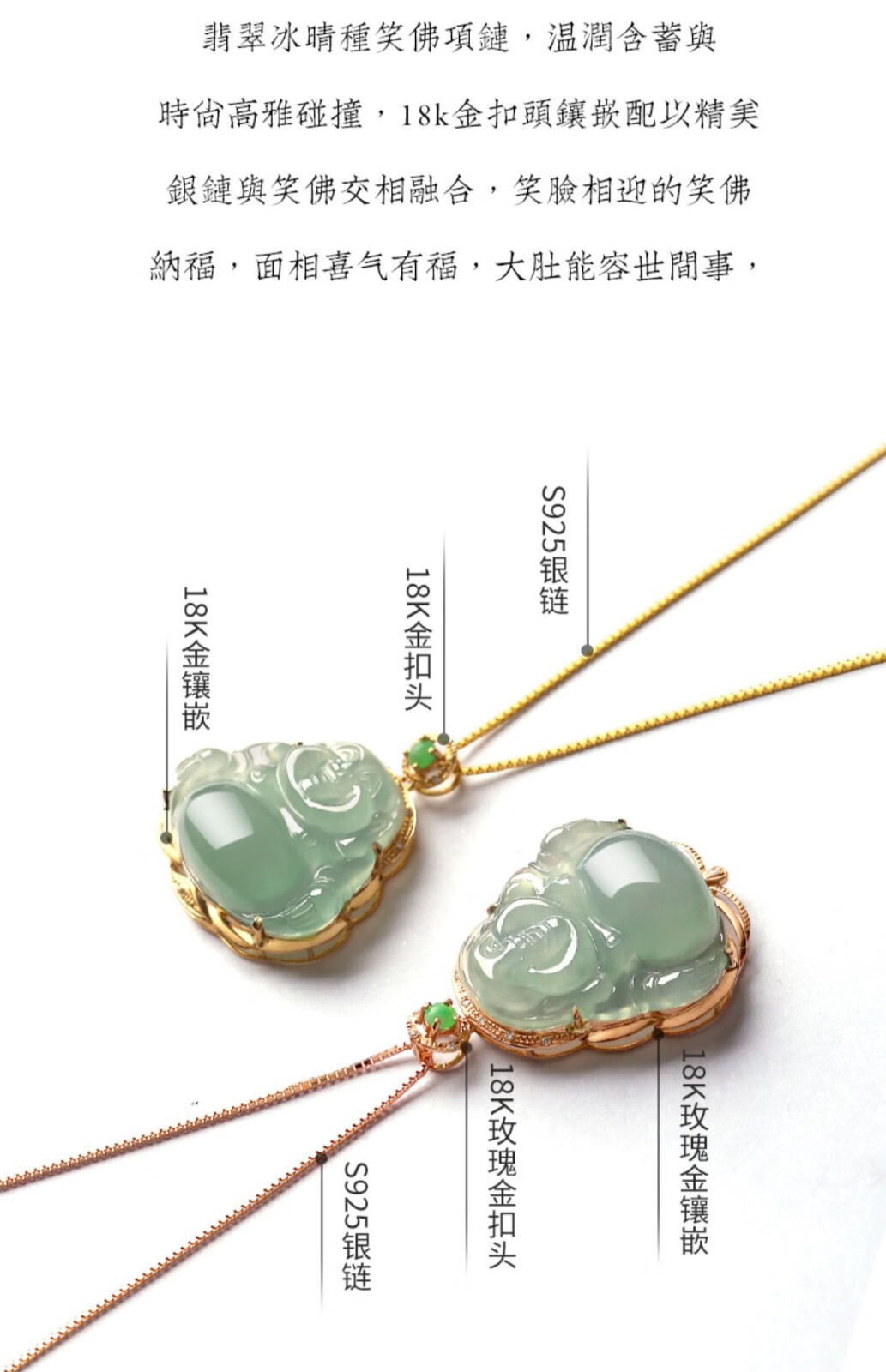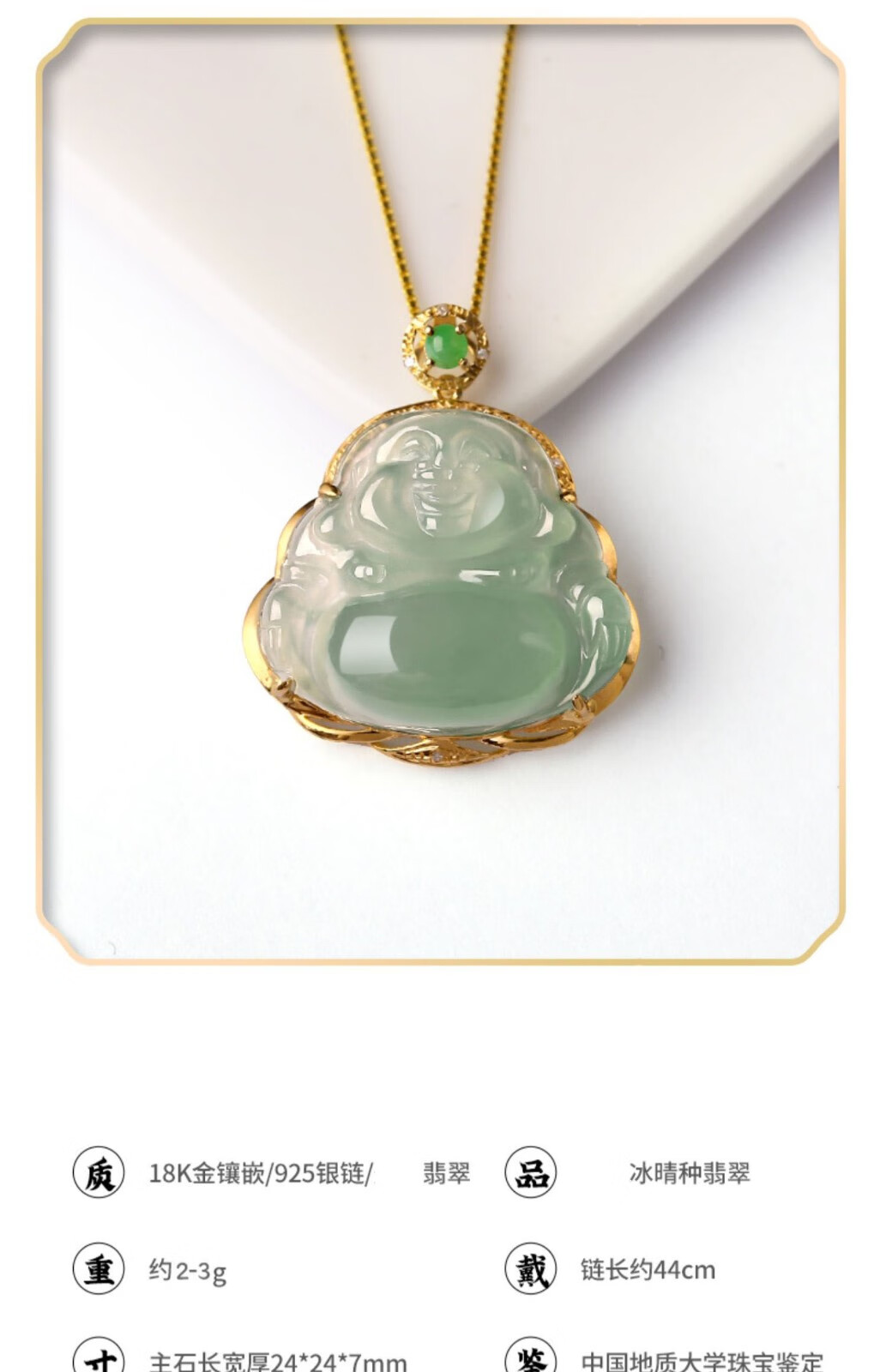 Hande 18k gold inlaid jade pendant female jade Buddha ice seed sunny bottom laughing Buddha pendant Maitreya Buddha jade pendant small green egg 18K rose 18K yellow style