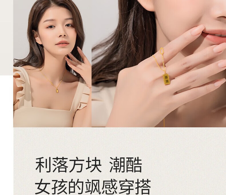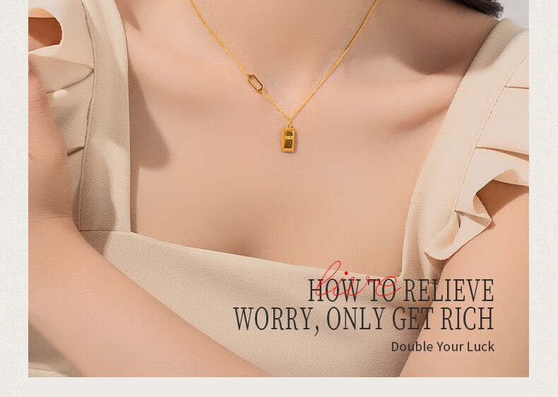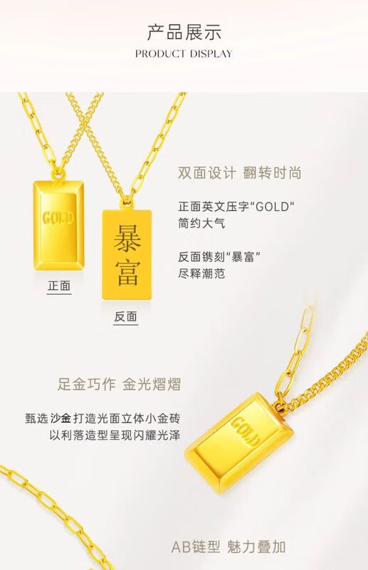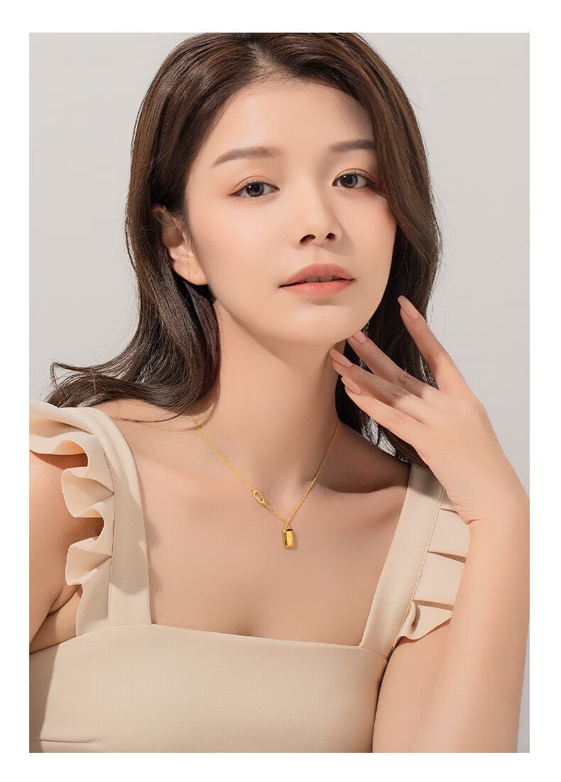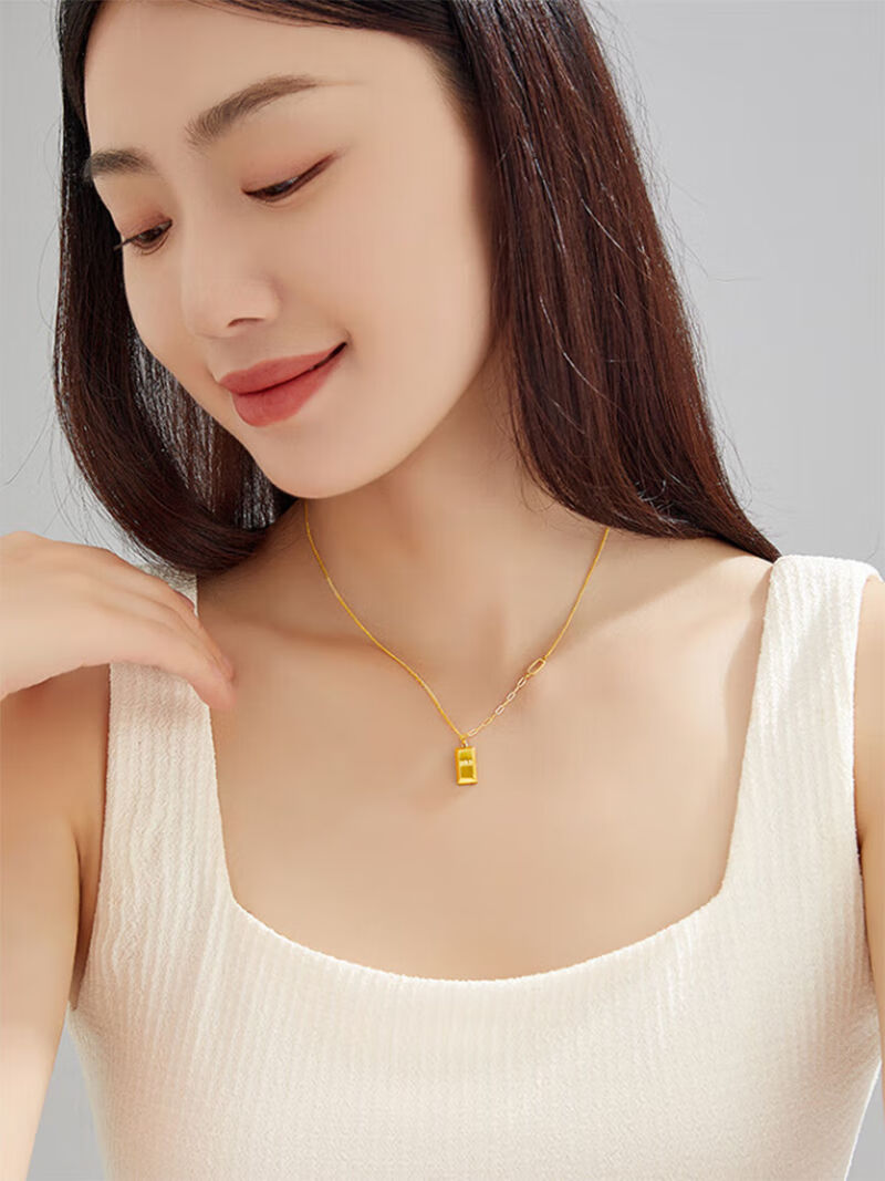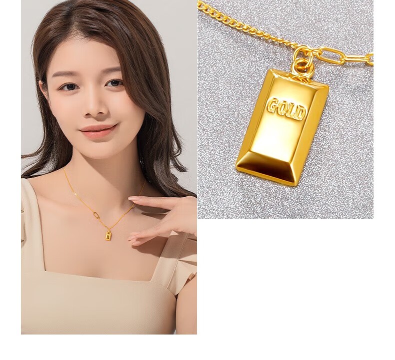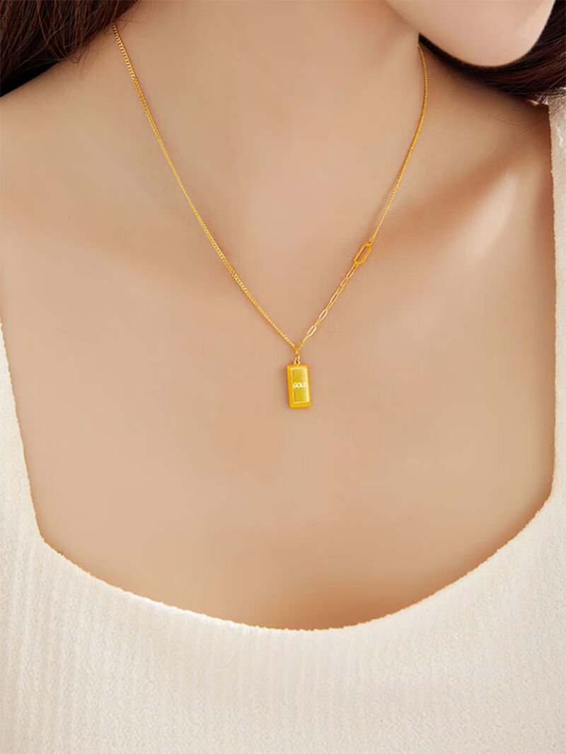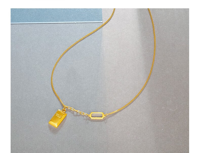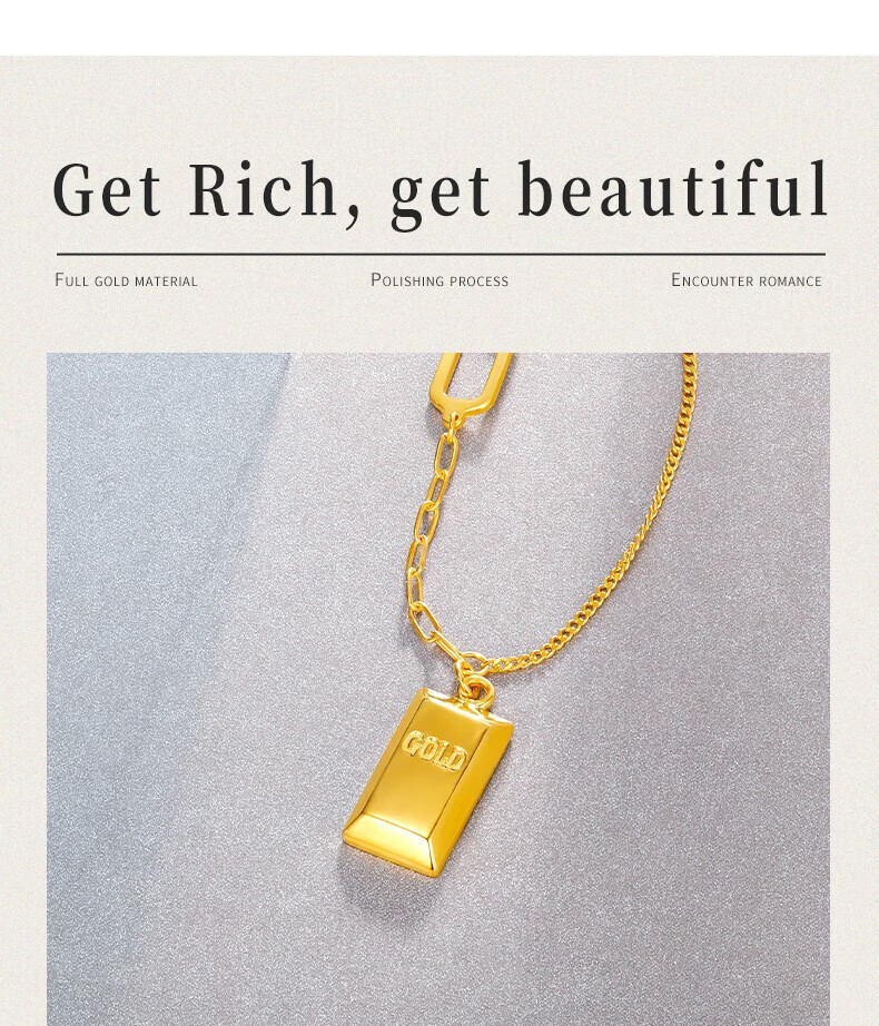 Hande small gold brick necklace for women Vietnamese sand gold 2024 new pendant 18k gold simulated gold small gold bar pendant chubby small gold brick necklace