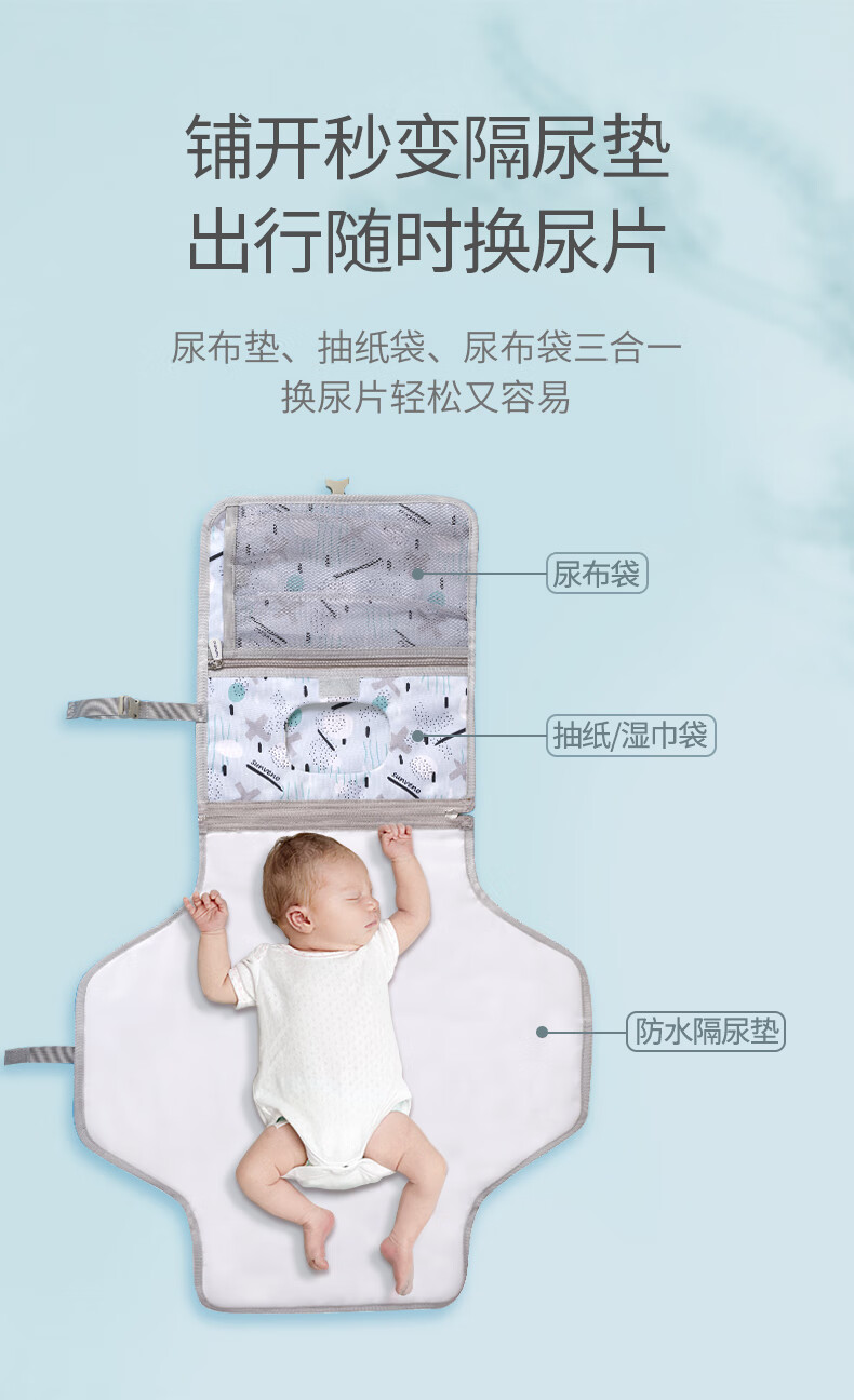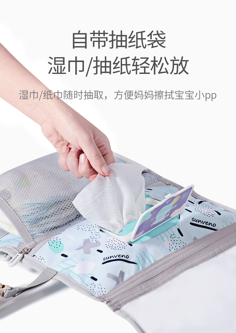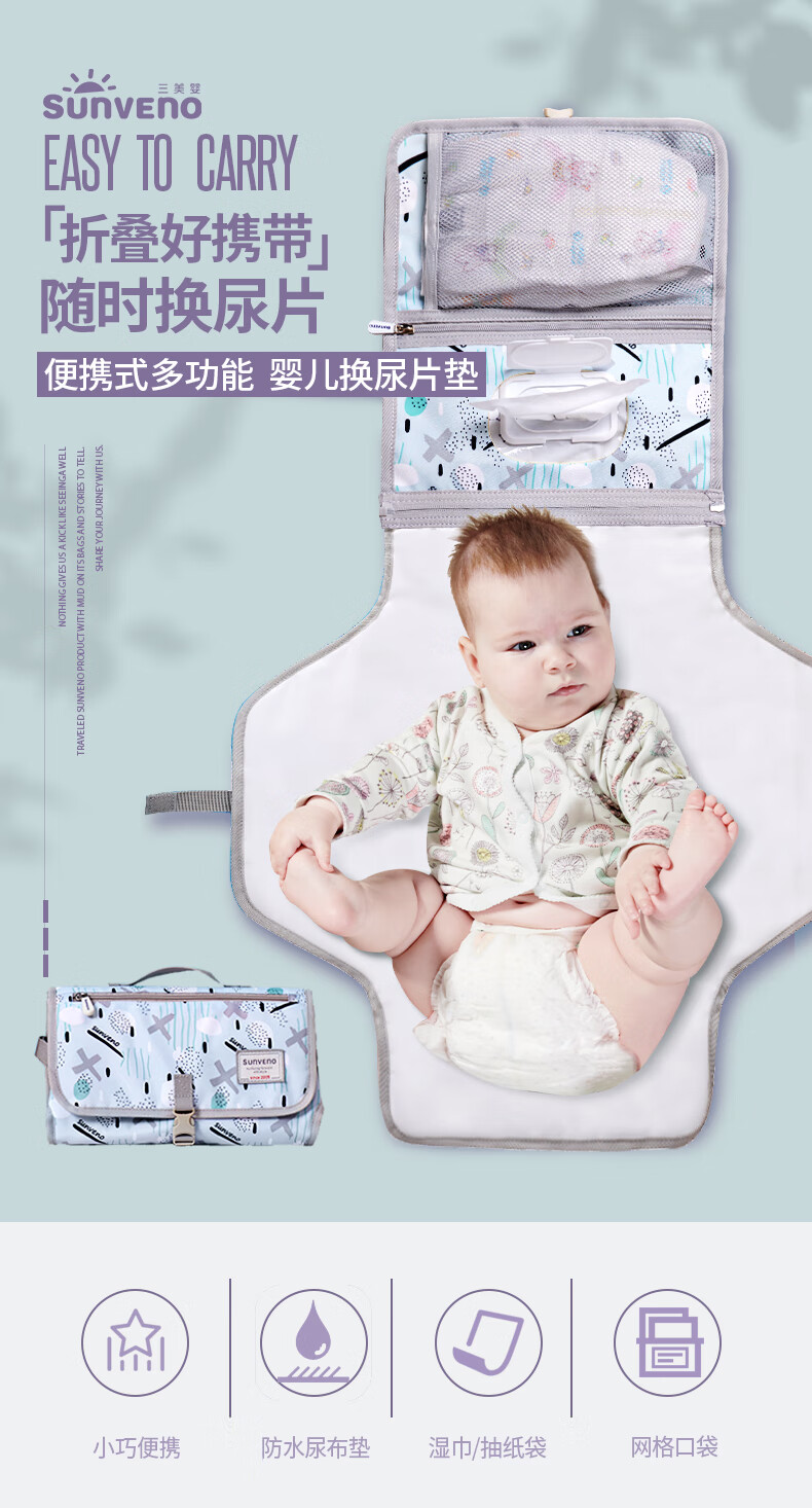 SUNVENO Baby Portable Diaper Bag Changing Pad Diaper Storage Bag Outing Diaper Bag Diaper Storage Bag Light Elegant Blue