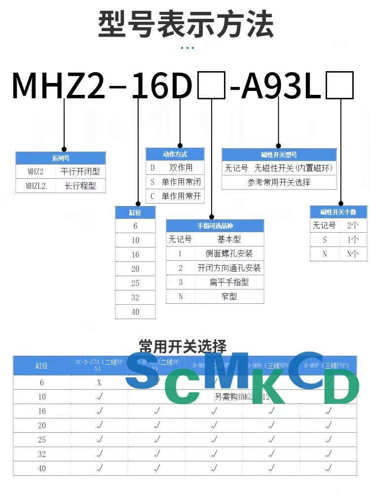Genuine finger gripper cylinder MHZL2/MHZ2-6D-10D-16D-20D-25D-32D-40D/16S/ MHZ225S (single acting normally open)